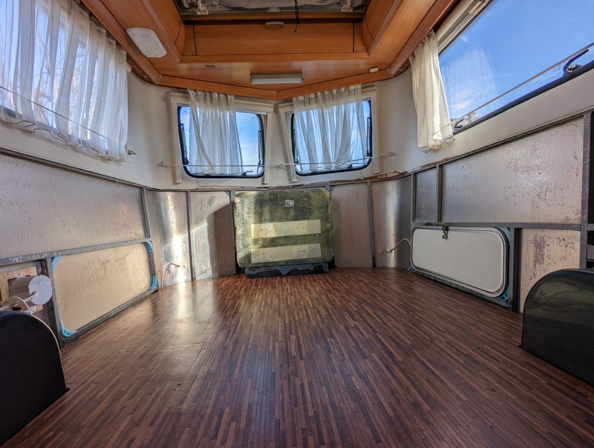 An den Wänden fallen die Nägel auf, die innen spitz in den Raum ragen. Da wurden die Begrenzungsreflektoren einfach in die Außenhaut genagelt. Teile, die wackelsicher befestigt werden müssen, wurden von innen mit Alupressdübeln gesichert. Wenn man die von außen arglos losschraubt, um eine Leuchte etc. zu tauschen bekommt man die nicht wieder fest, ohne die Innenverkleidung zu entfernen.