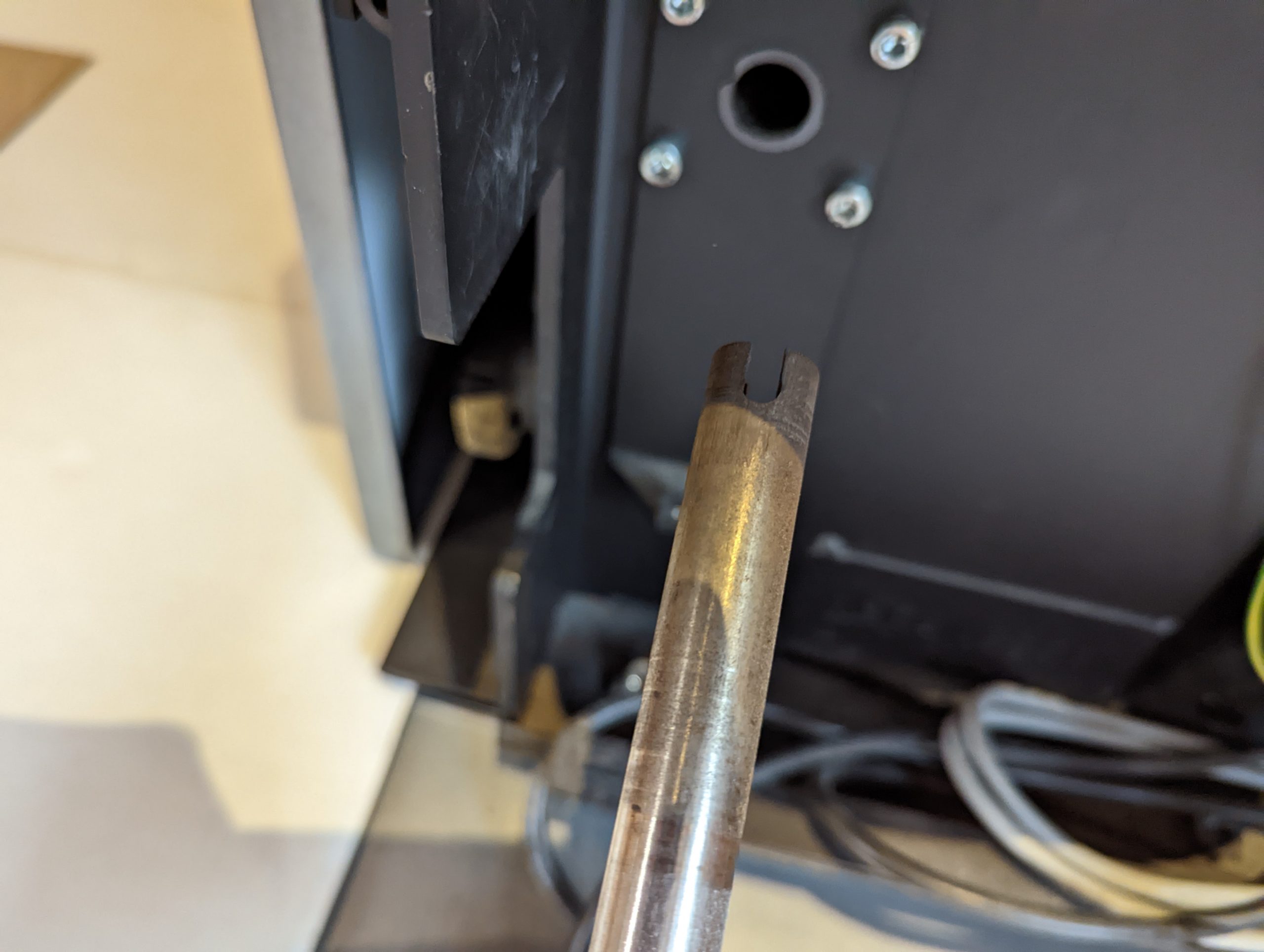 • Eine ab 2022 erstmals und dann regelmäßig auftretende Störung. Erst haben wir an einen defekten Motor, der als Antrieb der Förderschnecke arbeitet, geglaubt. Aber obwohl sich die Förderschnecke nach der Fehlermeldung nicht “von Hand” drehen läßt, kann die Förderung über den entsprechenden Menüpunkt im Testmenü erfolgreich eingeschaltet werden. Der Antrieb funktioniert also, der neue Motor für 450 Euro arbeitet also vermutlich genau so gut wie der alte.