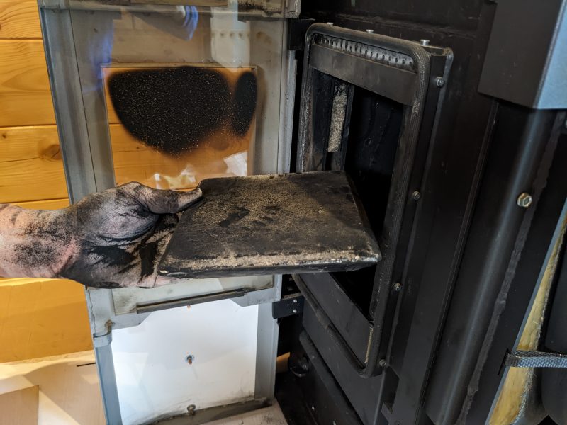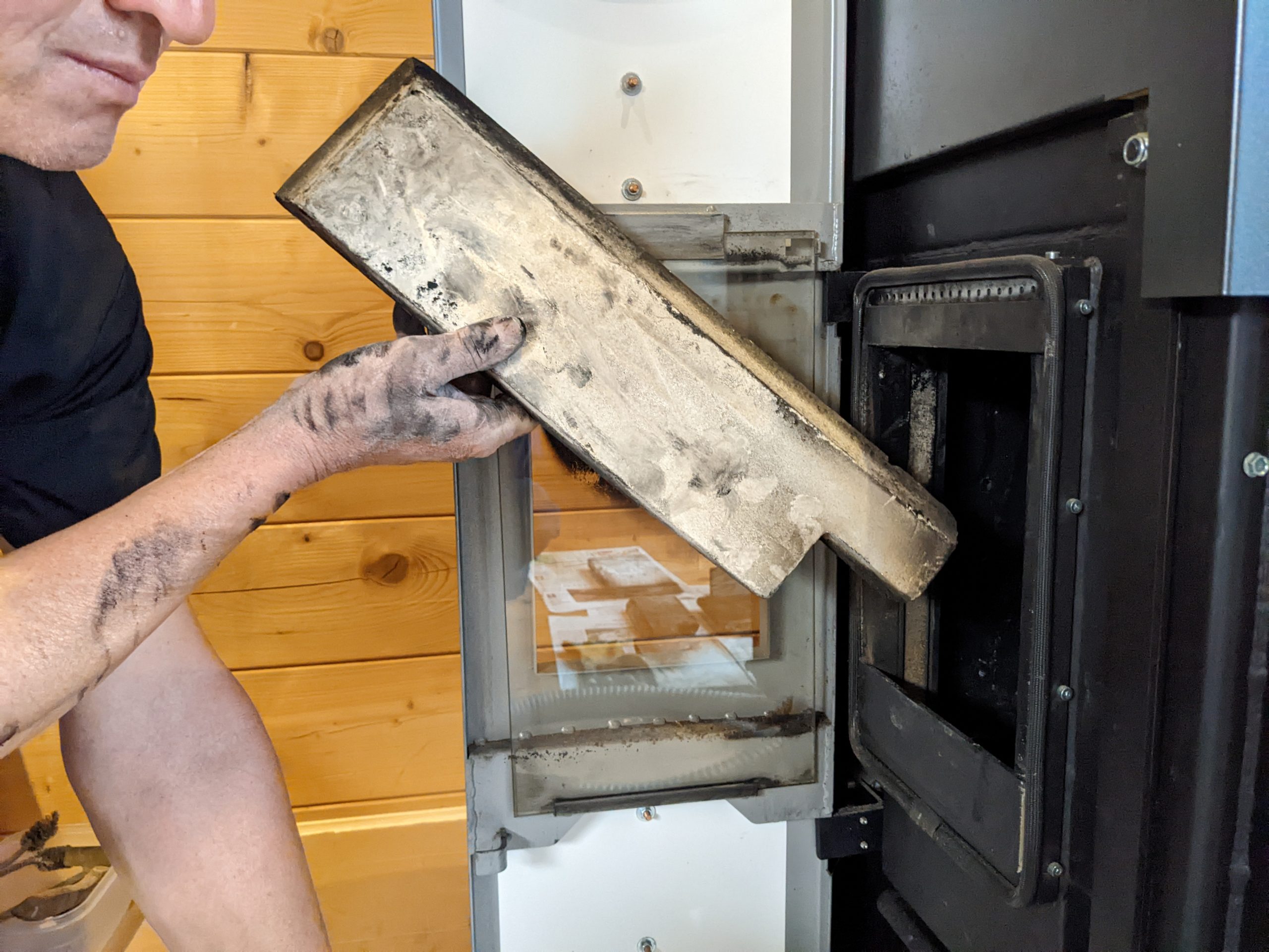 Die Wartung des Ofens erfolgt neben dem Leeren des Aschkastens und dem Befüllen des Pellettanks in zwei Stufen:
