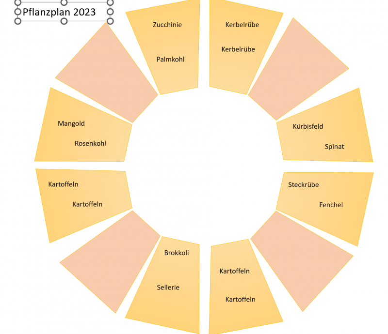 Im Winter wurde dann ein erster Pflanzplan erarbeitet. Dabei sollen vor allem auch Gemüsesorten zum Einsatz kommen, die über die gesamte Wachstumszeit gesehen nicht zu arbeitsintensiv werden. Somit wird es im kommenden Jahr 2023 zum ersten mal Kartoffeln und Steckrüben geben. Außerdem kommen noch Sorten hinzu, die auch im frühen Winter nach Bedarf beerntet werden können, wie z.B. Palmkohl und Kerbelrübe. Dies hat sich im letzten Gartenjahr bei Rosenkohl und Mangold bewährt. Bei Brokkoli und Fenchel sollen jeweils nur 2 -3 Pflanzen versuchsweise herangezogen werden. Mal schauen, wie sie sich im Klima des Westerwaldes entwickeln.