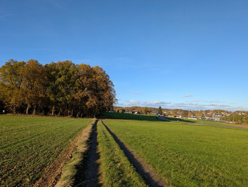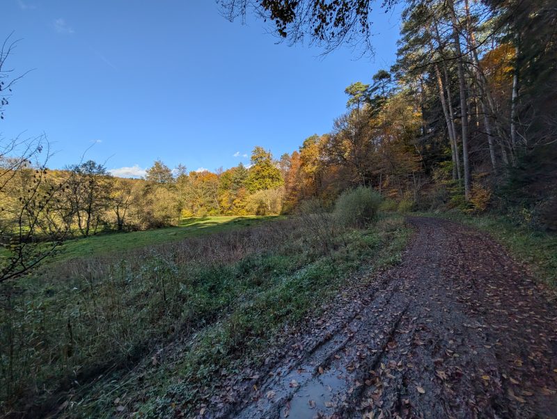 Bei diesem Teilstück handelt es sich nicht um eine Schleife sondern um einen Hin- und Rückweg, den wir aufgrund seiner geringen Höhenmeter auch joggend zurückgelegt haben. Allerdings haben wir die Etappe auch etwas verkürzt. Gestartet sind wir von einem Parkplatz auf der L587 hinter Dallau. Von dort ging es mit Wanderweg D2 in Richtung Mosbach bis wir auf der Westliche Limesweg hinzu kam. Dieser zweigte dann in Richtung Bergfeld ab.