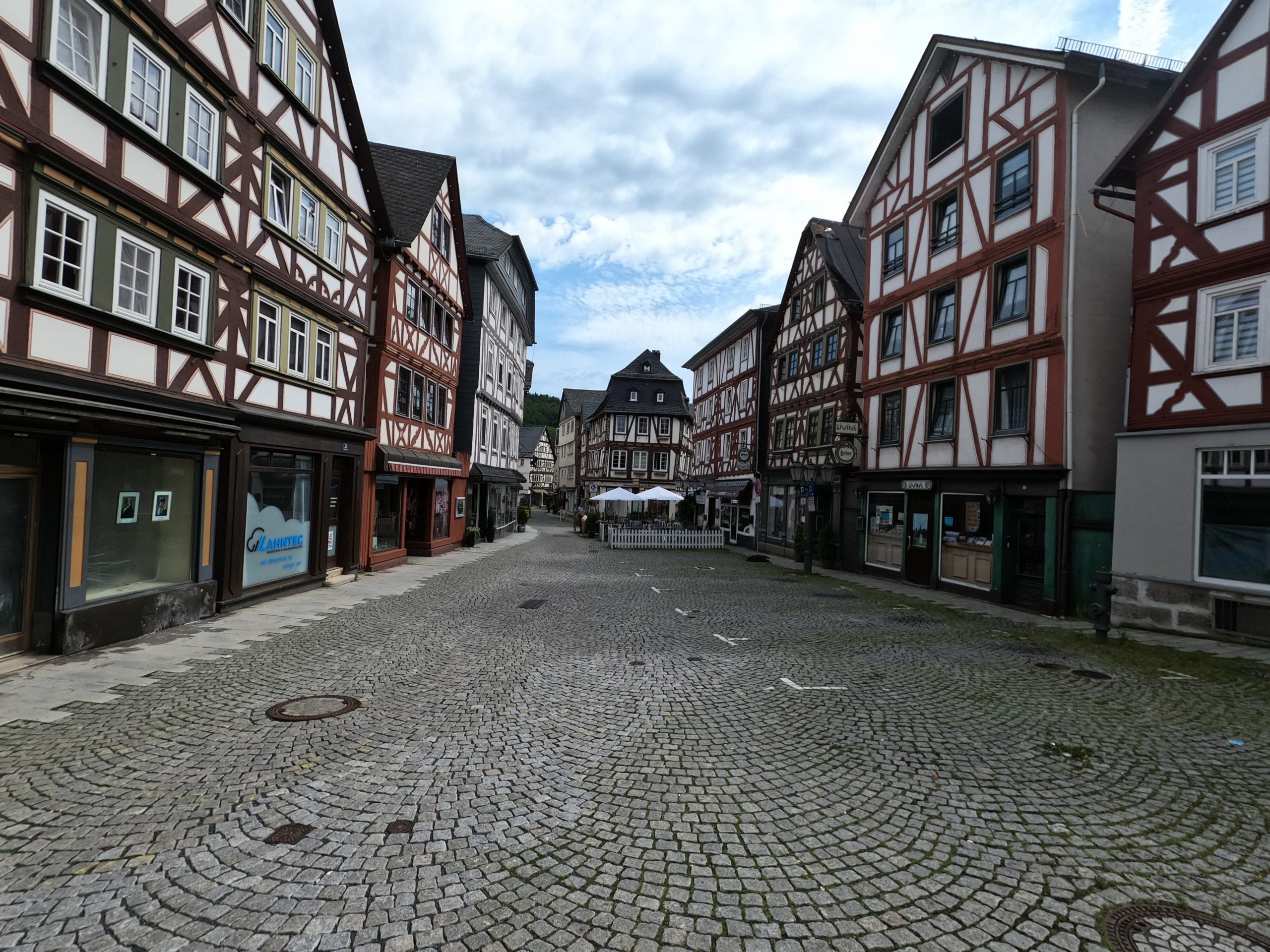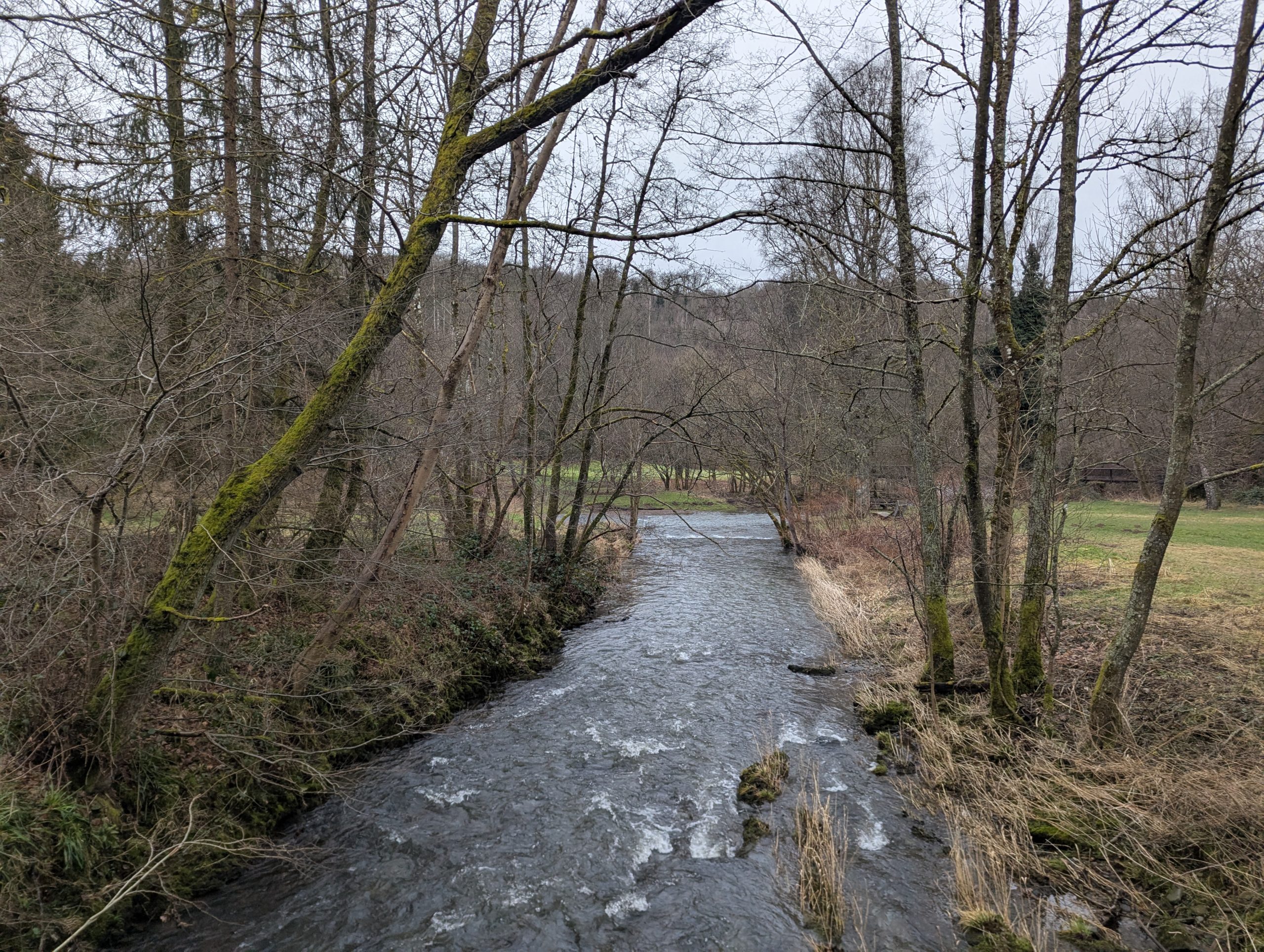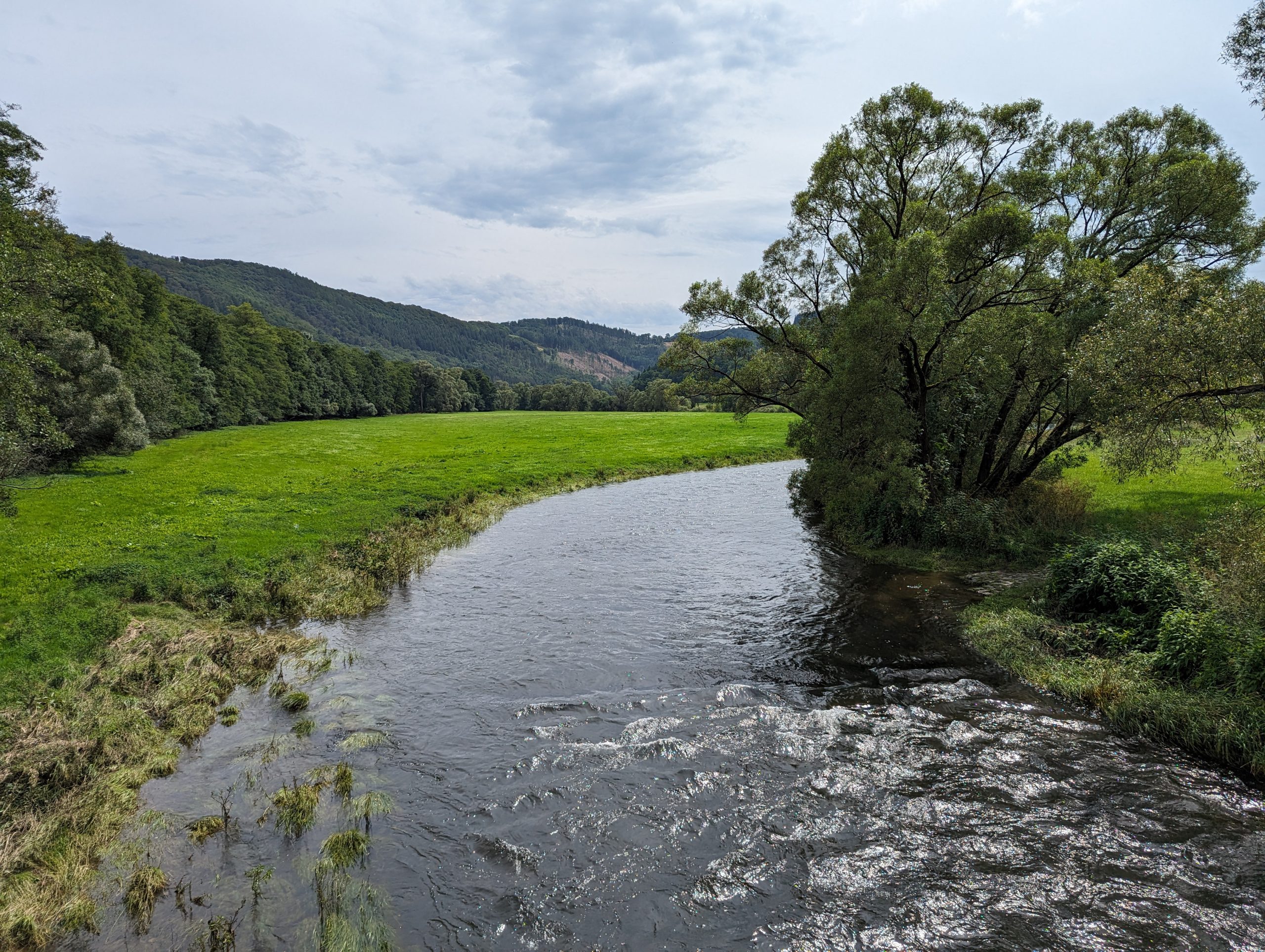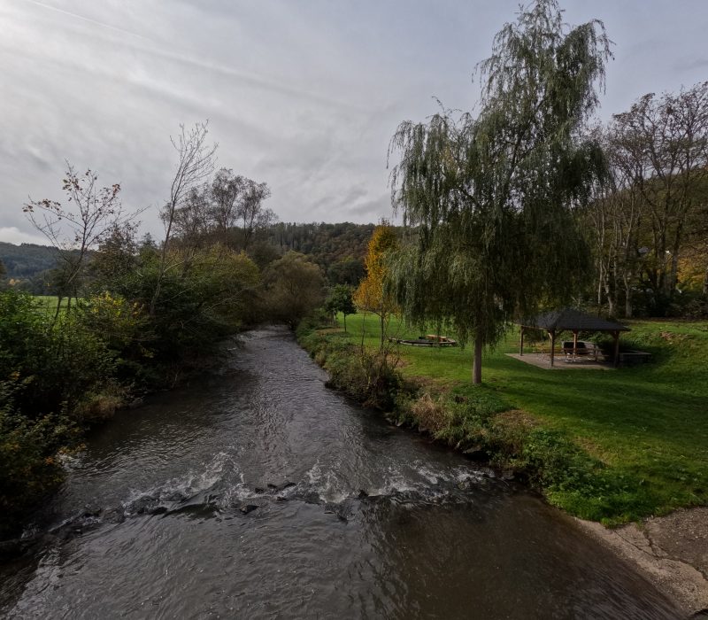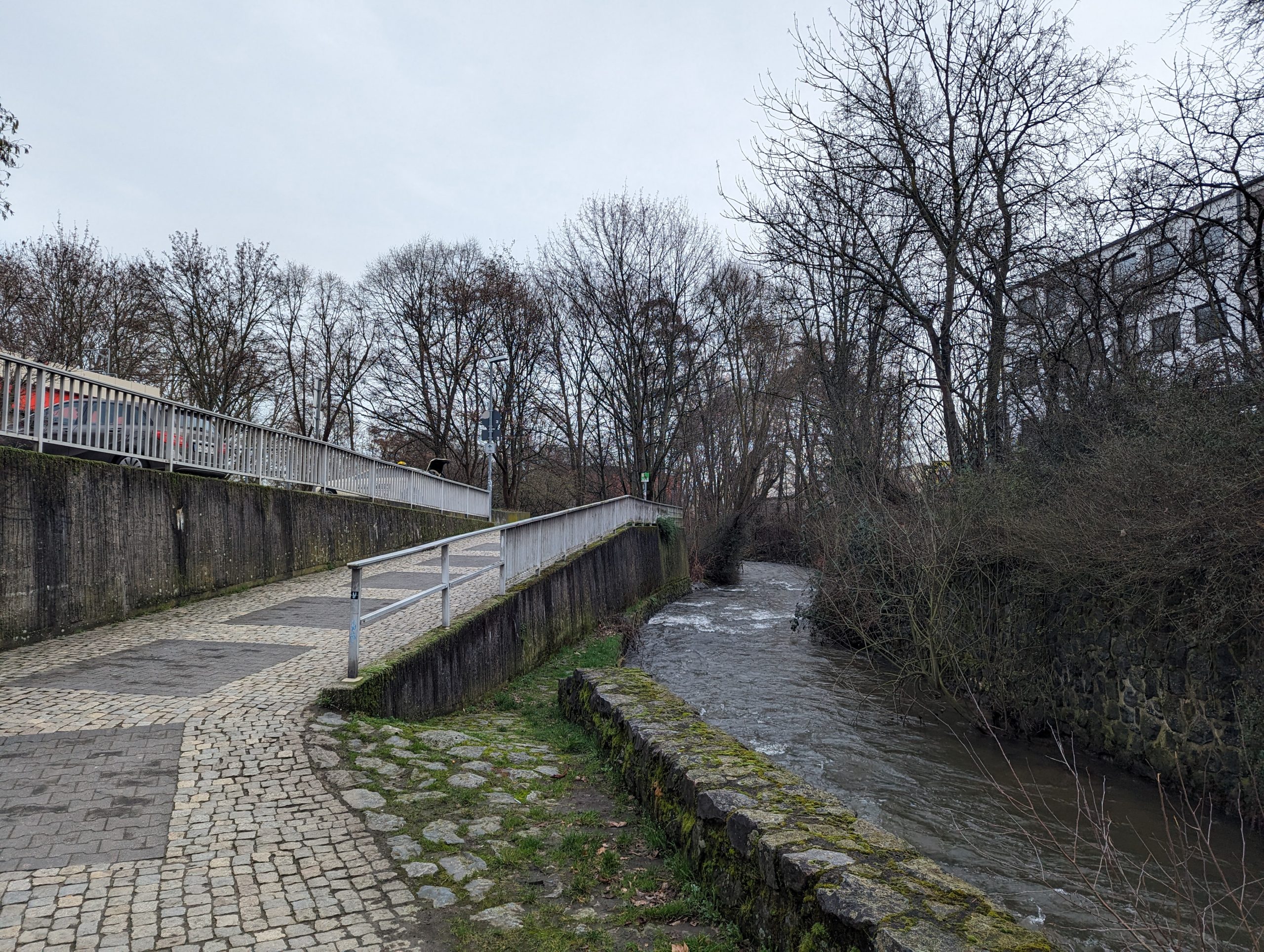 Ein paar kleine Verläufe mit eingerechnet reichen die 9 Kilometer aus um Sorgen über die Außendarstellung in der Fußgängerzone Herborns anwachsen zu lassen. Der Parkplatz an der Herborner Lahnbrücke wird dann kurz vor der Sockendurchnässung erreicht.