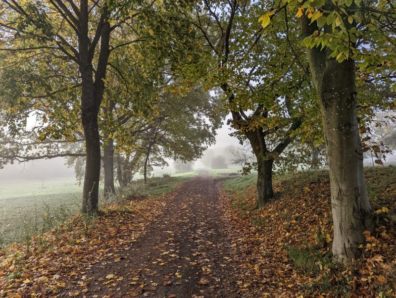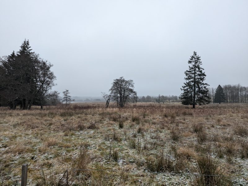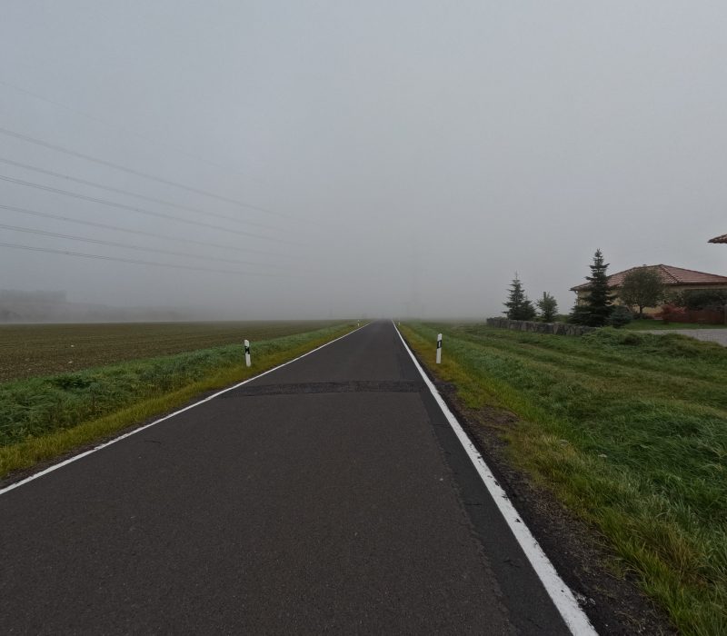 Die Bilder vom Hinweg zeigen die traurige und doch wieder schöne einsame Landschaft, der Nebel lässt nur Details unverschluckt, die seine Stimmungslage unterstützen.