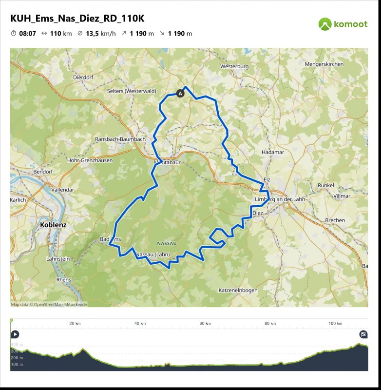 Variante 1: 100 km Runde Bad Ems – Lahntal – Nentershausen – Wallmerod