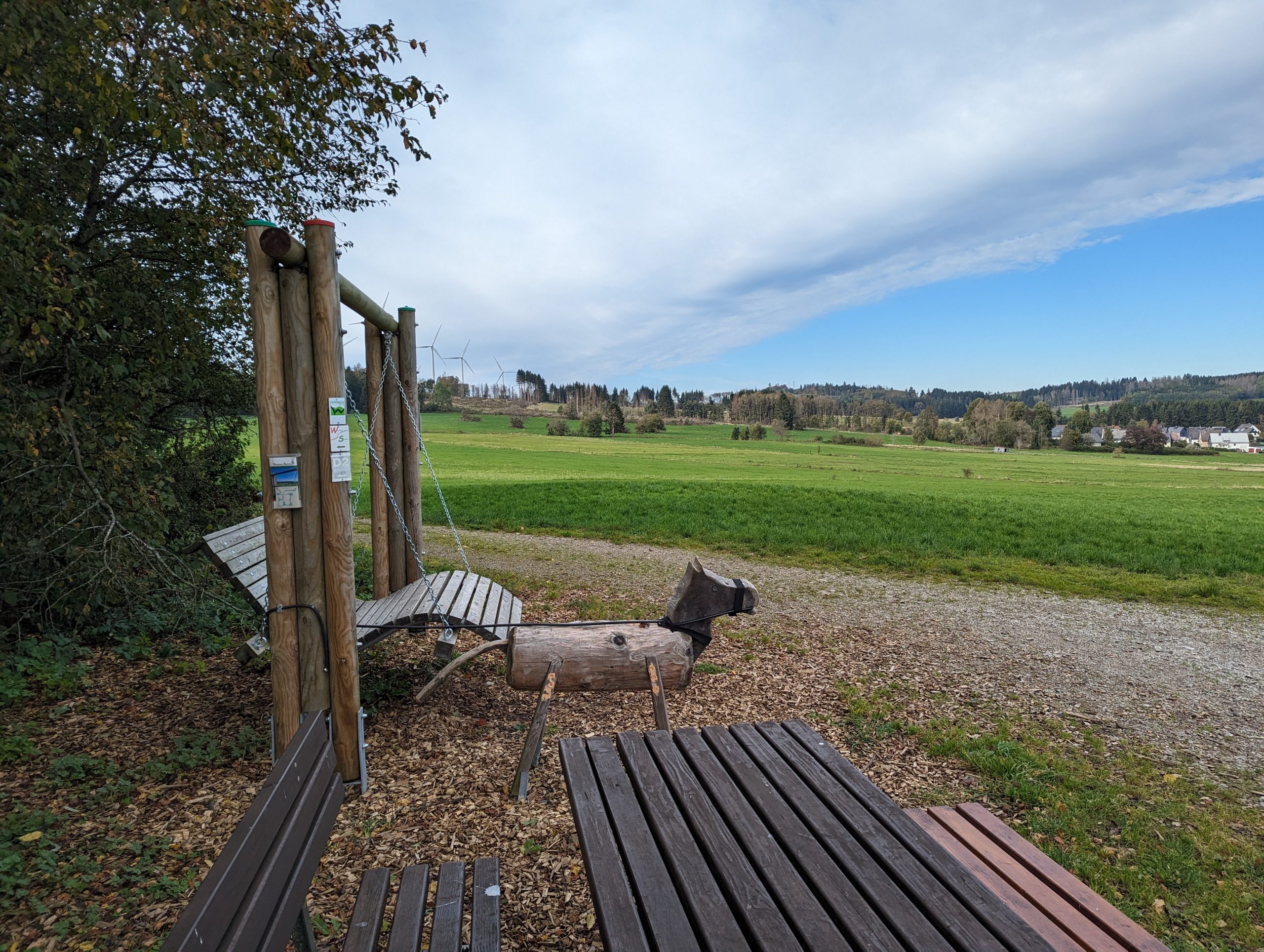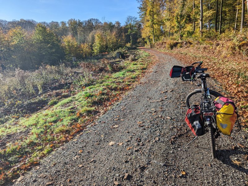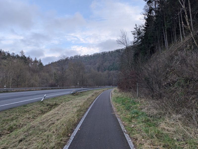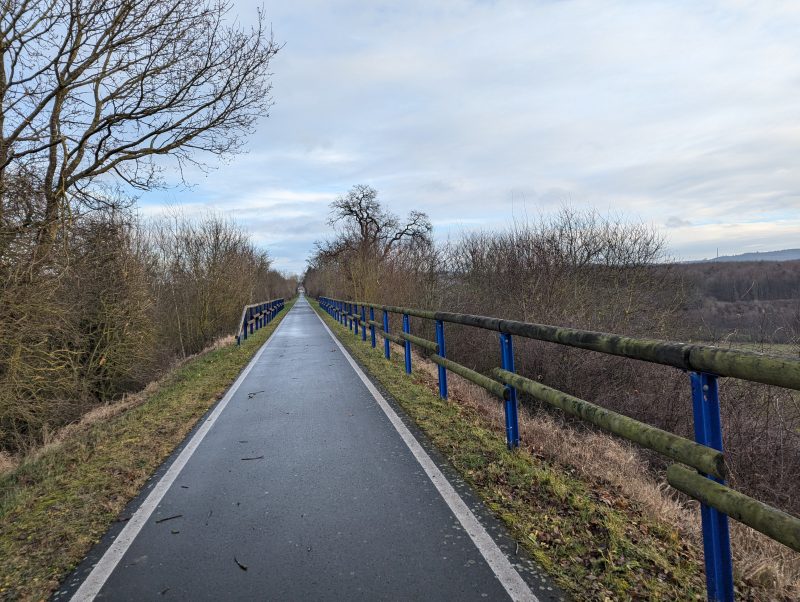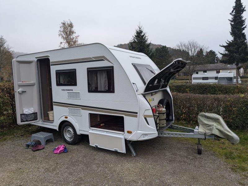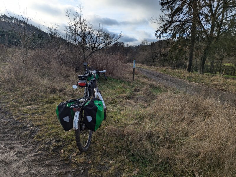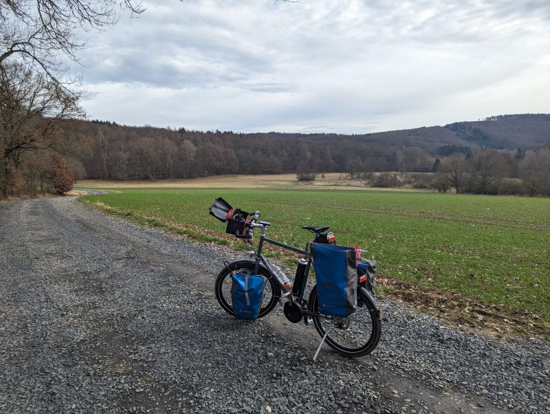 Ab November 2024 steht der große Wohnwagen auf dem Camping & Ferienpark Teichmann. Bis Ende März können wir den Stellplatz nutzen. Neben den Wandertouren in der neuen Umgebung gibt es auch eine Radstrecke abseits des Autoverkehrs. Mit 150 Kilometern ist es kürzer als nach Kirchzell, aber es gibt ein paar mehr Höhenmeter auf der Strecke.