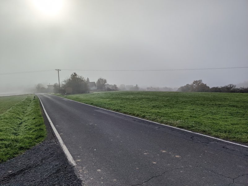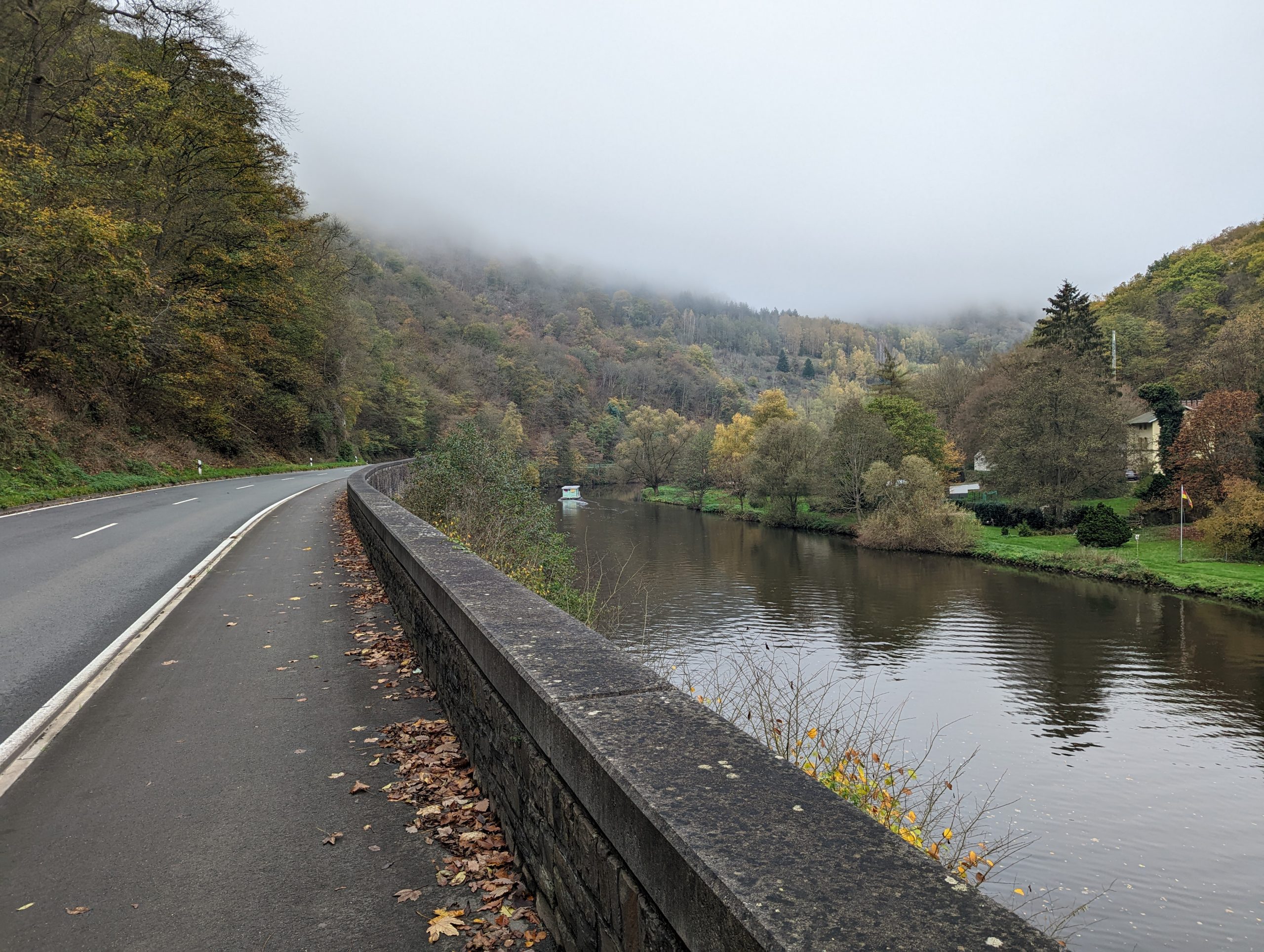 Das Tourwetter war nicht so schön wie angekündigt, statt des warmen Spätherbsttages war im Lahntal kalter Nebel und mit 92 km und den knapp 1000hm war die Runde ziemlich anstrengend.