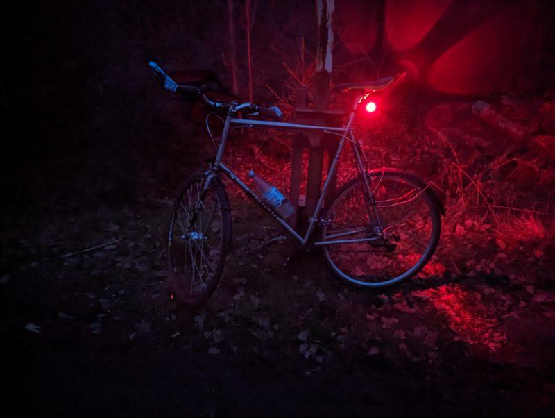 Die Zusatzbeleuchtung mit der Lupine Wilma am Lenker ist praktikabel, entlastet den Helm, beleuchtet allerdings nicht das Navi. Der Versuch mit dem alten Garmin Oregon 700 und der wassedichten Tasche war nicht erfolgreich, das Gerät zieht bei dauernd eingeschalteter Beleuchtung einen kleinen Akku leer und ist im dunkeln doch nur mäßig gut zu sehen.