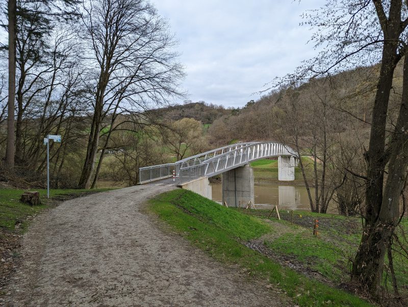 Anfang März wurden die zwei neuen Lahnbrücken fertig gestellt, mit denen der Lahnradweg zwischen Laurenburg und Geilnau im Lahntal verbleibt. Der Anstieg nach Scheidt ist damit nicht mehr Teil des Lahnradweges.