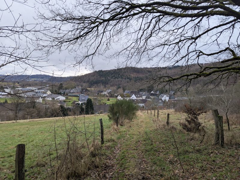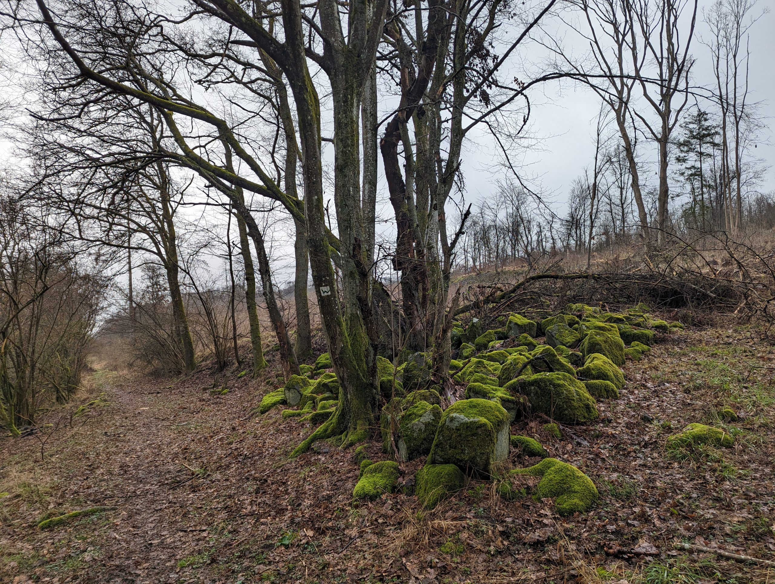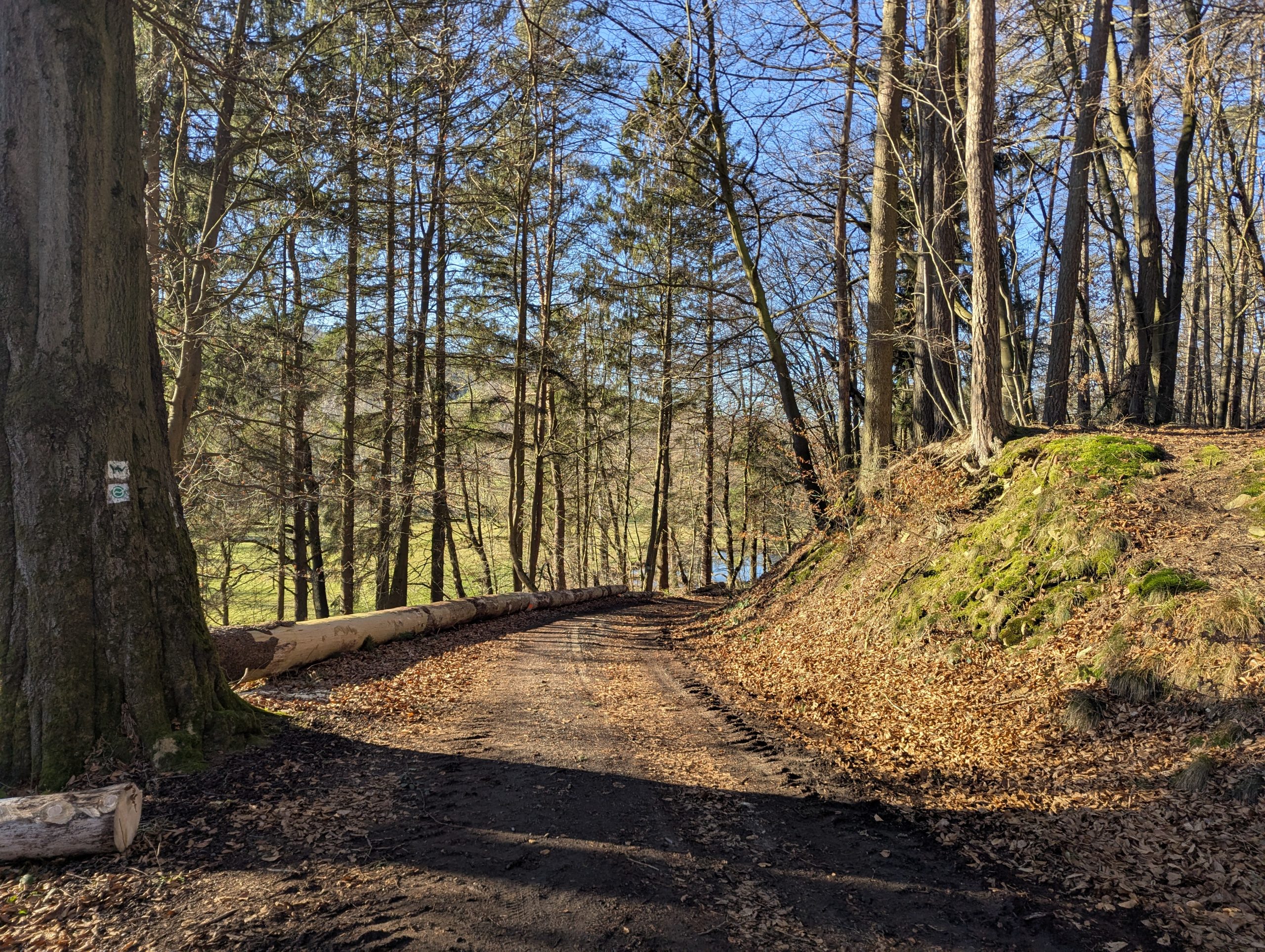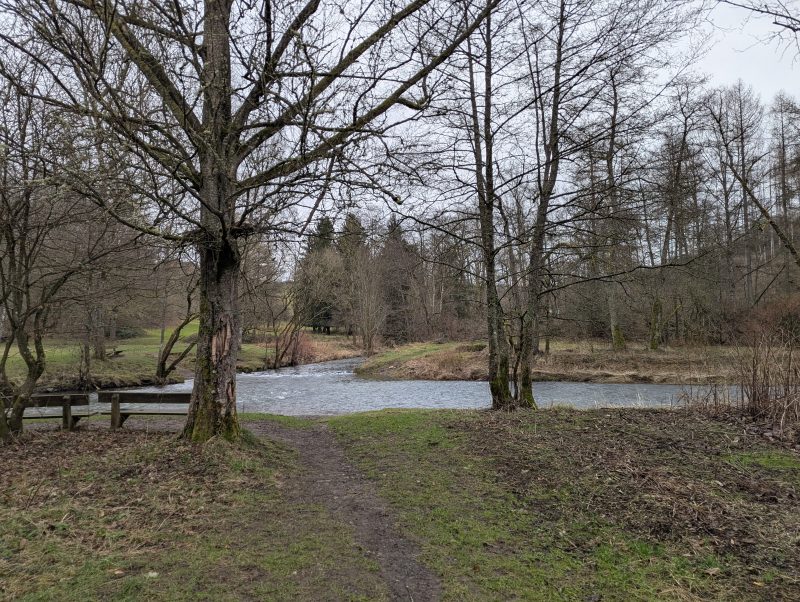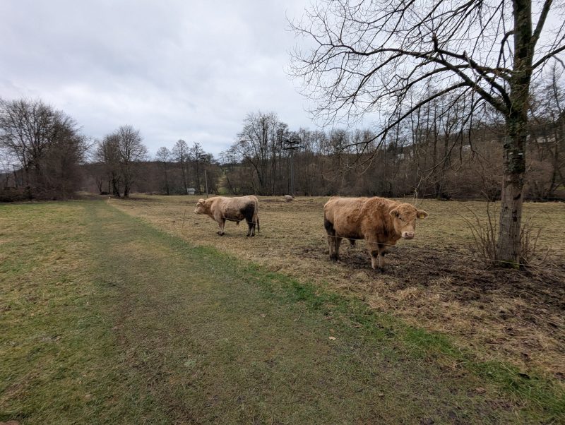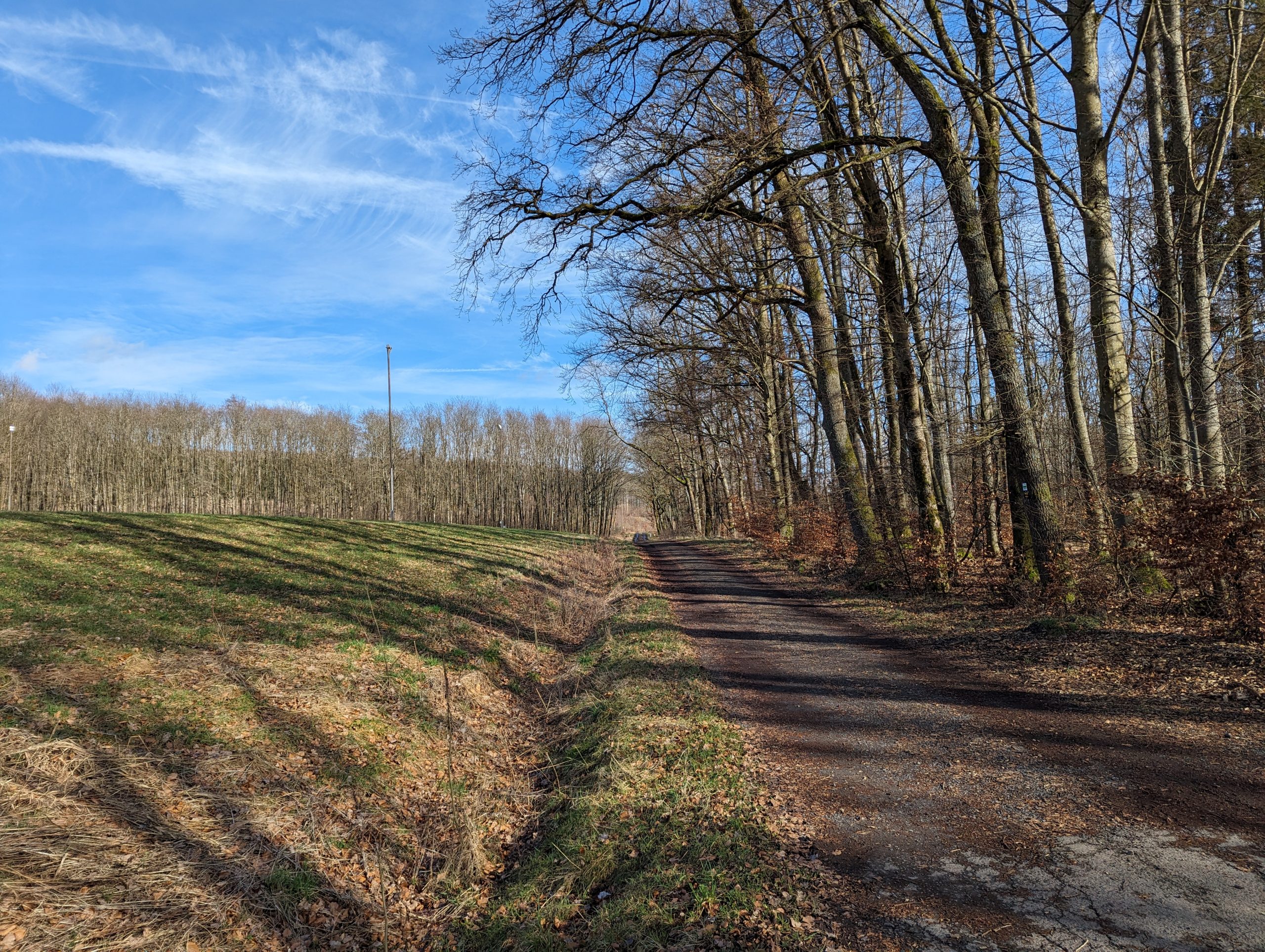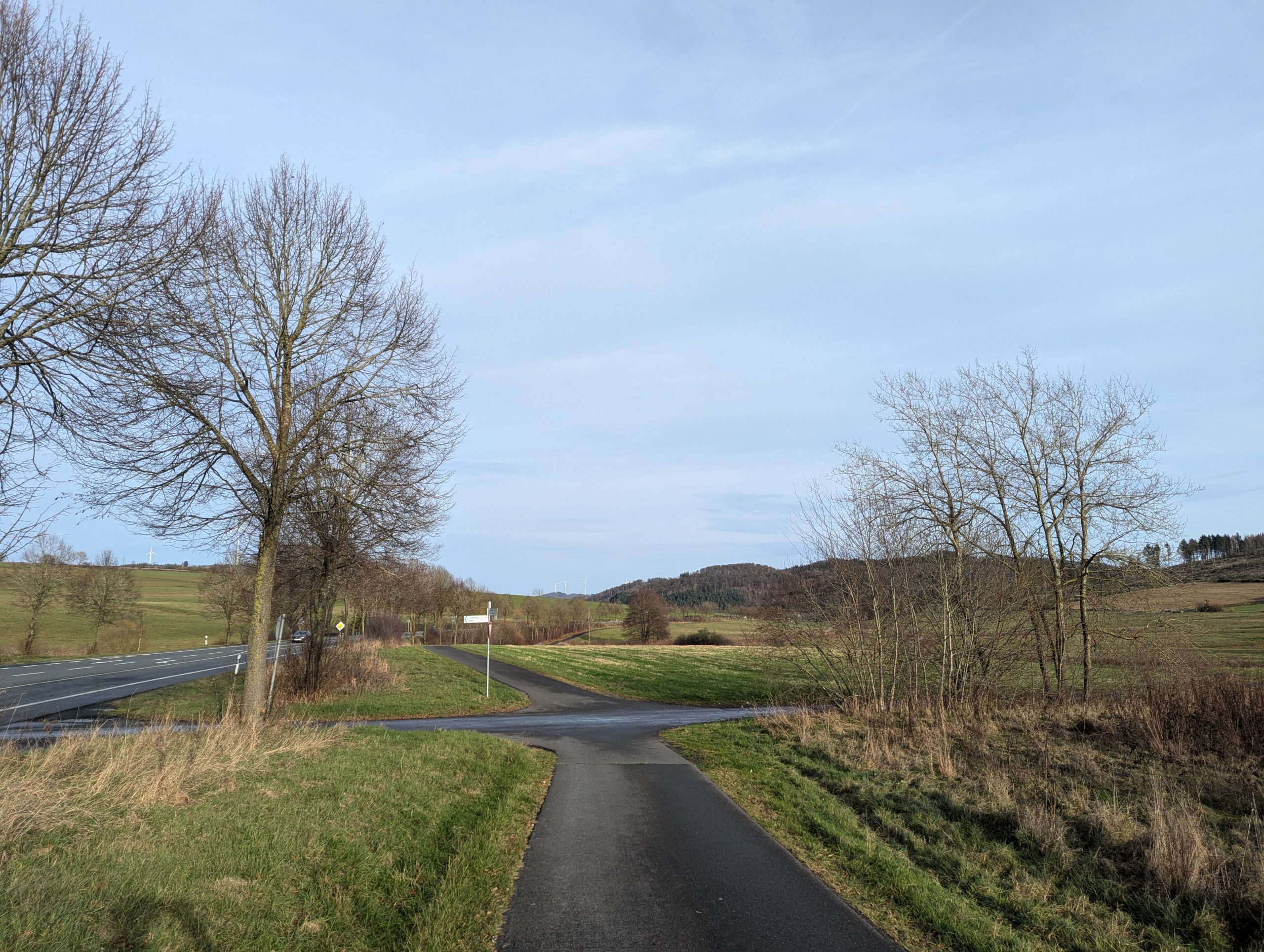 An einem der ersten Märztage im Jahre 2024 sieht es sehr nach November aus. Die Teilstrecke West der Etappe 5 geht über bekanntes Gelände mit eher leichten Steigungen ganz in der Nähe von Kunidorf vorbei. Den Weg von Rothenbach nach Freilingen wir mit Kunigunde gelaufen und zurück geht es dann allein. Nach der Radtour am Vortag droht am Anfang auf den Trailstreckenteilen das rechte Knie, das lässt dann aber durch kontrollierte Laufbewegungen nach. Die rechte Fußsohle hat einen scherzenden Riß aufgeboten und der rechte kleine Zeh meckert trotz Tapeverband vor sich hin.