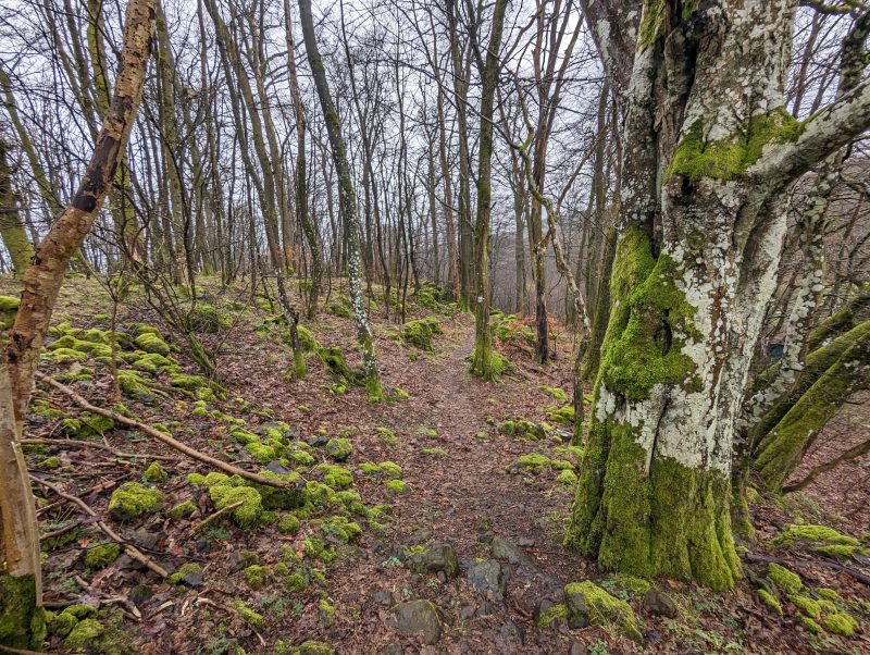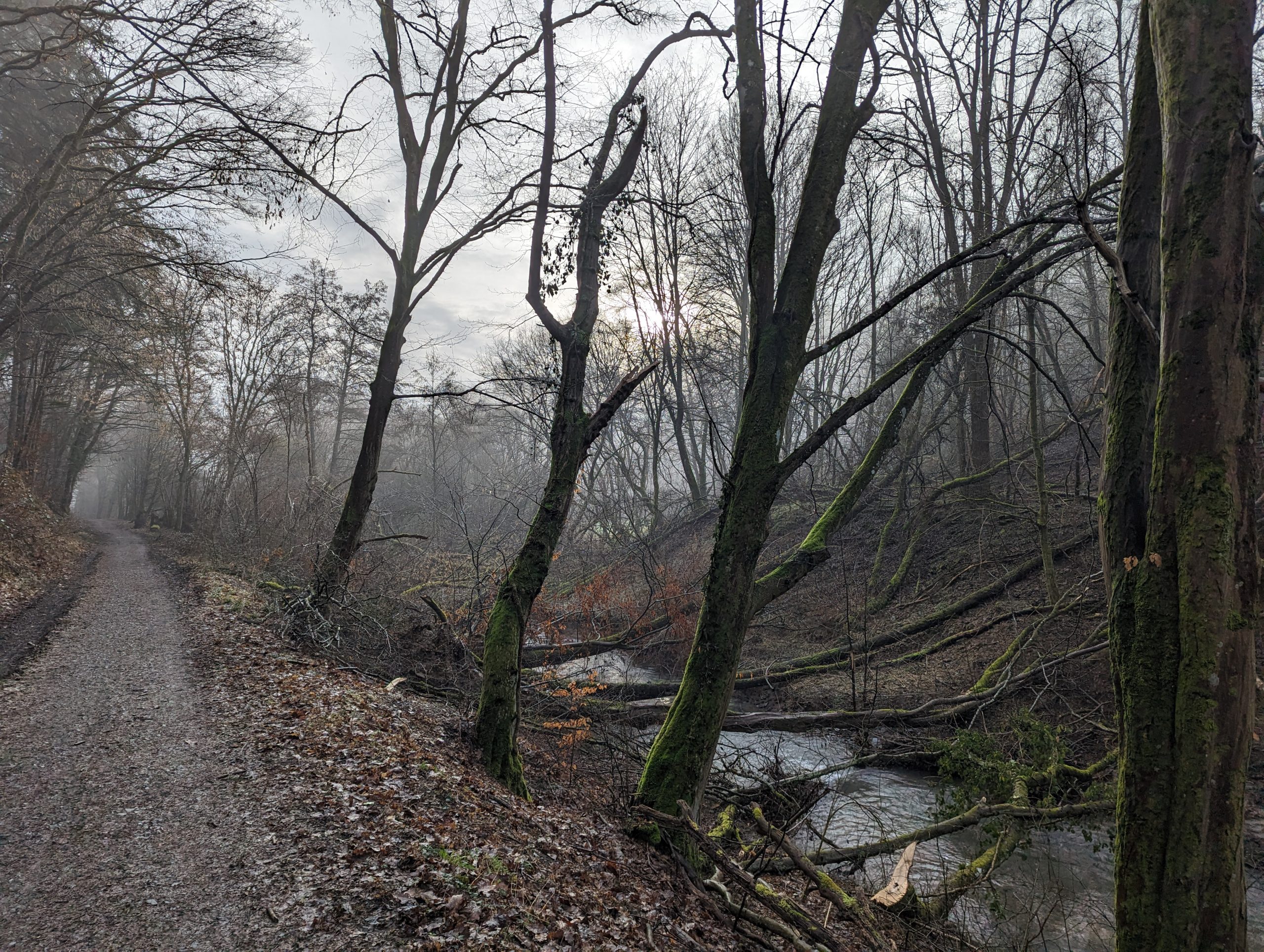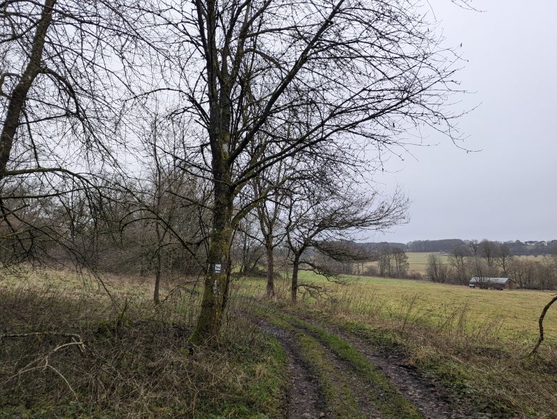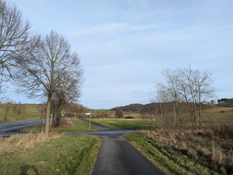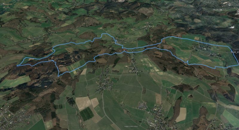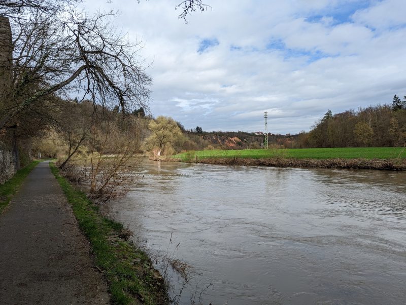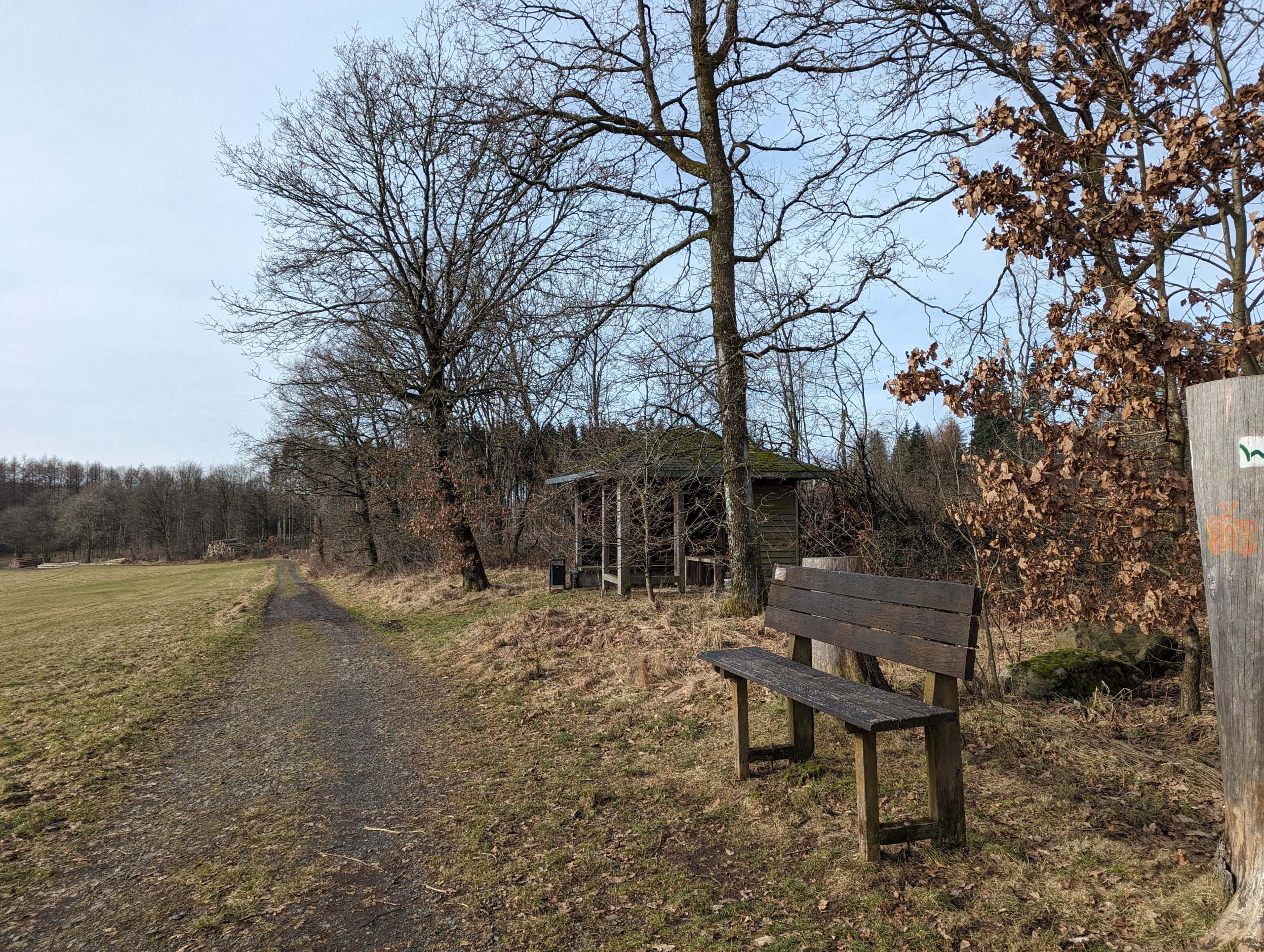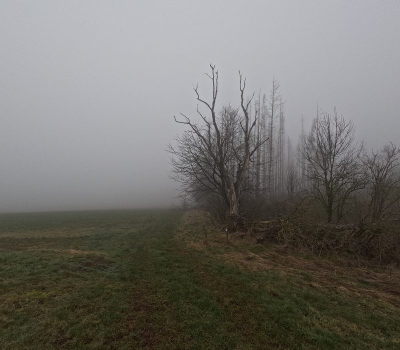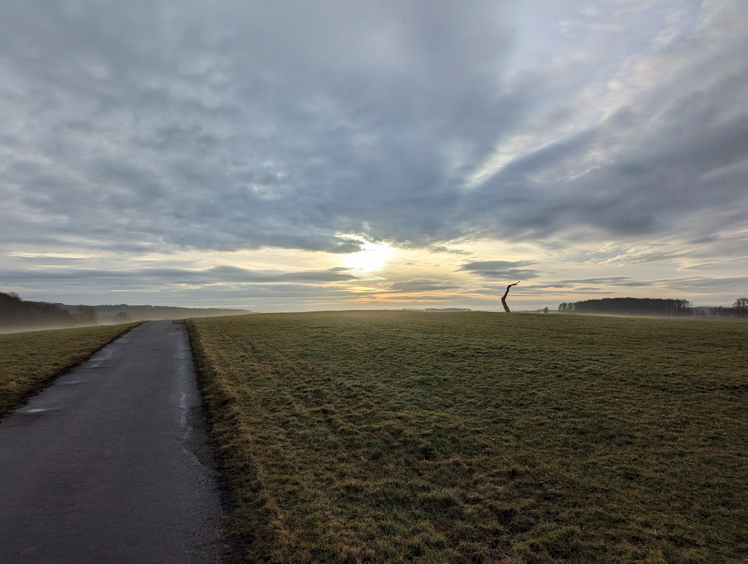 An einem der ersten Märztage im Jahre 2024 sieht es sehr nach November aus. Die Teilstrecke West der Etappe 5 geht über bekanntes Gelände mit eher leichten Steigungen ganz in der Nähe von Kunidorf vorbei. Den Weg von Rothenbach nach Freilingen wir mit Kunigunde gelaufen und zurück geht es dann allein. Nach der Radtour am Vortag droht am Anfang auf den Trailstreckenteilen das rechte Knie, das lässt dann aber durch kontrollierte Laufbewegungen nach. Die rechte Fußsohle hat einen scherzenden Riß aufgeboten und der rechte kleine Zeh meckert trotz Tapeverband vor sich hin.