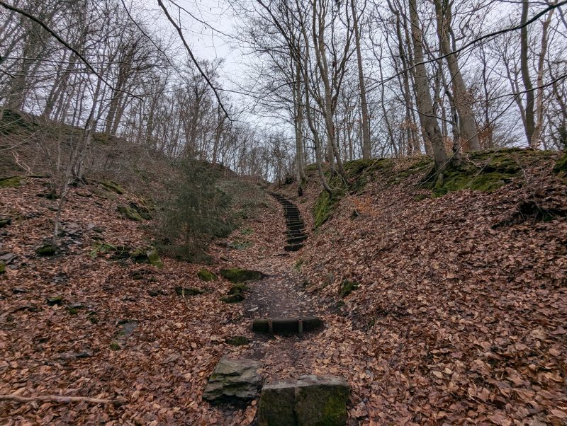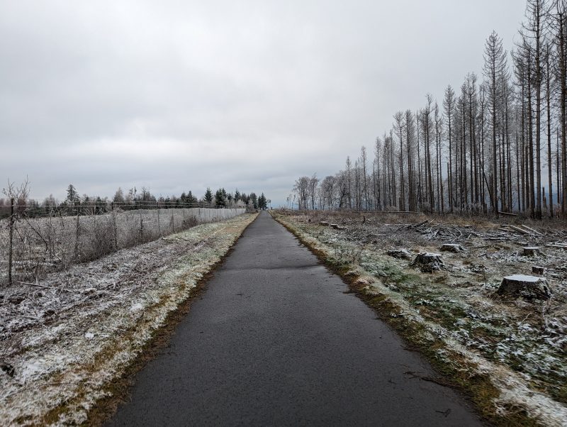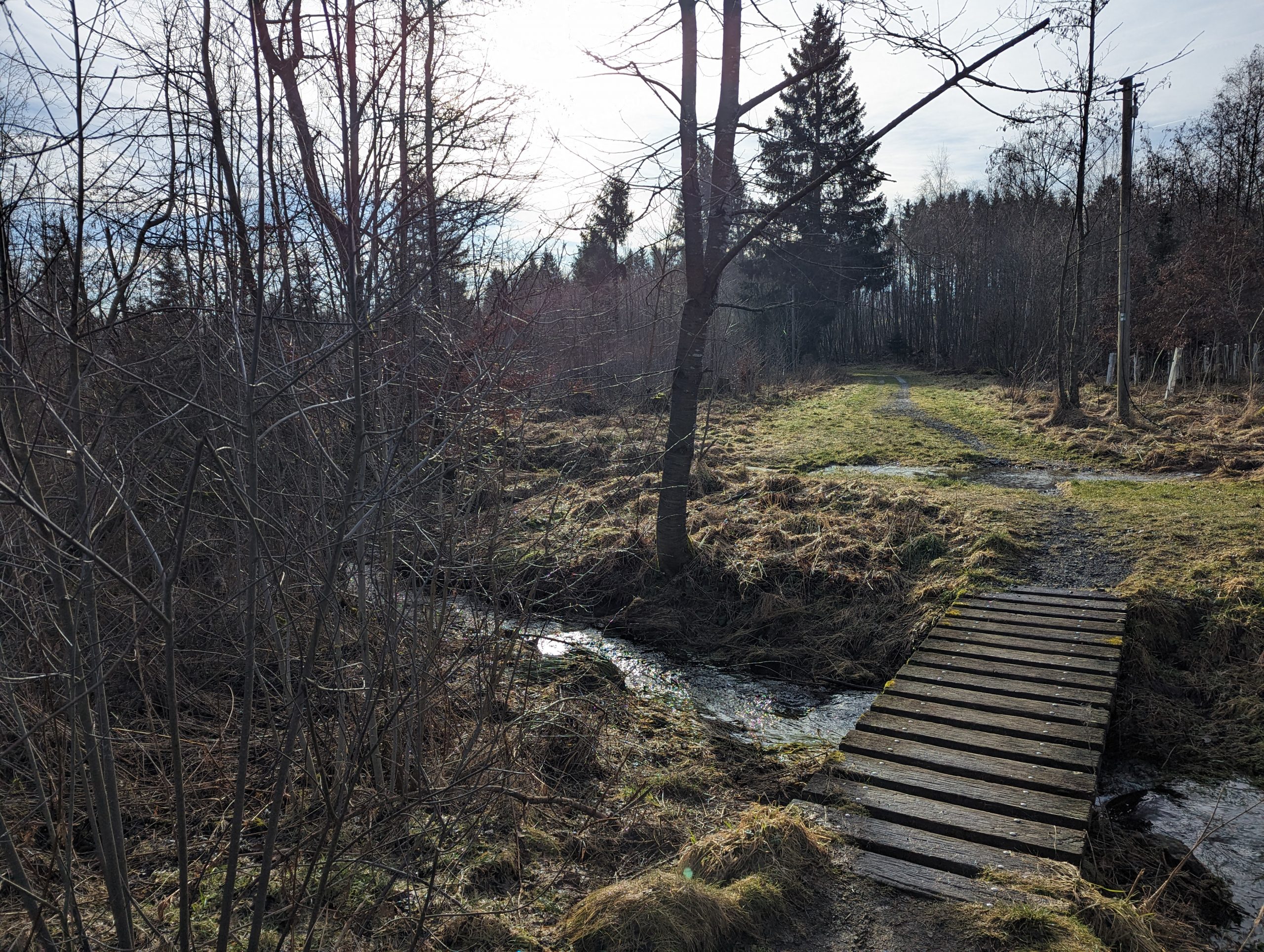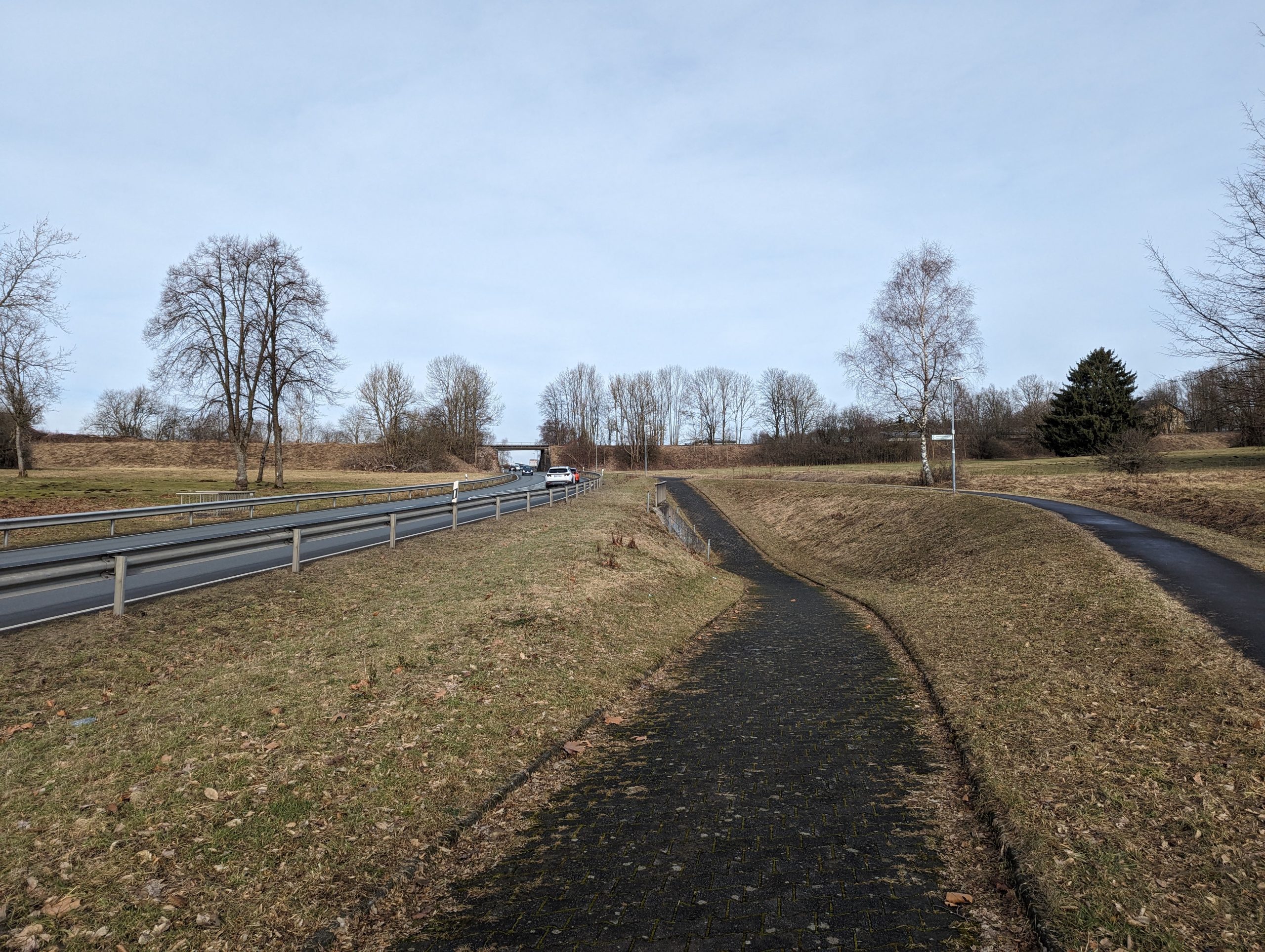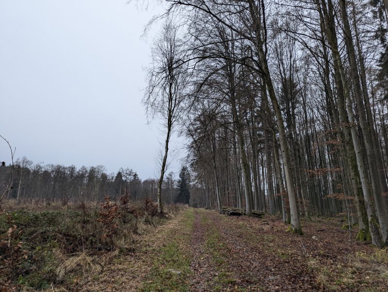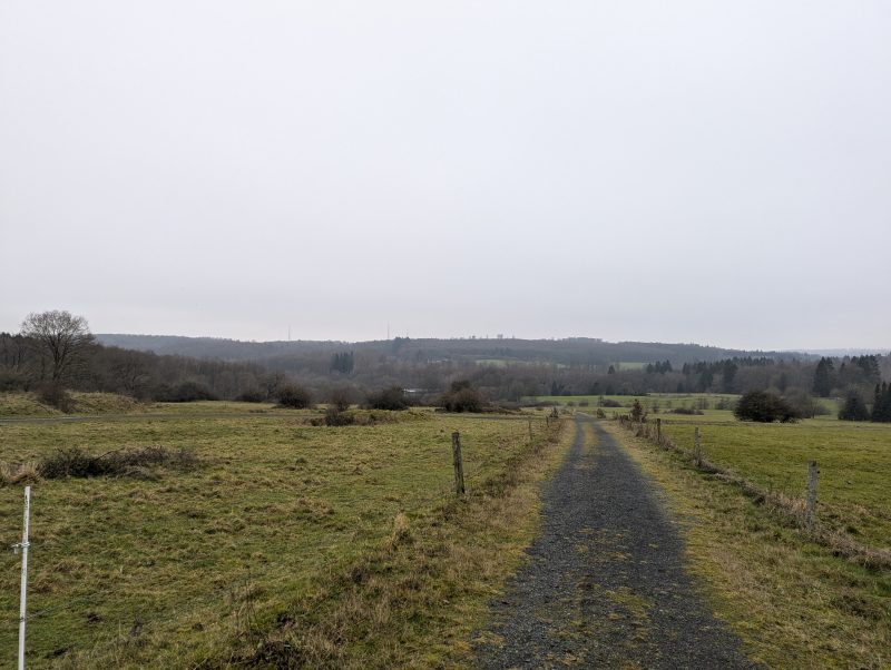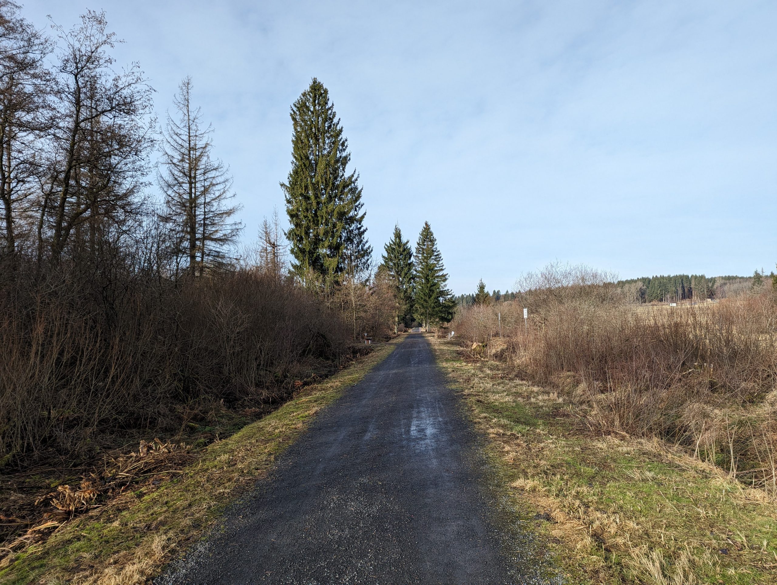 An einem der ersten Märztage im Jahre 2024 sieht es sehr nach November aus. Die Teilstrecke West der Etappe 5 geht über bekanntes Gelände mit eher leichten Steigungen ganz in der Nähe von Kunidorf vorbei. Den Weg von Rothenbach nach Freilingen wir mit Kunigunde gelaufen und zurück geht es dann allein. Nach der Radtour am Vortag droht am Anfang auf den Trailstreckenteilen das rechte Knie, das lässt dann aber durch kontrollierte Laufbewegungen nach. Die rechte Fußsohle hat einen scherzenden Riß aufgeboten und der rechte kleine Zeh meckert trotz Tapeverband vor sich hin.