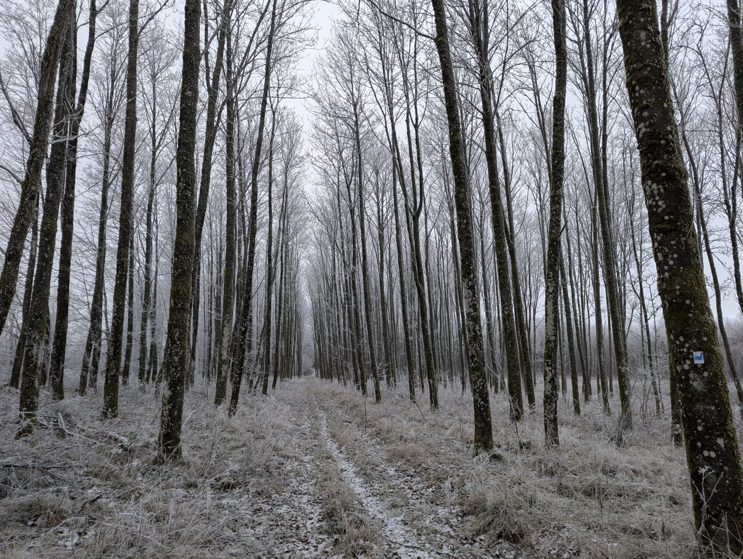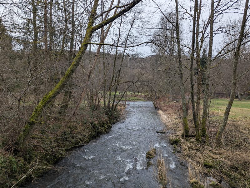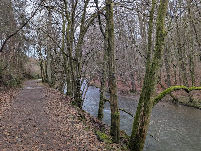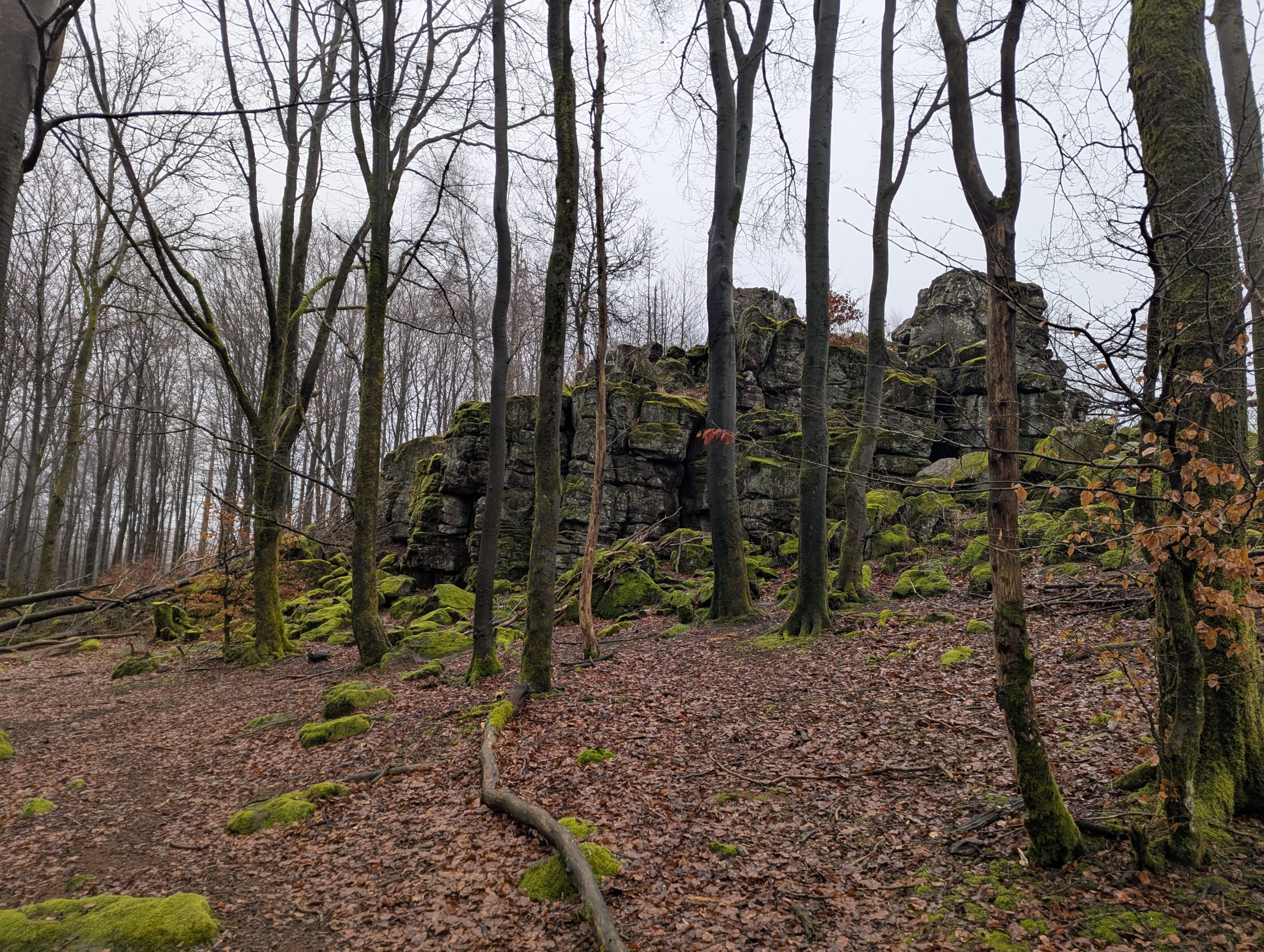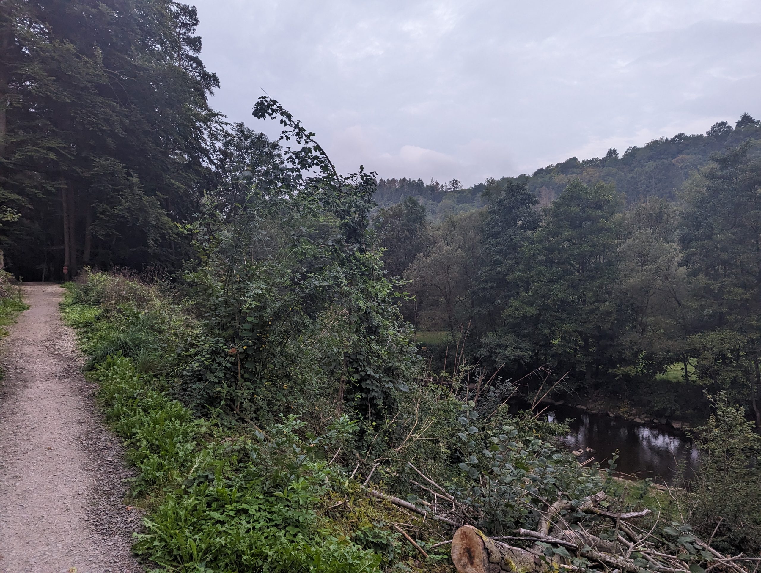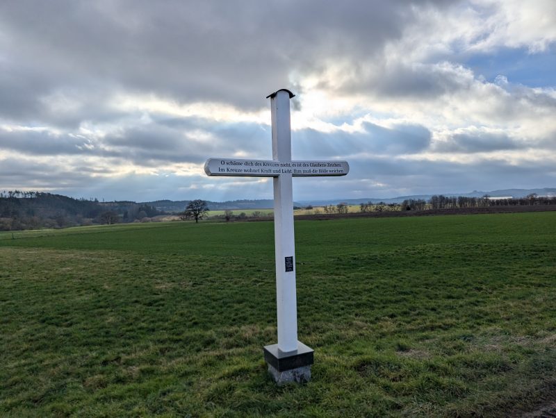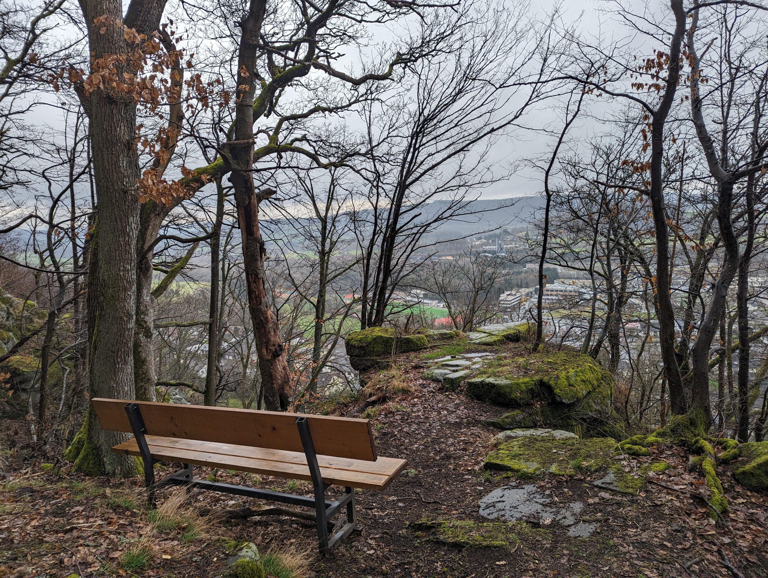 An einem der ersten Märztage im Jahre 2024 sieht es sehr nach November aus. Die Teilstrecke West der Etappe 5 geht über bekanntes Gelände mit eher leichten Steigungen ganz in der Nähe von Kunidorf vorbei. Den Weg von Rothenbach nach Freilingen wir mit Kunigunde gelaufen und zurück geht es dann allein. Nach der Radtour am Vortag droht am Anfang auf den Trailstreckenteilen das rechte Knie, das lässt dann aber durch kontrollierte Laufbewegungen nach. Die rechte Fußsohle hat einen scherzenden Riß aufgeboten und der rechte kleine Zeh meckert trotz Tapeverband vor sich hin.