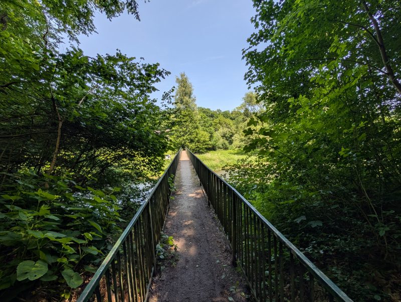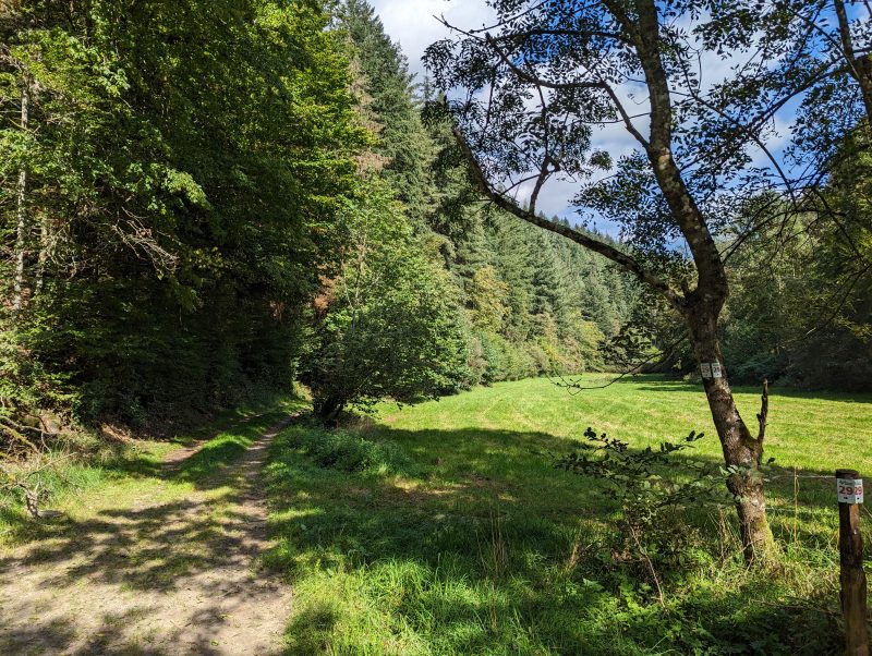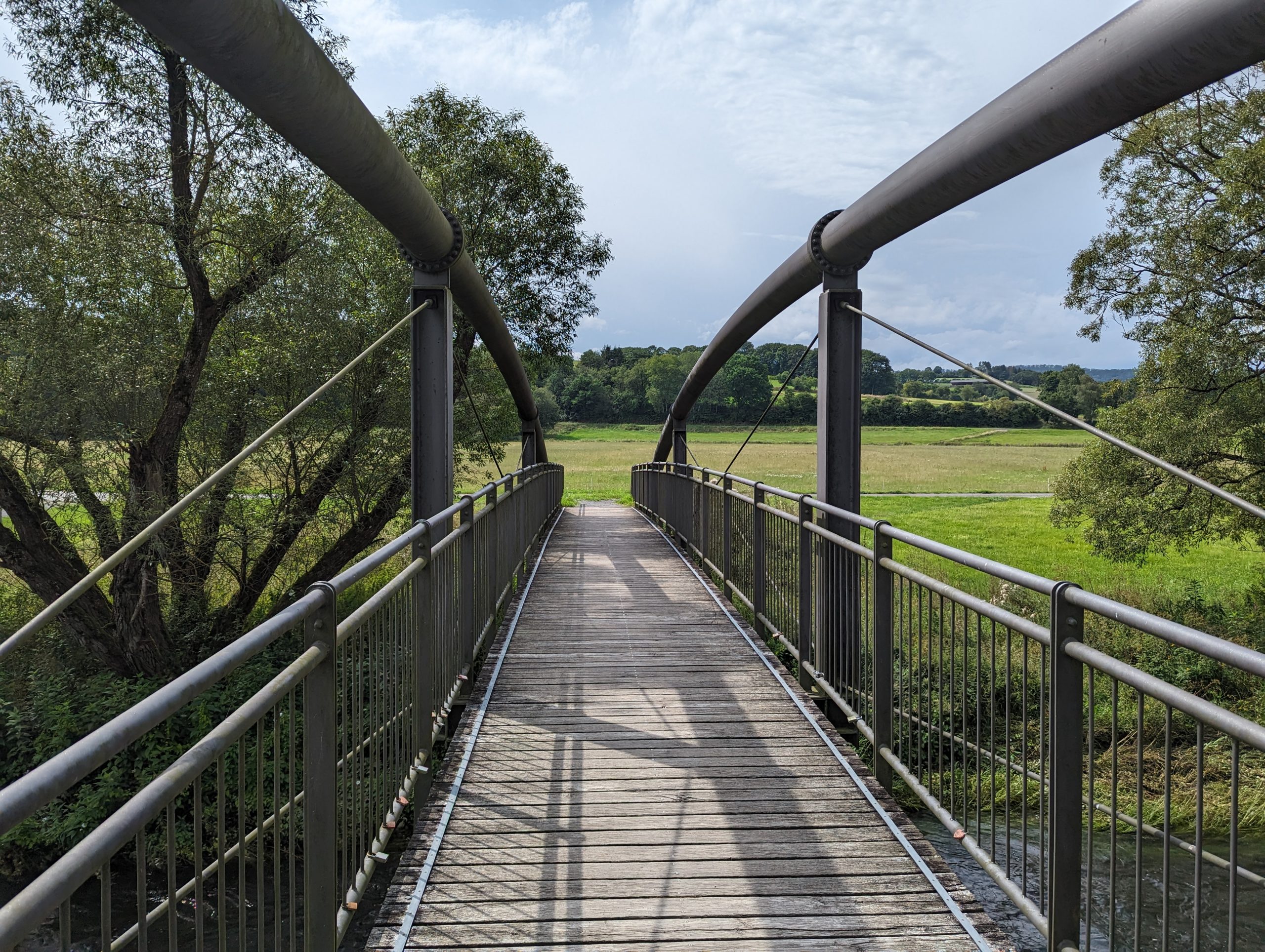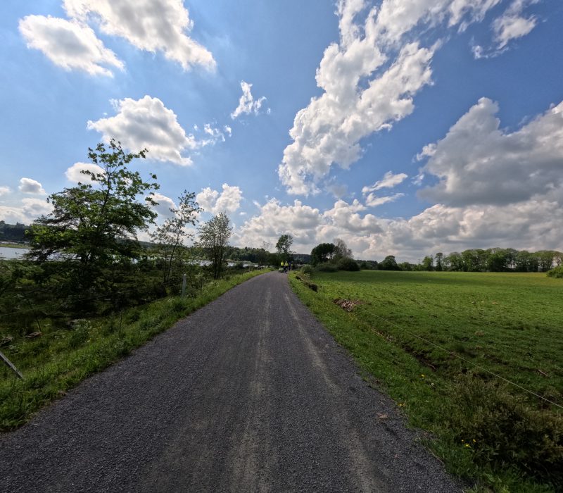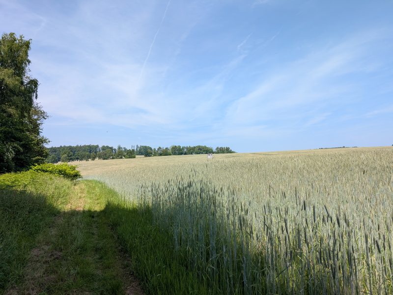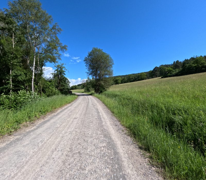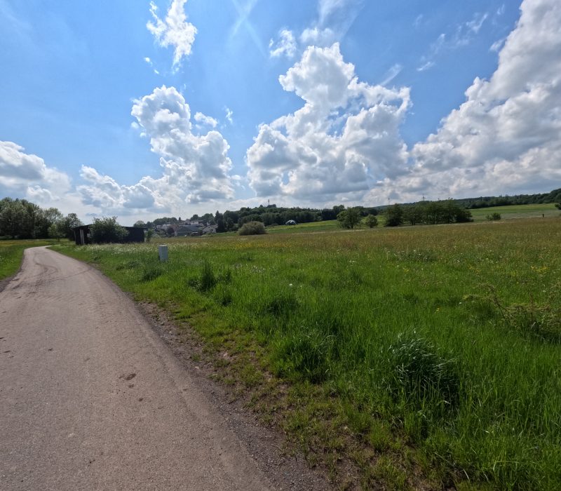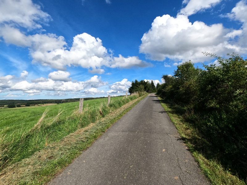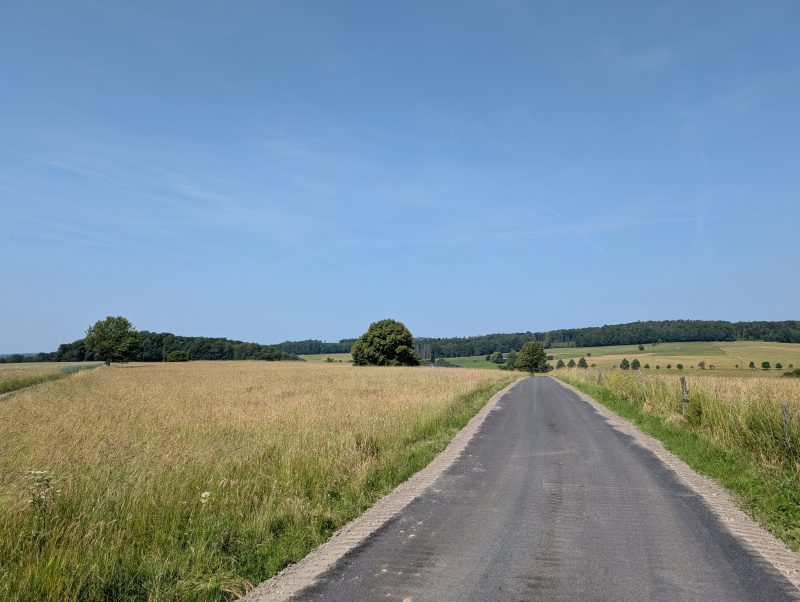 Es ist immer noch warm und der zweite Tandemtest bietet wieder eine Mischung aus Fahr- und Schiebestrecken. Häufig Aussicht, mal etwas Wald ist die Landschaft nach dem Nisterabzweig übersichtlicher und die Wege sind nicht so pfadig und daher gibt es nicht so viele Umleitungen auf dem Westerwaldsteig, weil wir das Rad dabei haben.