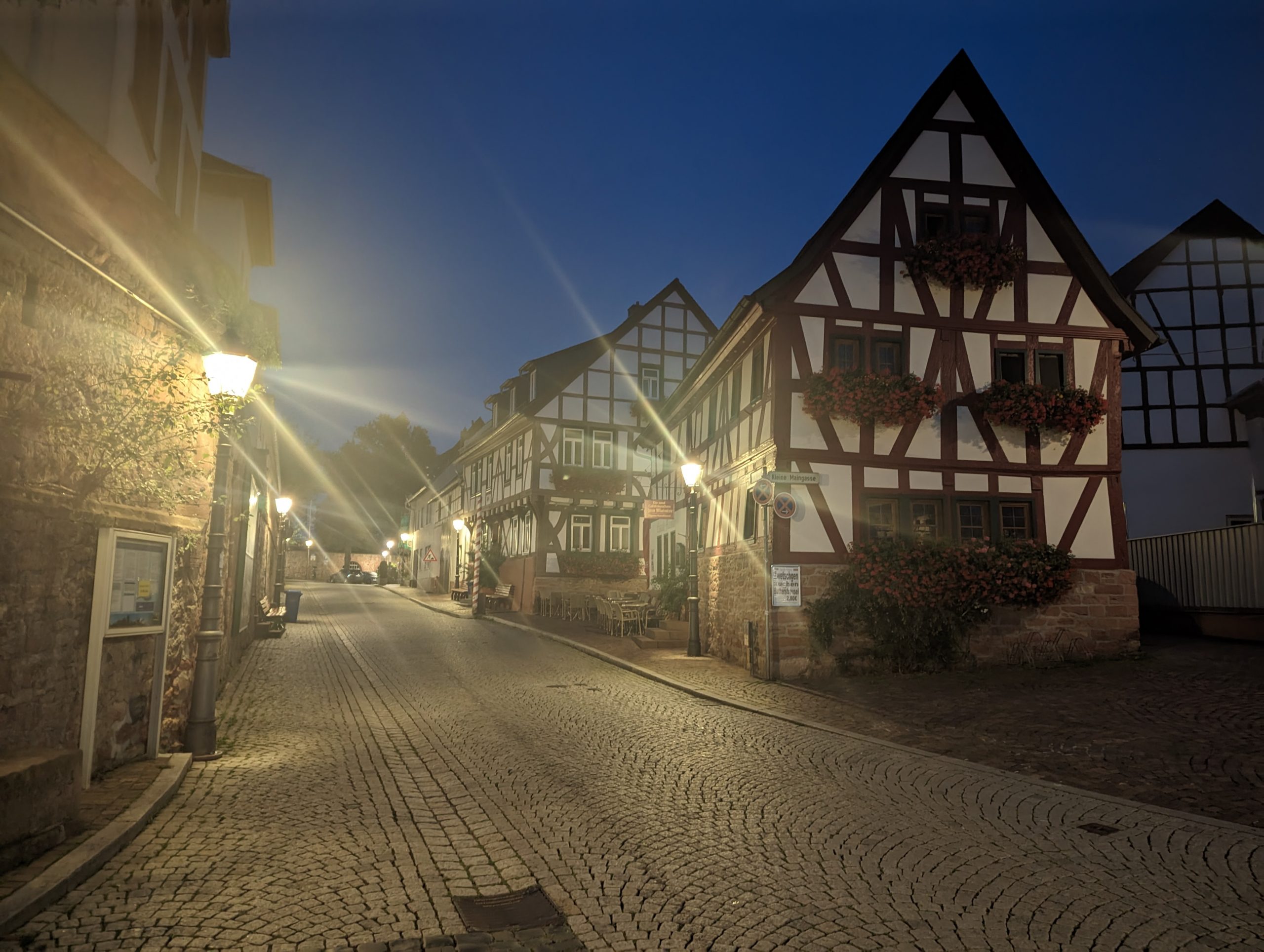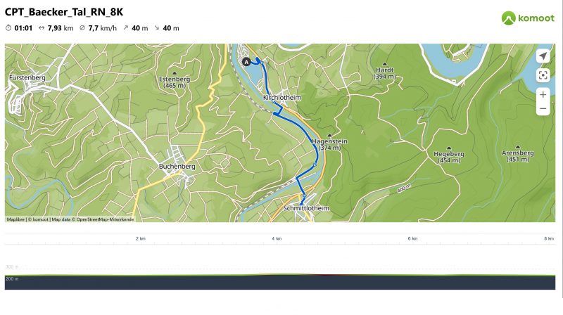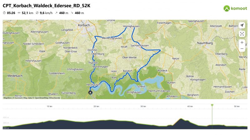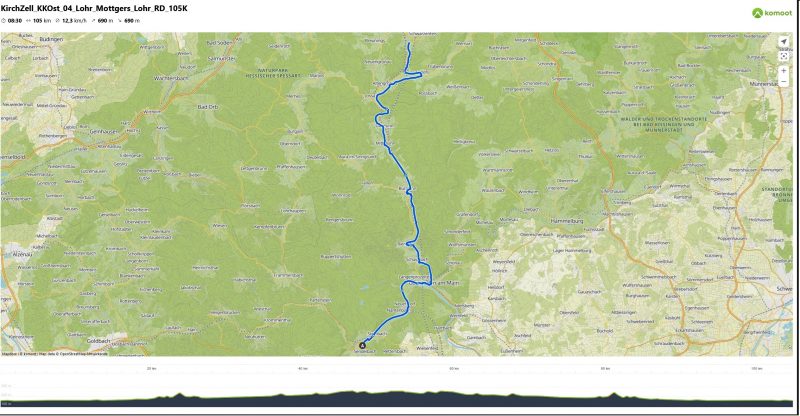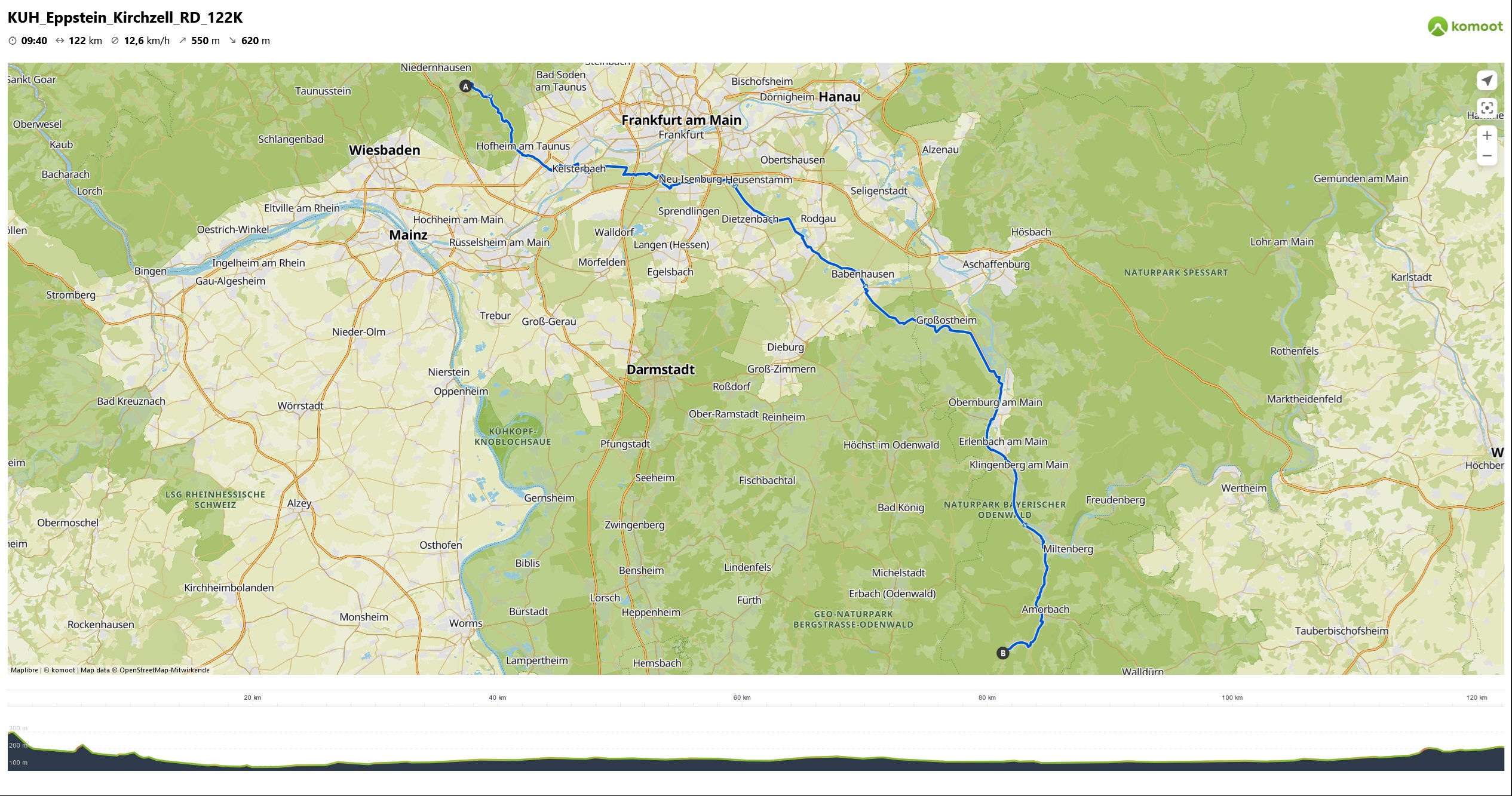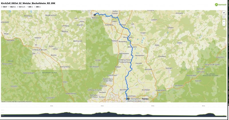 Die Strecke nach Eppstein durch den Vordertaunus ist inzwischen ziemlich ausoptimiert. Eine Strecke von April 2024 hatte statt 660 hm noch 1030 hm. Daher war der CP Eppstein trotz mehrerer Pausen bei warmem Wetter schon um 15.30 erreicht. Das Radrolle sauber, das ölen der Speichen hat das knacken eliminiert.