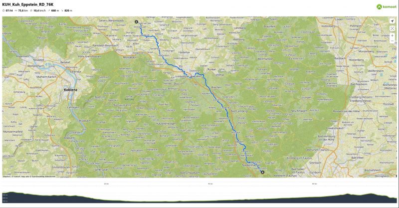 Die A3 Unterquerung bei Nentershausen und die vielbefahrene Landesstraße nach Steinefrenz muss noch optimiert werden, für die nächste Runde ist diese Strecke mit ein paar zusätzlichen Hühenmetern über Obererbach geplant.