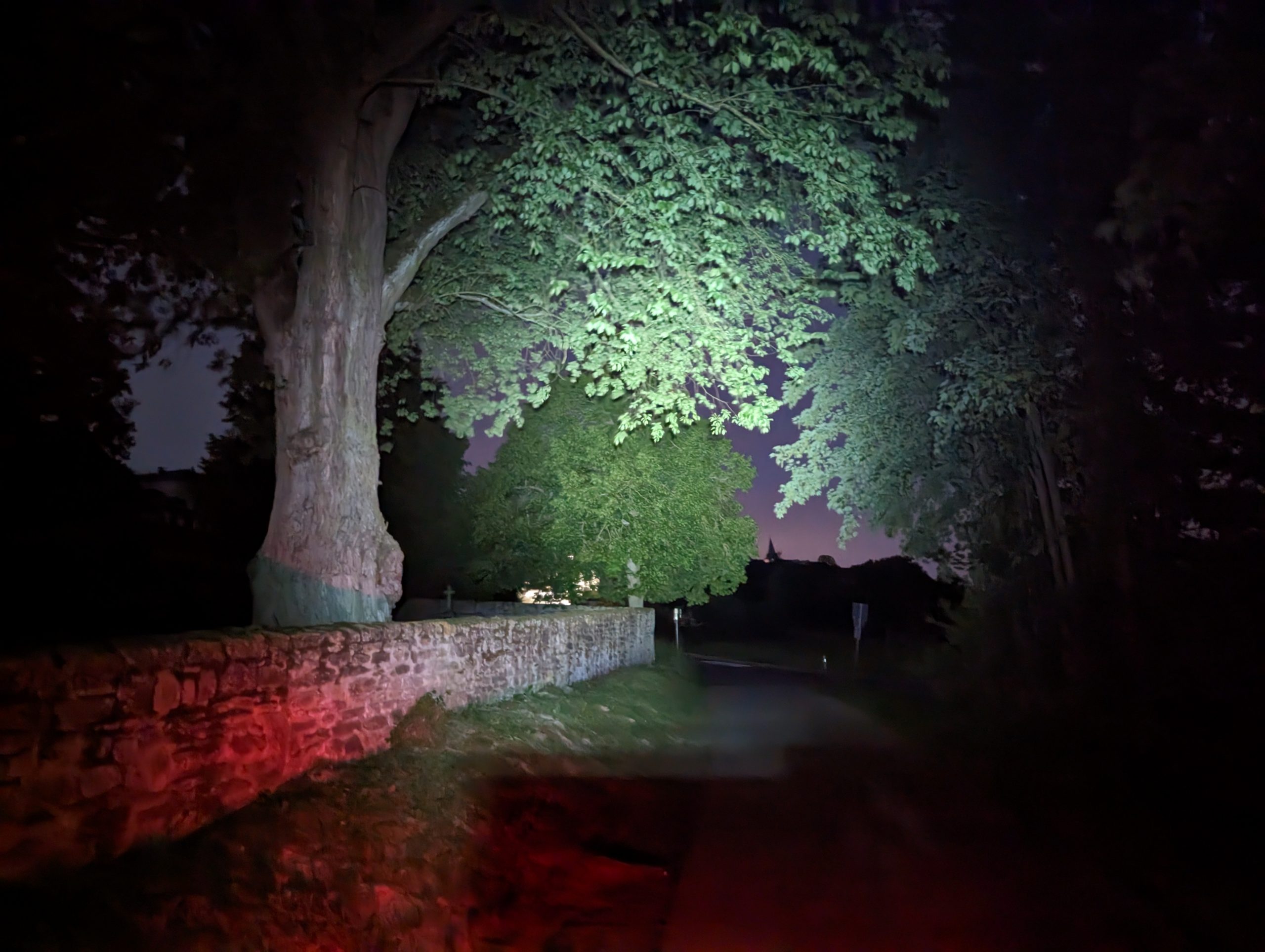 Wie immer ist Lüdenscheid eine einzige Quälerei hinauf und hinunter. Dann noch einmal über die gesperrte A45 und dann hinunter durch das Nahmer Tal zur Lenne und Ruhr. Mit dem dritten Akku und noch mit ausreichend Reserve ist Hohensyburg und das Wannebachtal keine Quälerei, die Nacht ist aber trotz Motorunterstützung nicht krampffrei. Die Erschöpfungszustände halten mindestens drei Tage an und zeigen, dass solche Ausdauerleistungen mit 13 Stunden im Sattel und über 2000 hm nicht mehr einfach so anzugehen sind.