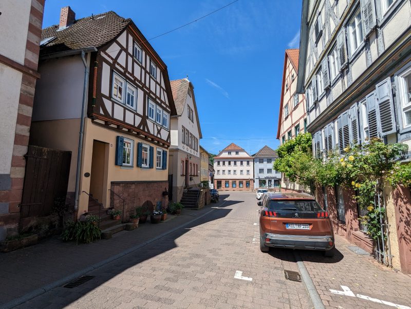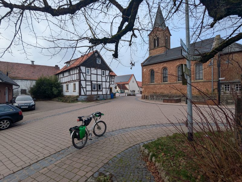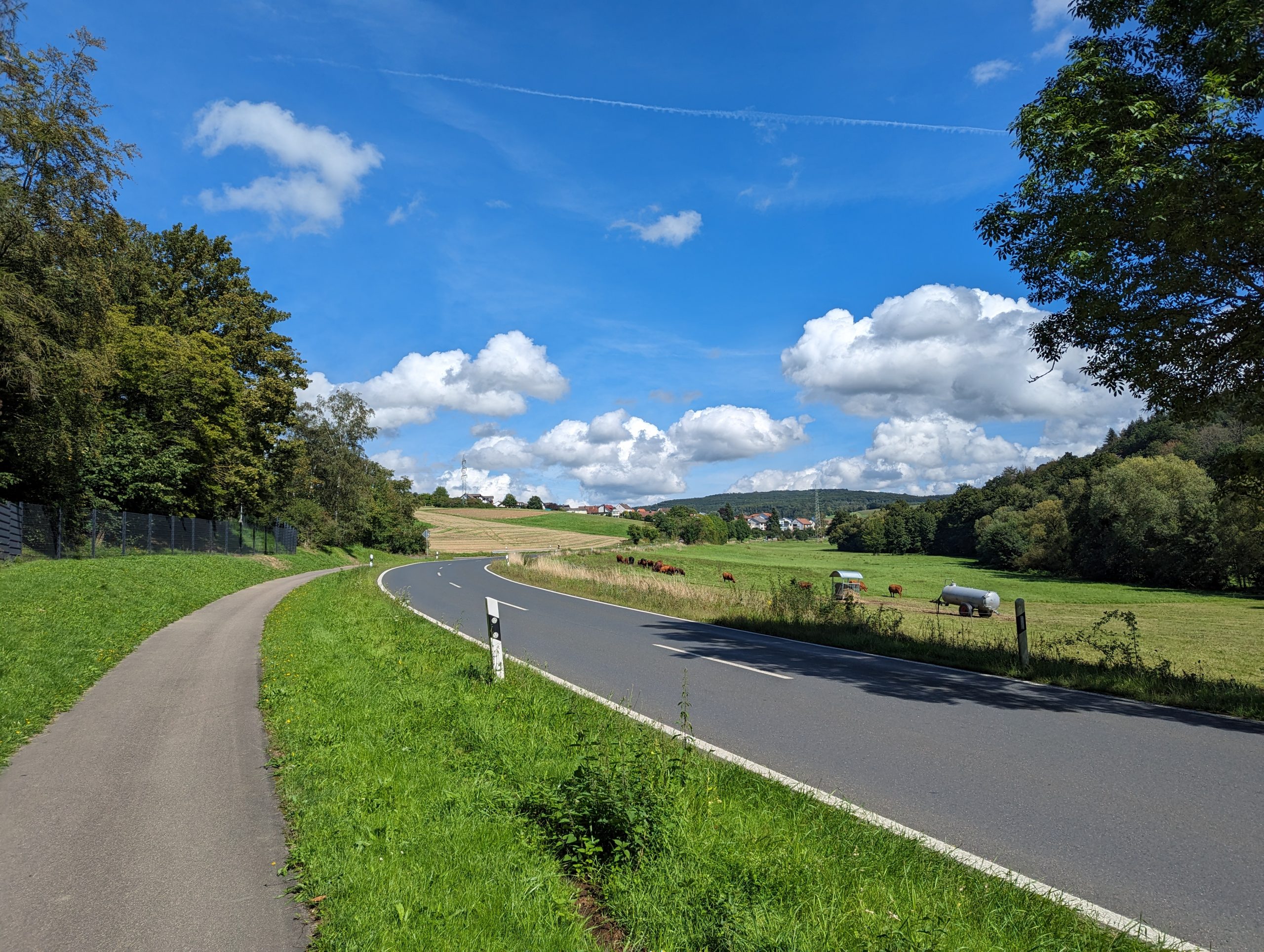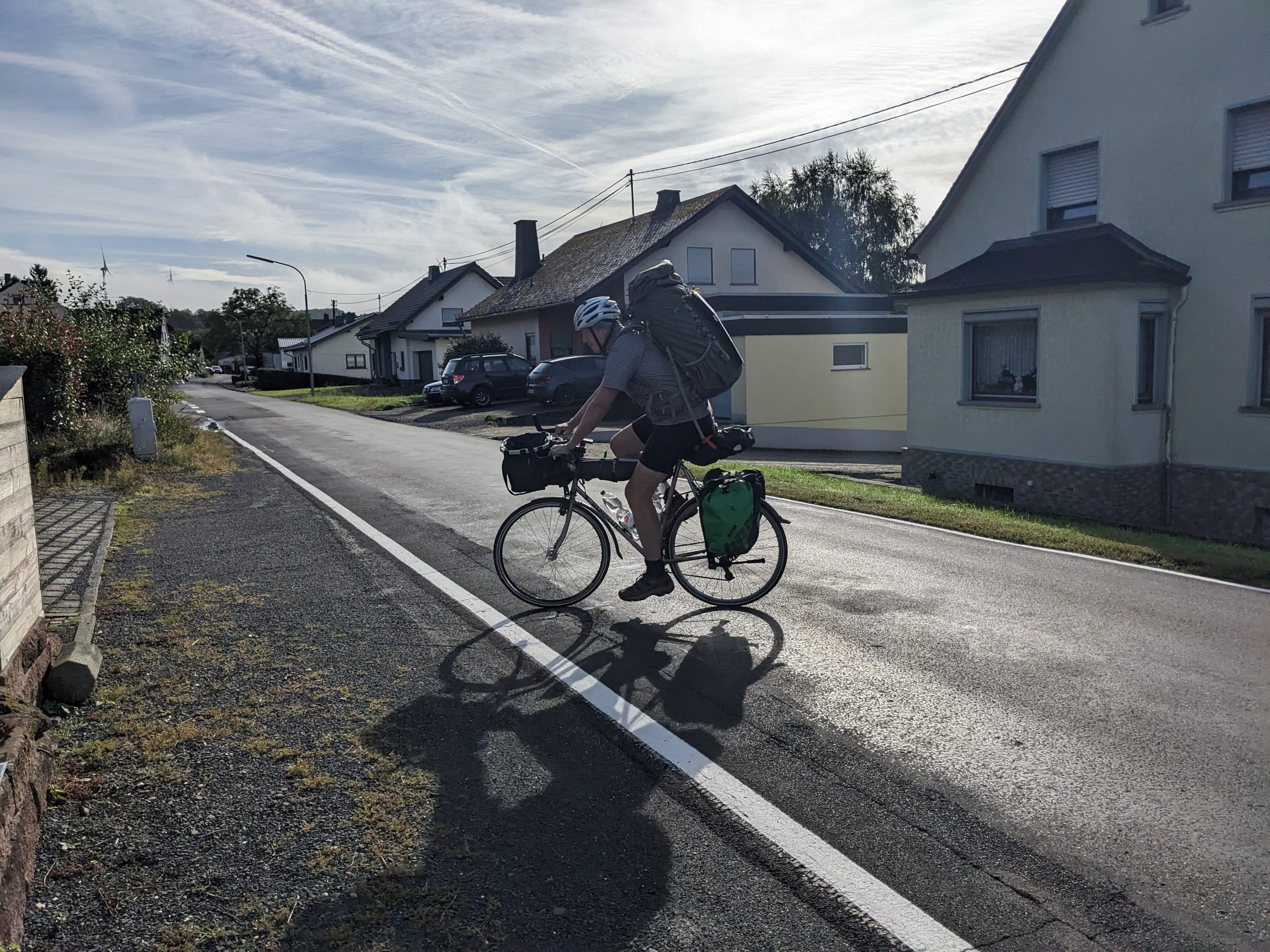 Am nächten Morgen dauerte die Radpackprozedur wieder bis acht. Ein Gesichtsrasenmäher ging verloren und ein lieber Gruß von Norbert begleitete mich Richtung Amorbach. Die bessere Versorgungslage wurde durch den Bäckerbesuch in Kirchzell aufrecht erhalten, nur die Sitzfläche profitierte nicht von der Maßnahme.