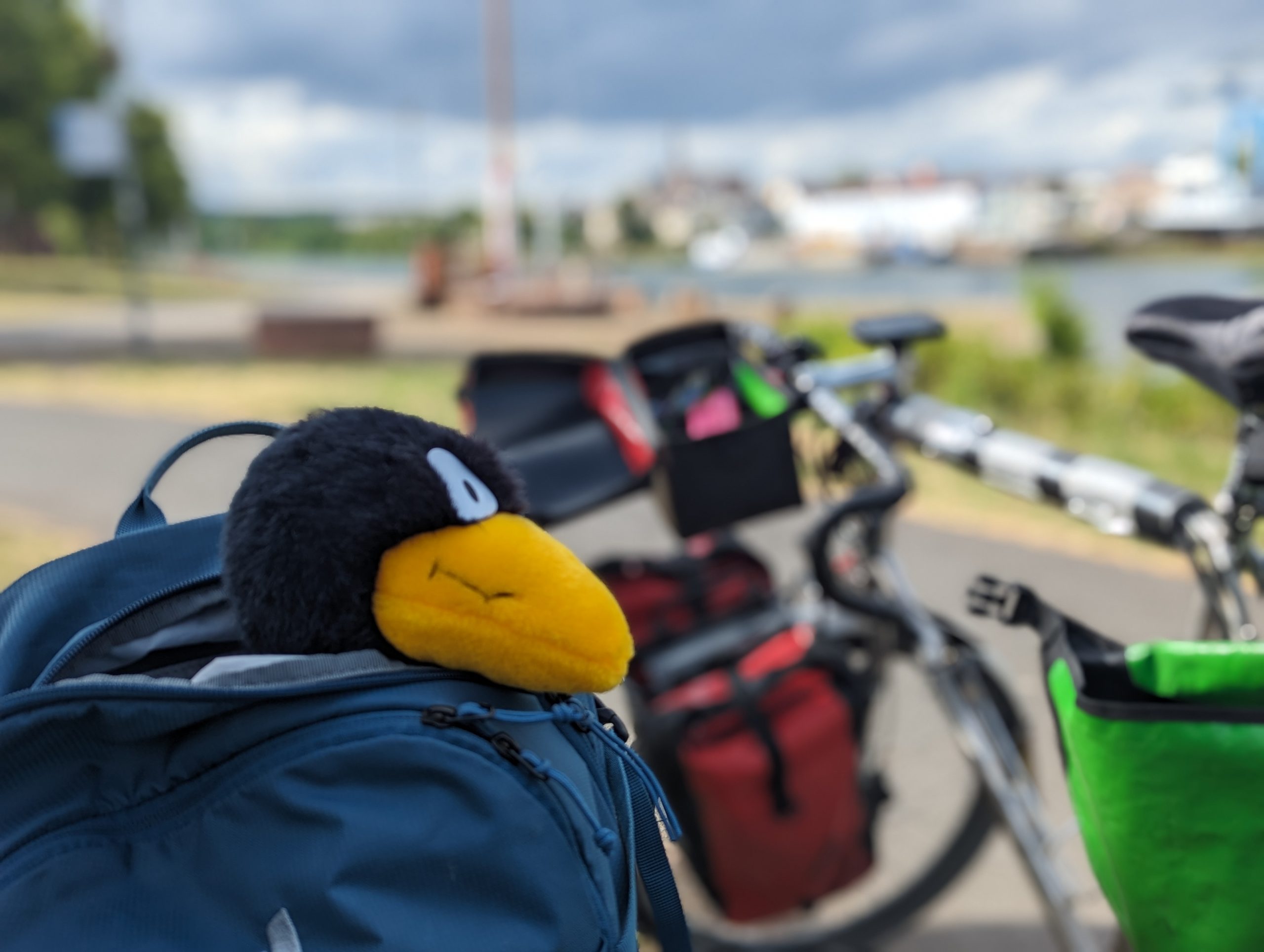 Am 22. Juli 2024 geht es um 17 Uhr auf eine Tour mit 2 Gepäcktaschen am Marschall Rohloff Reiserad. Ziel Kirchzell vor Mittag. Neben Getränken ist für die große Müdigkeit auch ein Biwaksack im Gepäck. Der wird auf dem Weg dann doch nicht gebraucht und bei Begrüßung auf dem Campingplatz stoppt der Tacho bei genau 200 Kilometern. Die Strecke über Niederrad und das Frankfurter Mainufer kurz vor der sommerlichen Mitternacht war beeindruckend, nicht nur wegen der Erinnerungen an die 10 Jahre in Frankfurt Niederrad und die erste wilde Radfahrzeit im Verkehr der achtziger Jahre. Anne Modersohn, ADFC, Utopia Möve, ach ja, da war alles noch so einfach.
