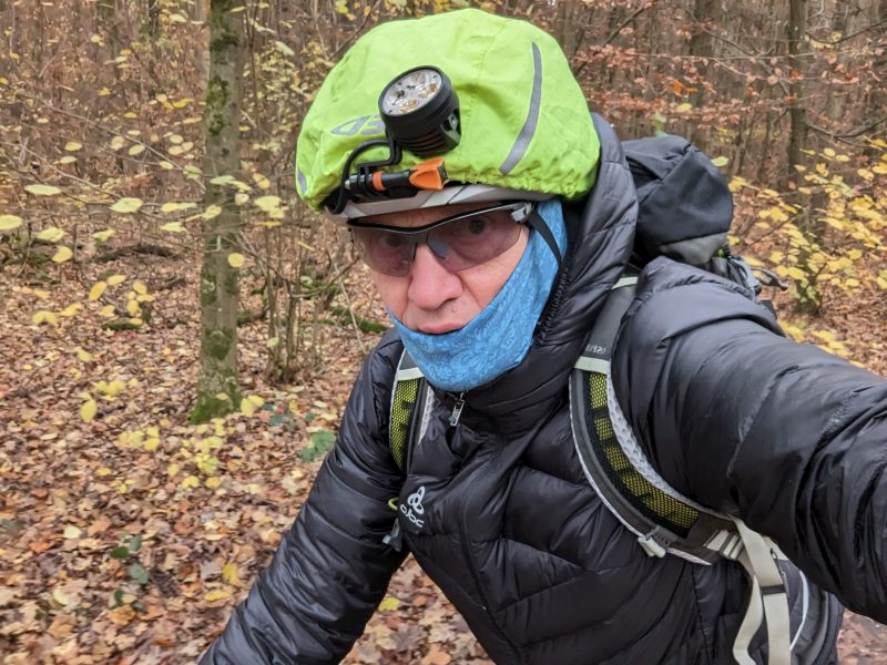 Der Kopf war mit Winterbuff, kleinem Buff und Radmütze unter dem Helm warm genug. Brille ist dabei unverzichtbar.