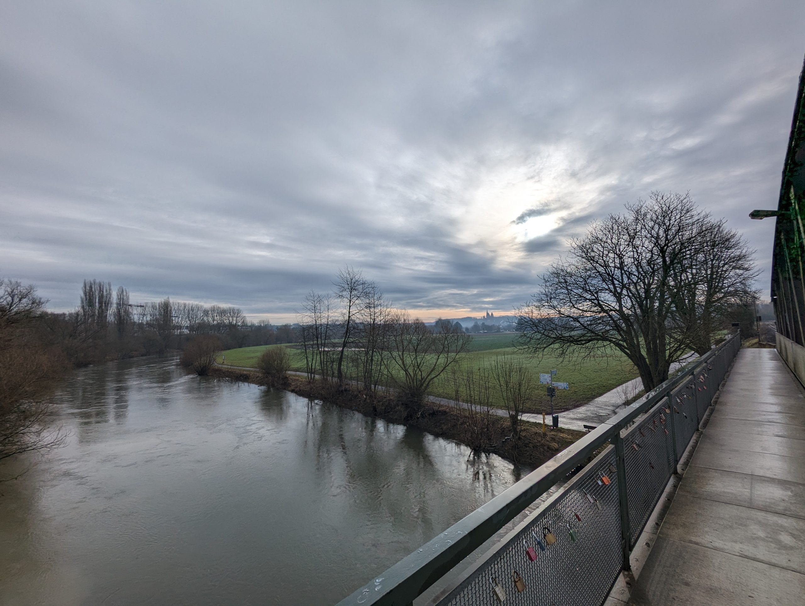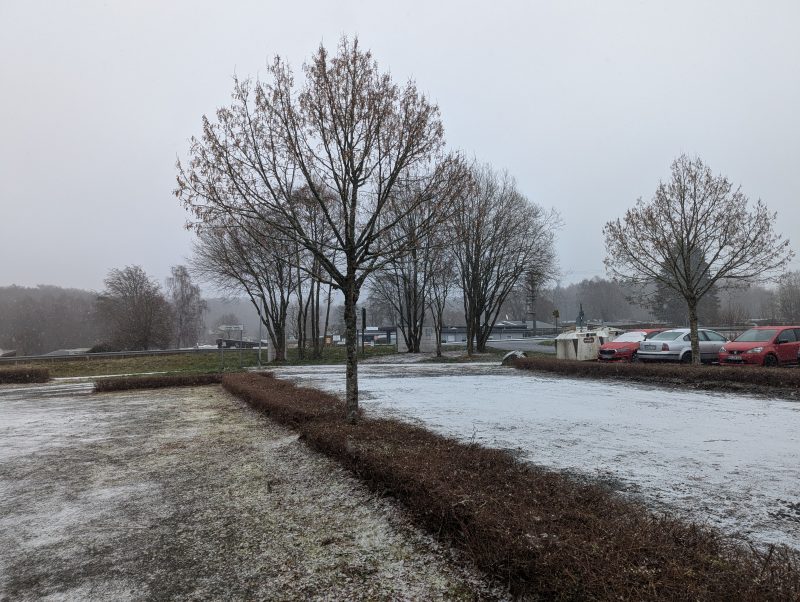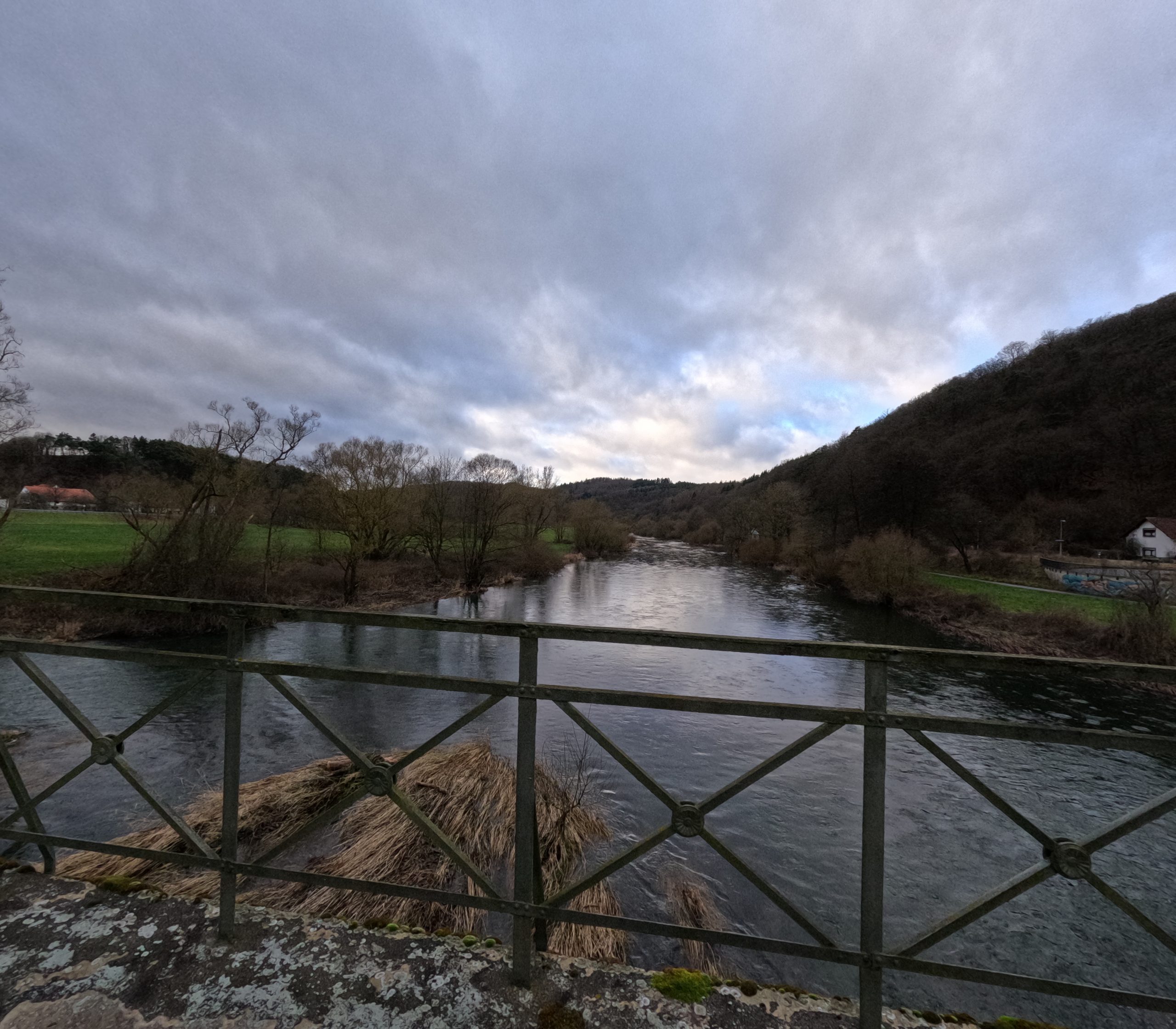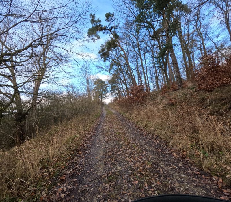 Also Auto geparkt und mit ein paar Ausrüstungsvarianten in der einen Satteltasche ging es bei Temperaturen um Null Grad bei grauem Winterwetter los Richtung Südost.