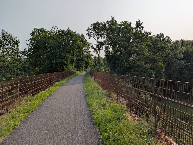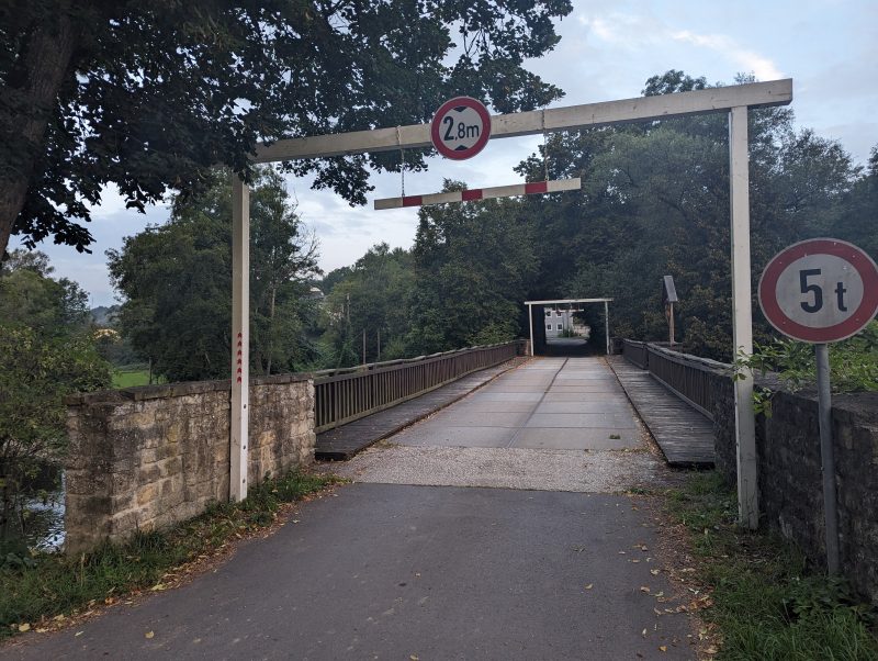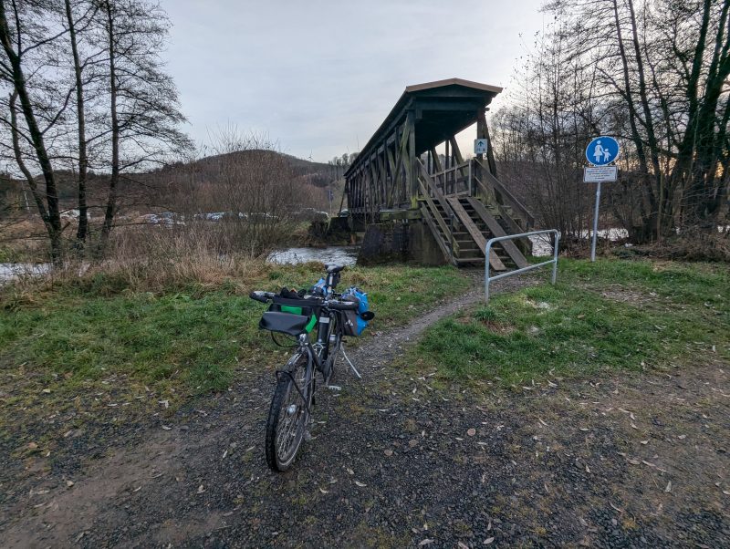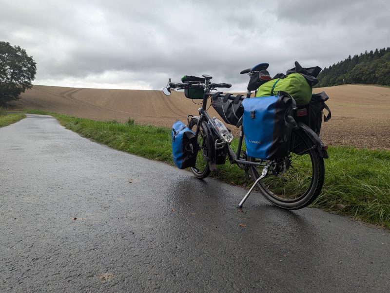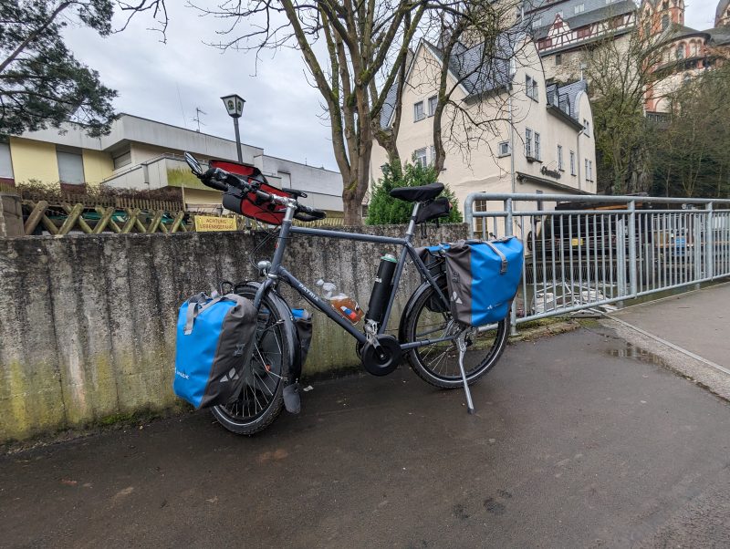 Das Rad war mit den Akkus und 4 teilweise gefüllten Taschen kaum hochzuheben, an einer steilen Schiebetreppe an der Camberger Umleitung war das Rad die Stufenschiene kaum hochzuschieben.