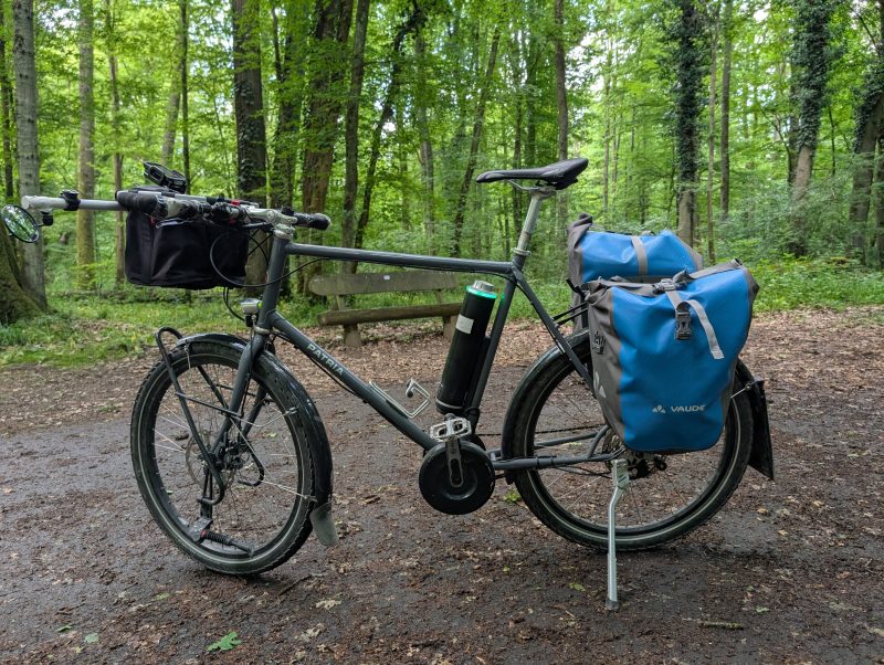 Ohne Akkus ist man etwas langsamer und kommt nassgeschwitzt am Campingplatz an und mit 10 km/h kommt man am Tag etwas 80 Kilometer weit. Da muss man dann einen passenden Campingplatz gefunden haben.