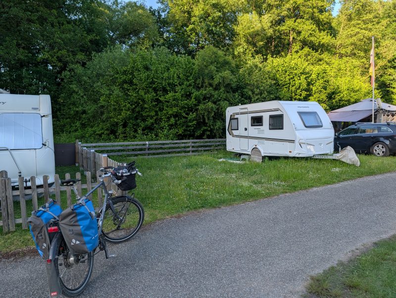 Es soll im Frühsommer im Juni noch einmal eine Radtour mit Zeltübernachtung auf Campingplätzen geben. Oder doch Tagestouren vom Van aus? Zur Klärung wurde eine Tour nach Kirchzell mit 5 Etappen geplant, auf der im Mai eine der Varianten in einem eng begrenzten Zeitfenster zwischen Pfingsten und den Brückentagen mit nicht ganz so ausgebuchten Campingplätzen genutzt werden sollte.