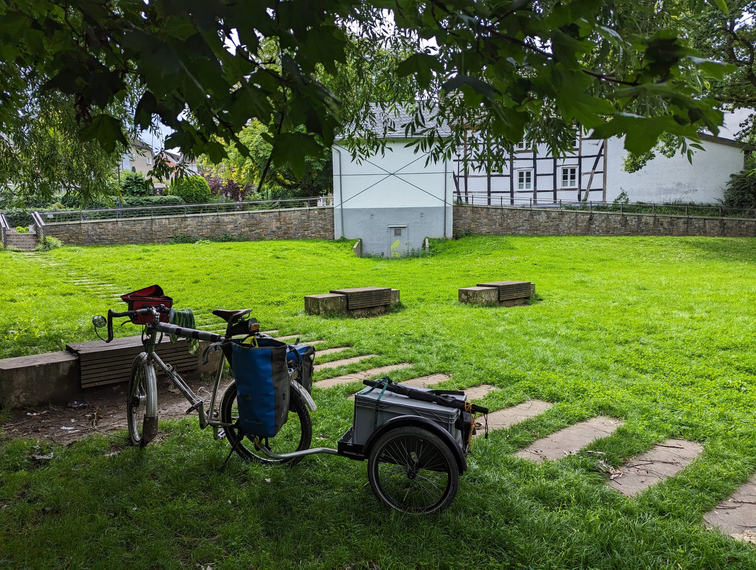 Für die große Radtour rund um NRW war alles vorbereitet, aber ich habe mich dann doch nicht getraut. Nach einer ersten Etappe mit dem Bus auf der NRW Route sind noch 4 Tage bis zu den nächsten Terminen und in Kirchzell muss der Rasen gemäht werden.