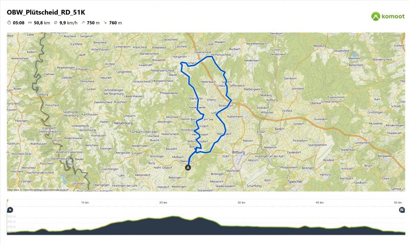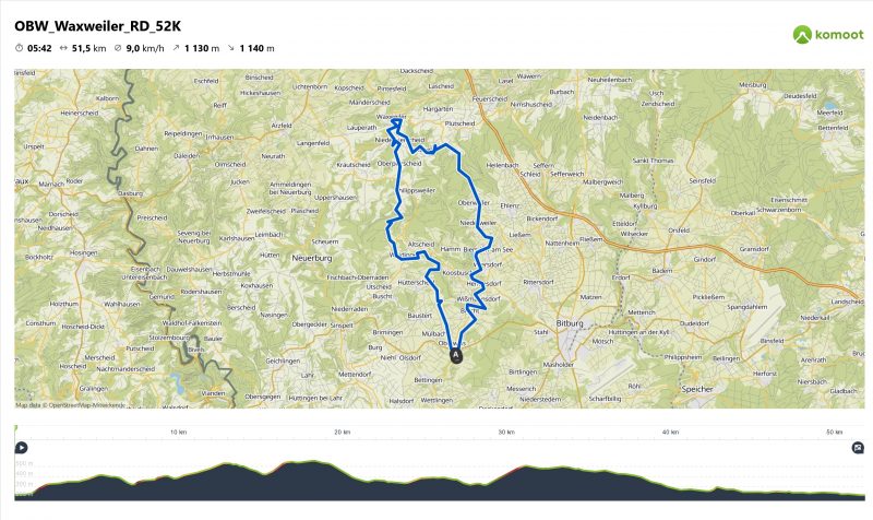 Die Strecke war bekannt und wenig reizvoll, für den Westerwald sehr wenig Anstiege und überwiegend breite Forstwege, die das Fortkommen erleichtern und den Schlurflauftrab möglich machen.