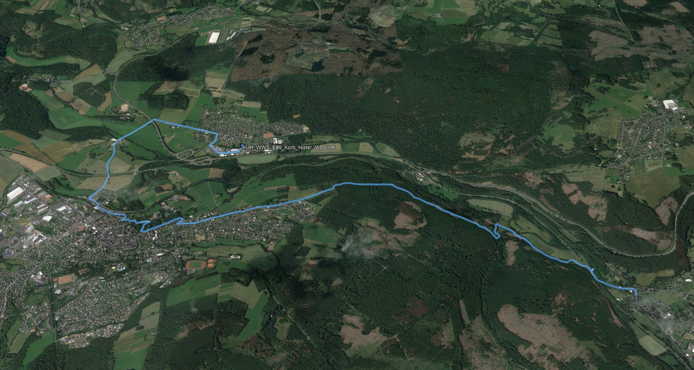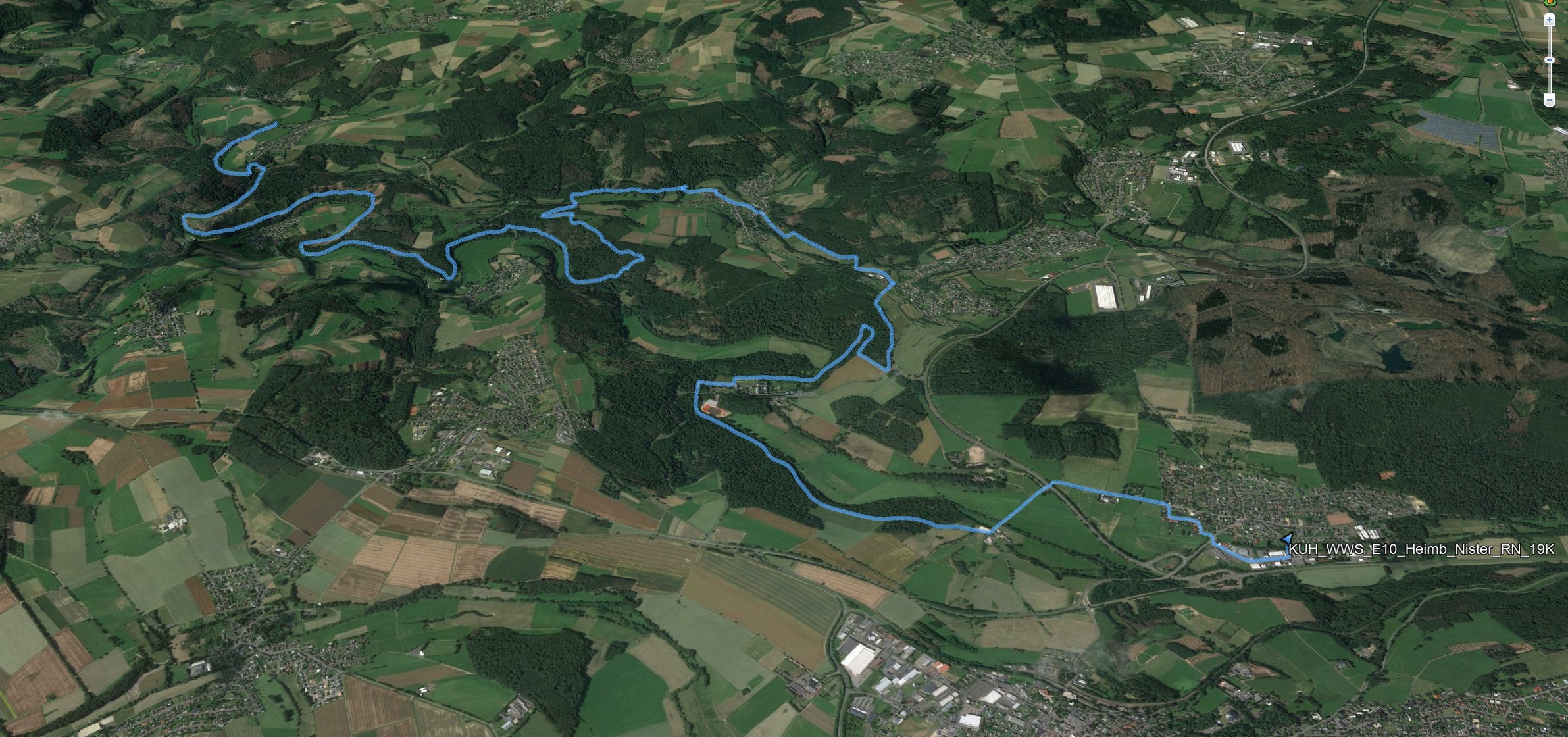 Etappe 10 ist mal wieder eine Wanderlauf Etappe. Ein Auto wird in Nister abgestellt und das zweite bringt den Sololäufer nach Heimborn. Die Etappe folgt mit zwei Wechsel über die Hügel der großen und kleinen Nister, die am deutschen Eck des Westerwaldes kurz nach Etappenstart gemeinsam weiter fließen.