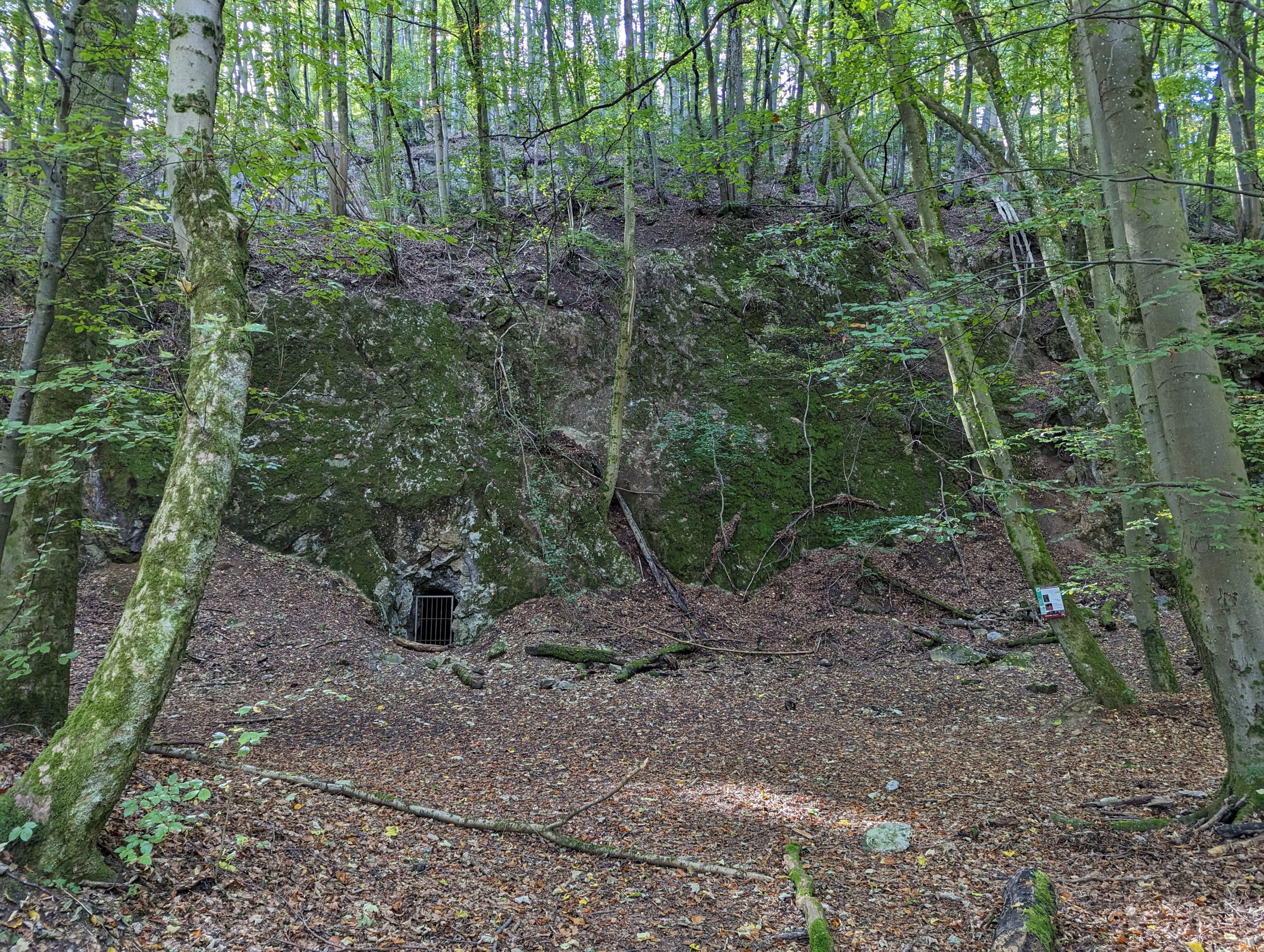 Wir wollen zum nächsten Campingplatz weiterfahren. Da die Anfahrt aber nur relativ kurz ist und wir nicht während der Mittagspause ankommen wollen halten wir in der Nähe von Bad Mergendheim mit unserem Gespann und machen ein kleine Wanderung im Wald oberhalb von Markelsheim. Es ist nur eine kleine Runde, die dem Weihnwanderweg folgt. Der Rückweg verläuft über den Bad Mergentheimer Weg. In diesem Waldstück hören wir auf dem Rückweg mehrere Pirole singen. Sehr beeindruckend.