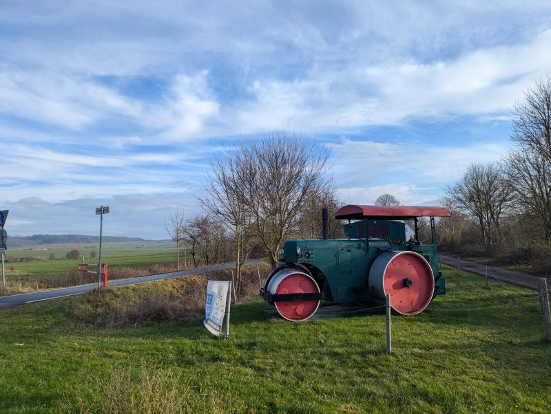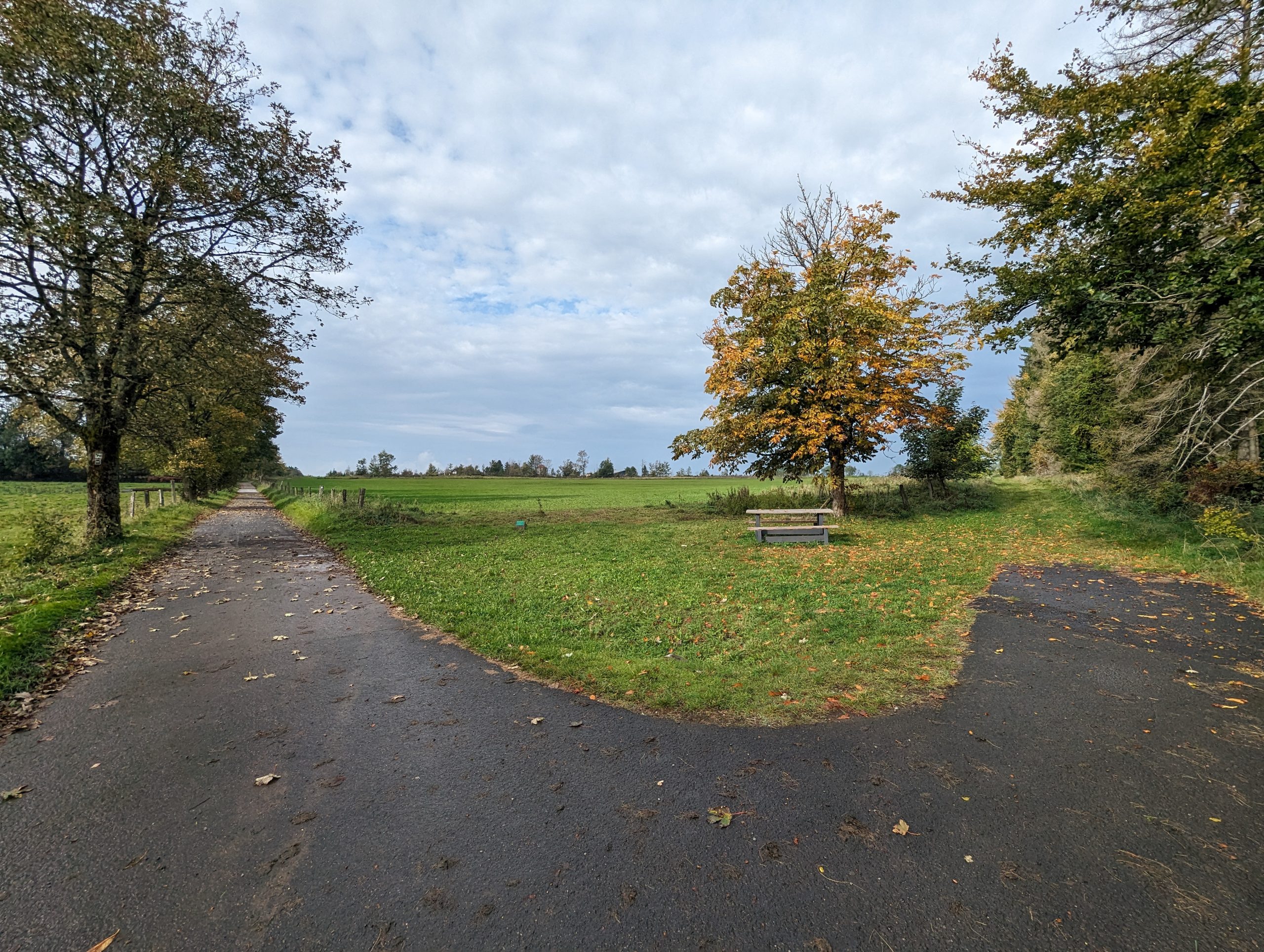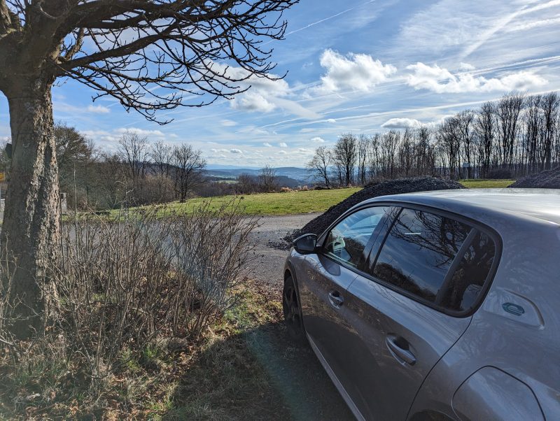 In Rehe kann am empfohlenen Parkplatz am Rathaus nur zwei Stunden mit Parkscheibe geparkt werden. Das reicht nicht für 16 Kilometer Wald-Weg-Wiesen-Schlurf. Aber beim Ortseingang am Friedhof geht es ohne Zeitbegrenzung.