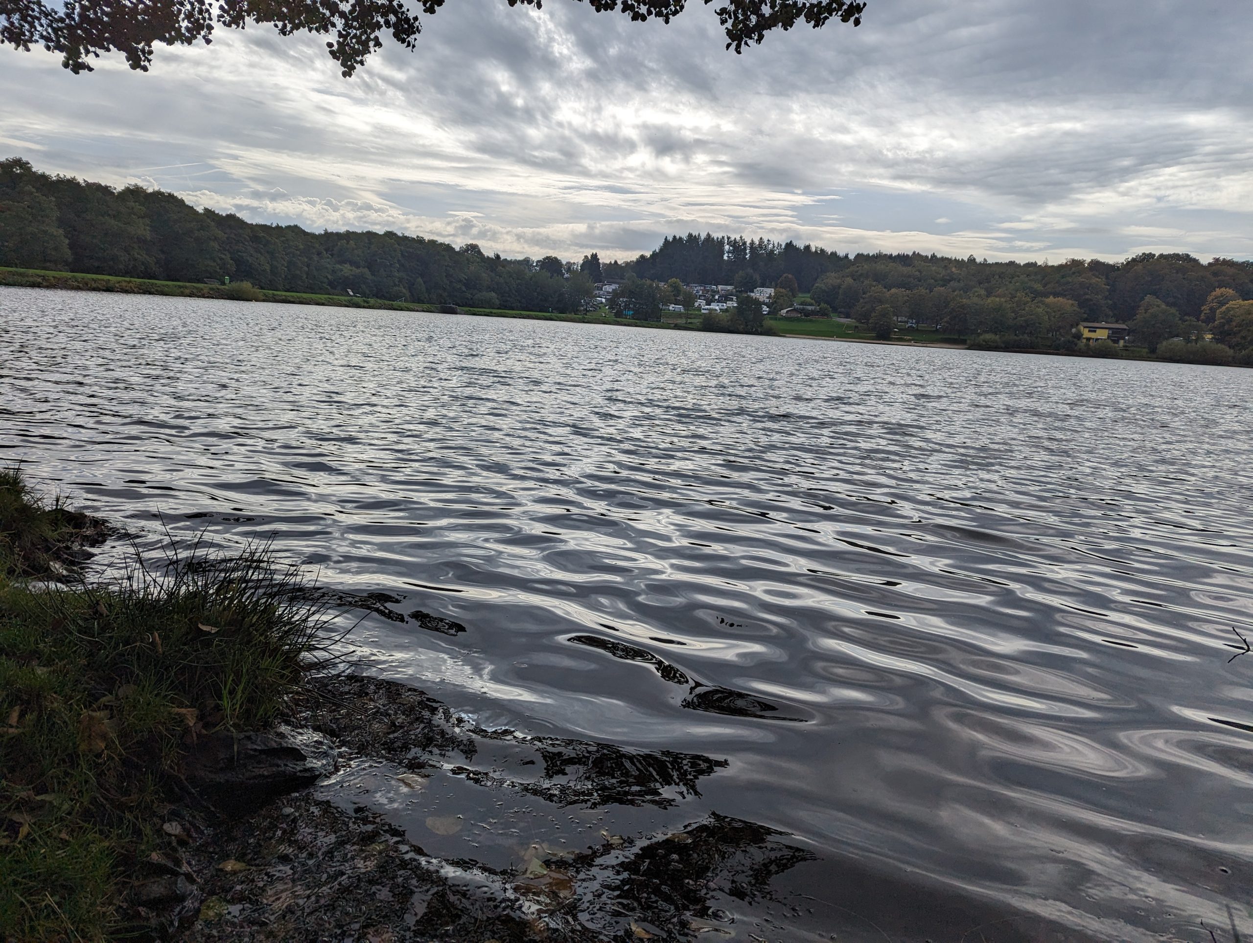 Dann folgt noch ein schöner aber auch schmaler Weg an der Steilküste entlang bis zum Anfang des Edersees nach Herzhausen. Wegen des hohen Radweganteils war die Strecke trotz teilweise heftigem Gegenwind schnell zu fahren und die dickeren Wolken haben nur gedroht.