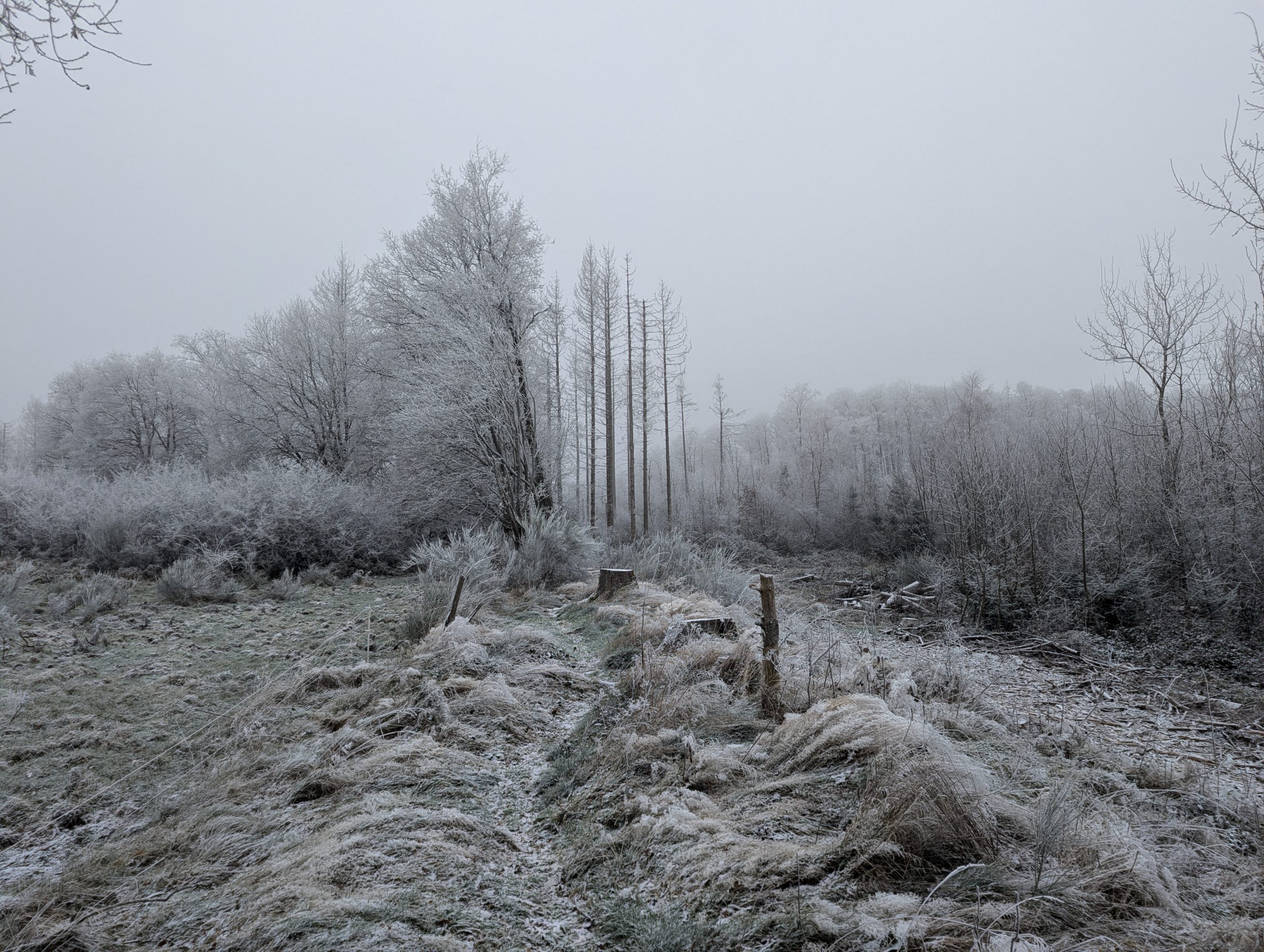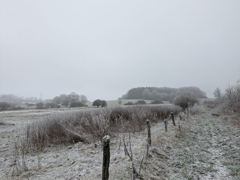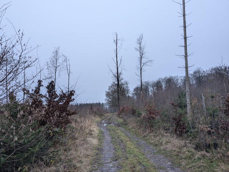 Nach der Somemrpause geht es auch mit den Westerwaldsteig Etappen weiter. Erst im Dezember, der Edersee und der Odenwald wollen ja auch noch besucht werden. Für die Restetappe bot sich eine Aussetzung in Hergenroth bei Gelegenheit eines Einkaufs in Westerburg an. Die Strecke bis nach Kunidorf verlängert die noch fehlende Westerwaldstei Etappe 5 Teil Ost auf 15 Kilometer. Bei trockenem Nebelwetter und Temperaturen um null Grad kein großes Problem. Keine Aussicht, teils matschig, das wars schon.