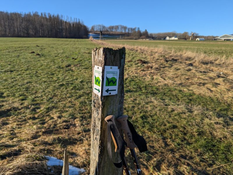 Am Kontaktpunkt zur dritten Etappe bot sich daher der Rückweg nach Winnen über den Hauptwanderweg II über asphaltierte Wirtschaftswege an. Damit war die Runde 4 Kilometer kürzer als geplant.