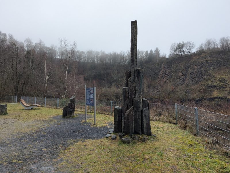 Die Etappe 8 wird als Wanderung mit Radrückfahrt zum ersten Auto umgesetzt. Bei nassem Winterwetter mit Temperaturen um 2 Grad wird es erst eine schöne wenn auch neblige Streckenwanderung über den Bad Marienberger Basaltsteinbruch, den Tierpark an der Steigalm, am Klettergarten und den Wolfsteinen vorbei, erst ins Wäschbach Tal und dann an die Nister nach Korb.
