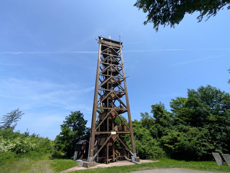 Die kleine Runde macht mit dem schwülwarmen Wetter schnell müde und es bleibt ein nicht bestiegener Aussichtsturm und ein langer Schiebeanstieg in knalliger Sonne.