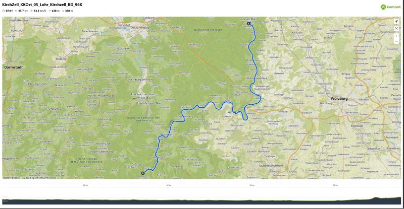 Daher wurden die Etappen 4 und 5 mit Übernachtung im Evalia auf dem Campingplatz in Lohr umgesetzt. Der einfache Platz wurde am Sonntag angefahren und Montag wurde auf dem Weg nach Norden das Sinntal hochgefahren. An den nächsten zwei Tagen gab es eine Fahrt entlang des Mains nach Kirchzell, eine Rasenmaht und eine Rückfahrt.