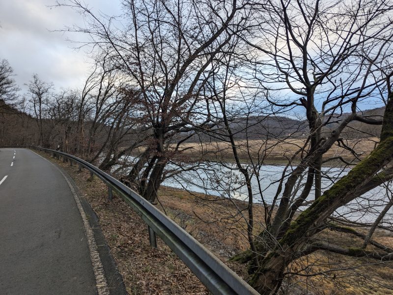 Am Anreisetag geht es nach dem Auspacken kurz nach elf gleich aufs Rad. Der Tag ist im Dezember nicht lang und es soll ja mit dem alten Rohloff – Maschall Reiserad langsam über die Hügel gehen um einen nassen Rücken zu vermeiden. Das klappt nicht ganz, aber mit einer zusätzlichen Jacke bergab ist es an diesem milden Wintertag gut auszuhalten. Es gibt wie auch auf den anderen Runden ein Wiedersehen mit der GeoRadroute Ruhr Eder. Die Strecke nach Süden bis Frankenau, dann wieder nach Norden bis Bringhausen am Edersee durch den Kellerwald ist ruhig bis einsam, autostressfrei und auch auf der Strecke am Edersee ist an diesem bewölkten Montag niemand unterwegs. Eine herrliche Genussrunde.