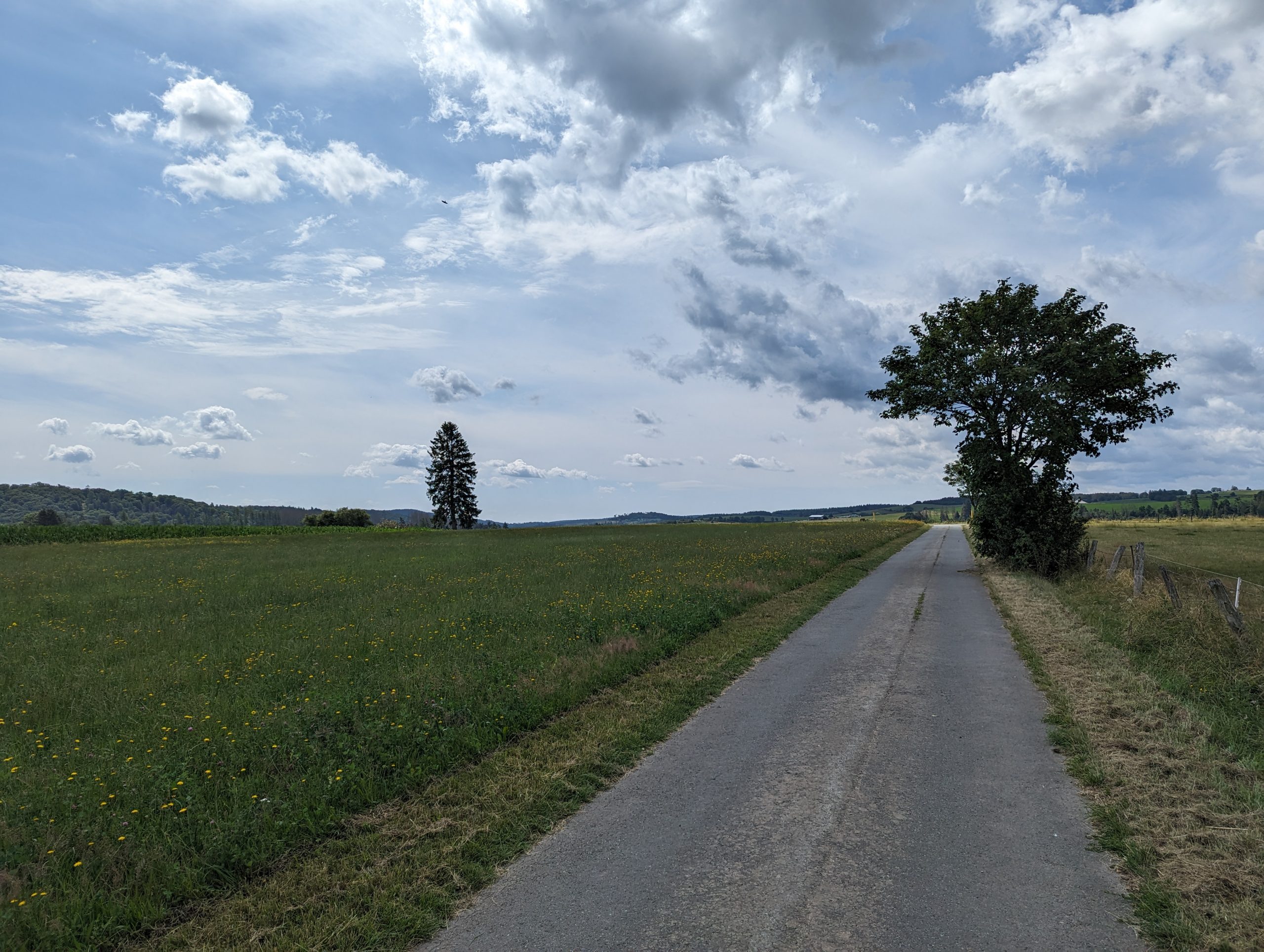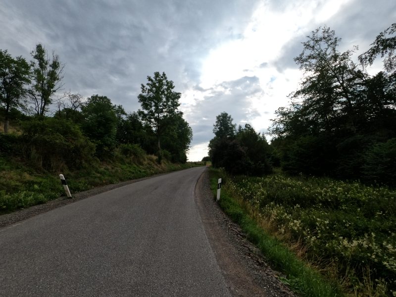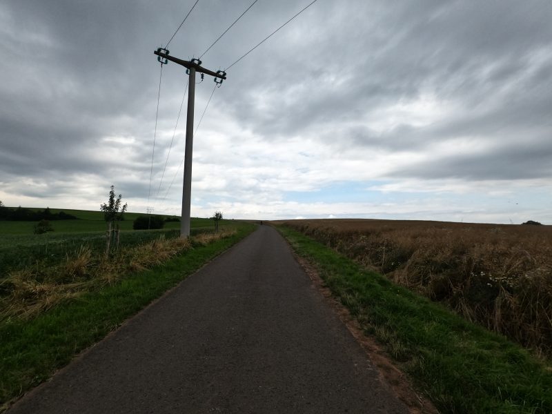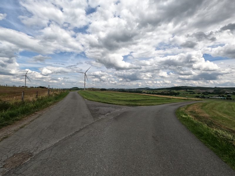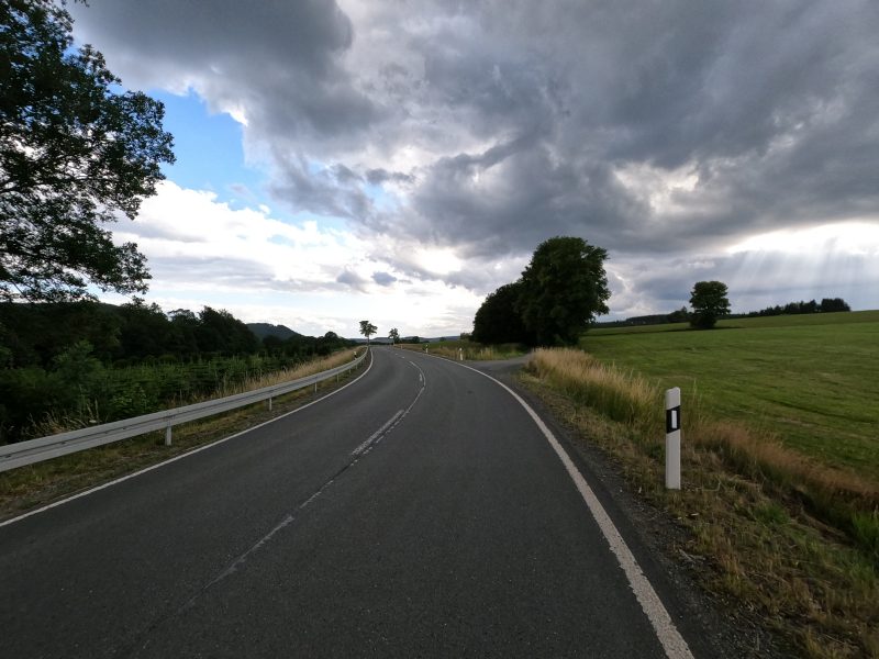 Die dritte Runde im Bunde sollte dann den Edersee und seine Landschaft in den Mittelpunkt des Tages stellen. Nach einer weiterern ruhigen Nacht auf einem Parkplatz nahe der Eder geht es zum Startpunkt in einem Seitental der Itter. Der erste Anstieg auf die Hochfläche über die K29 war unangenehm, da wegen der Sperrung der B252 ab Thalitter einige LKW die enge Straße befuhren. Auf der Höhe am Abzweig Richtung Korbach war es auf den Wirtschaftswegen dann ruhig mit guter Fernsicht. Die Wolken drohten allerdings den ganzen Tag mit so nicht angekündigtem Regen, der den ganzen Tag für einen gewissen Pedaldruck sorgte.