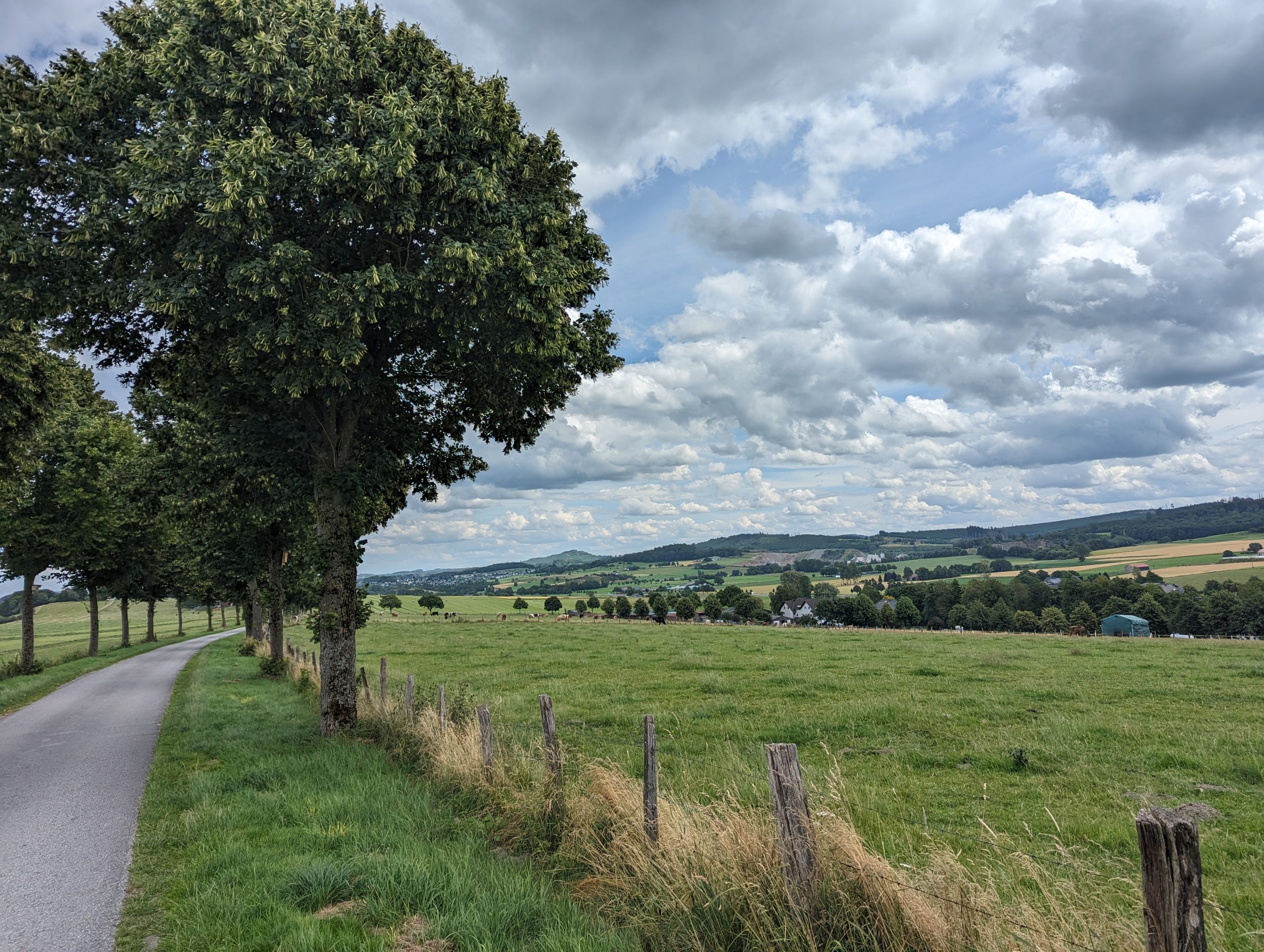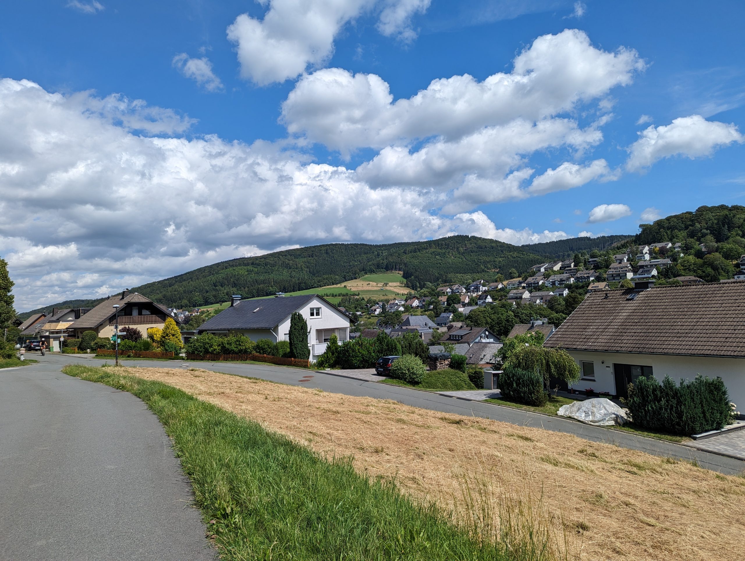 Die Querung nach Osten Richtung Brilon bringt dann mehr Aussicht, die Täler sind weitere und landwirtschaftlich genutzt. Es sieht überall trocken aus.