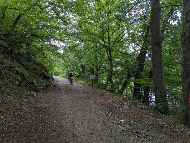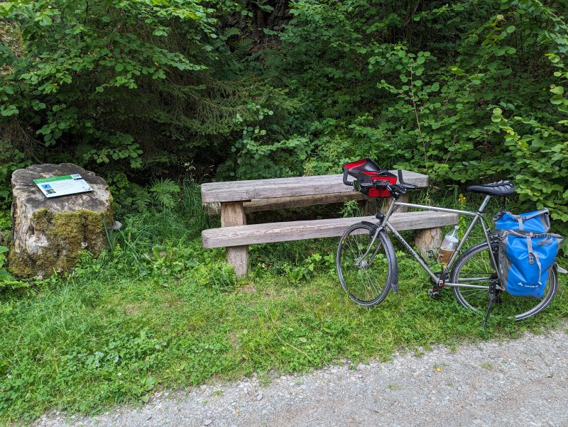 Das verwendete Marschall Treckingrad hat vor der Tour noch schmale 35 mm Reifen aufgezogen bekommen, daher wurde weitgehend auf Ausweichstrecken über Wanderwege verzichtet. Einige der Wege der Georadroute waren auch so schon unangenehm, da grob- und weichschotterig, zu befahren.