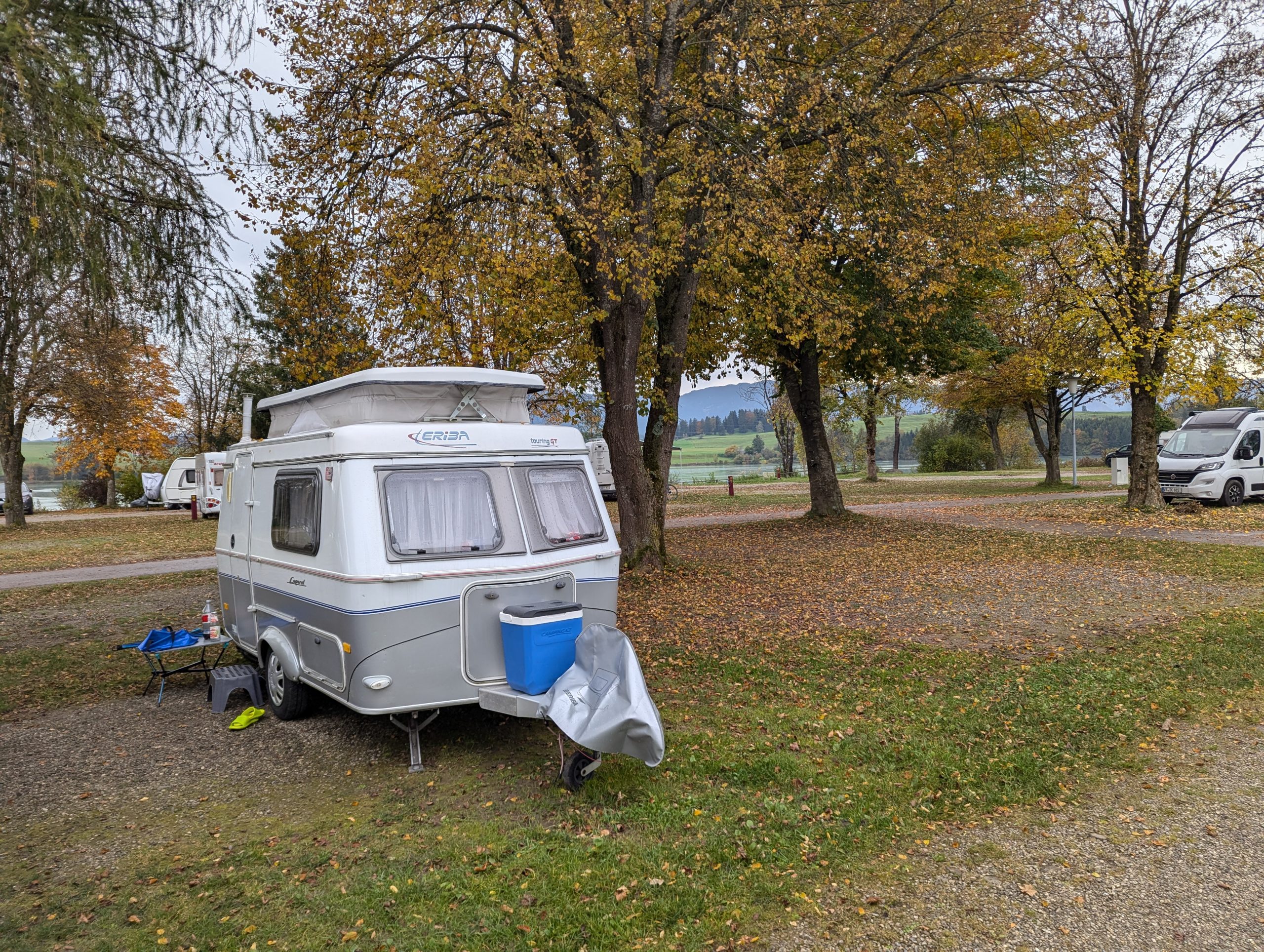 Obwohl sowohl in NRW also auch in Rheinland-Pfalz, Hessen und Thüringen noch Sommerferien sind, können wir kurzfristig für 8 Nächte einen schönen Stellplatz bekommen. Dieses Mal haben wir kein Fahrrad/Tandem dabei, da wir nur Wandertouren unternehmen wollen. Der Campingplatz hat außerdem einen sehr schönen Themenpark Wasser und man kann einen Stellplatz entweder mit Morgensonne oder mit Abendsonne auswählen.
