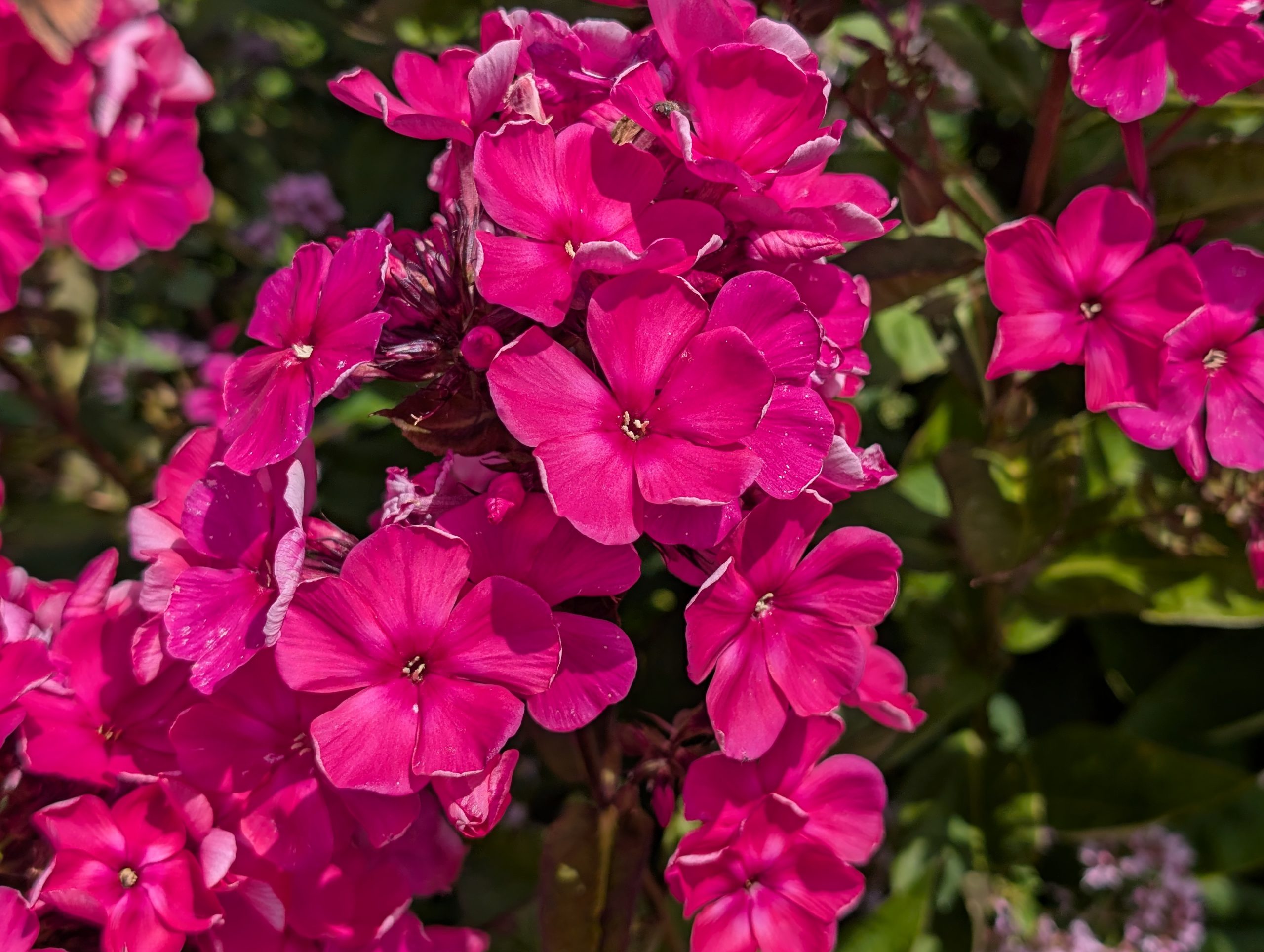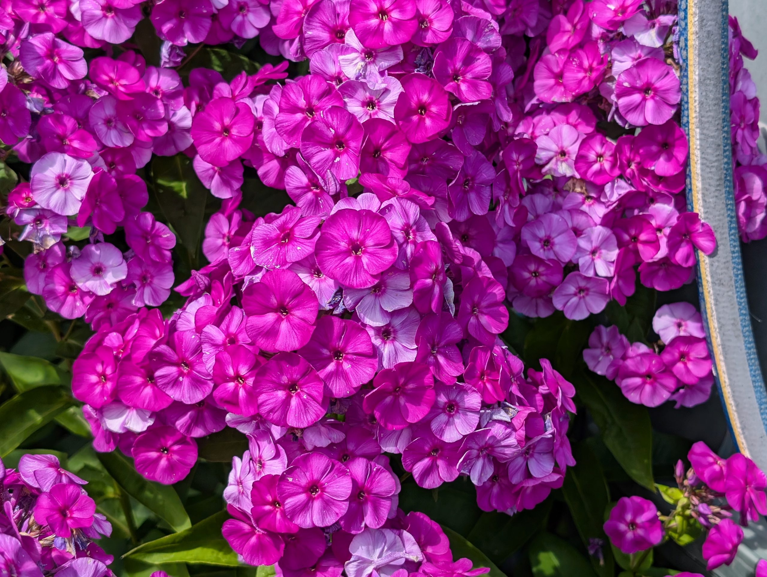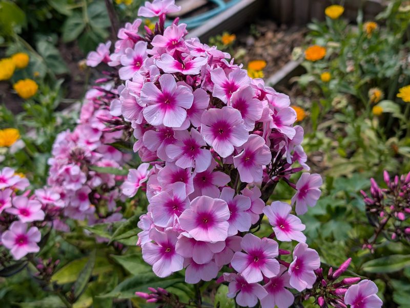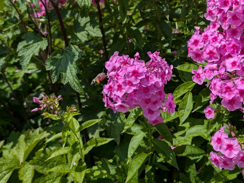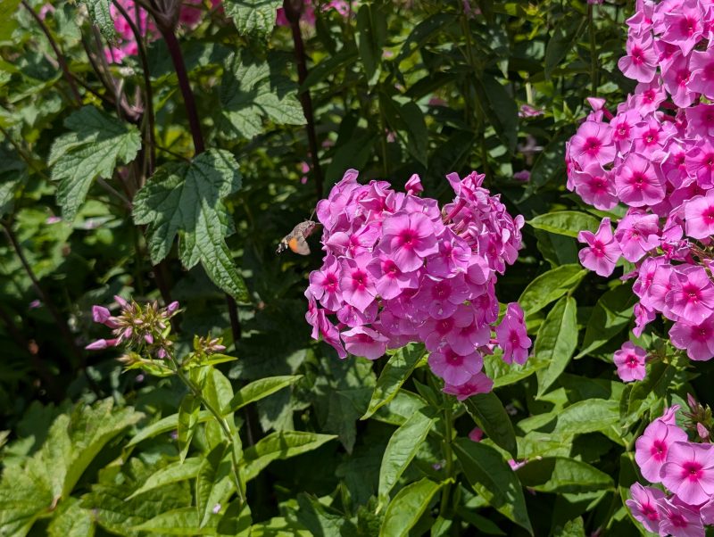 Im Garten von Kunigunde und Kunibert blühen einfach immer viele Blumen. Dabei gibt es auch Lieblingsblumen, die überall verteilt im Garten stehen. Zu diesen Lieblingsblumen zählen die zweijährigen Bartnelken und der Phlox. Bei den Phloxstauden gibt es aktuell 5 verschiedene Farbnuancen, die immer wieder beeindrucken. Besonders schön ist es, wenn auch das Taubenschwänzchen die Phloxstauden besucht.