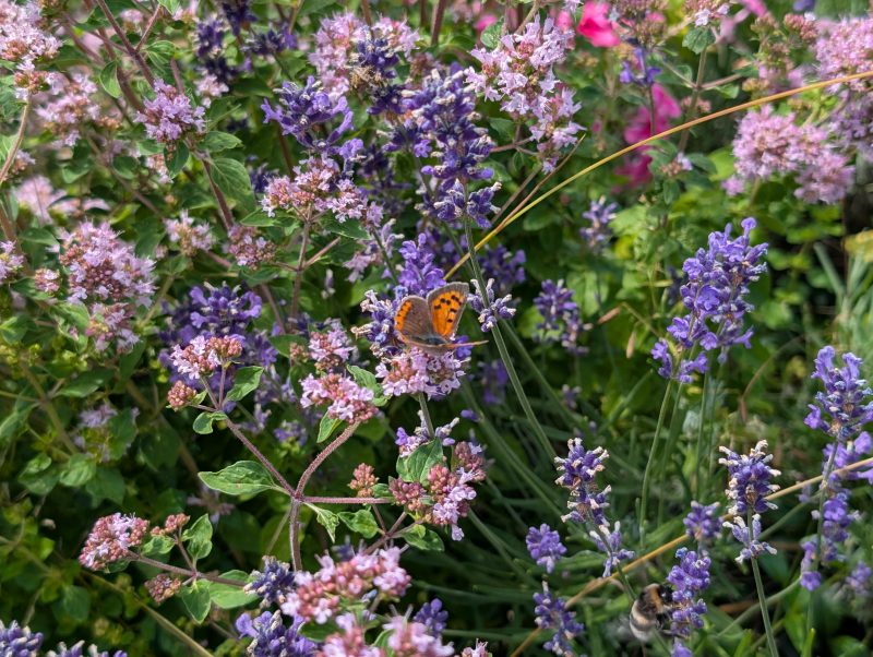 Wenn dann Ende Juni bis Anfang August der Lavendel, Oregano, Phlox und der Sommerflieder blüht, dann gibt es eine unglaubliche Vielfalt an Schmetterlingen, Bienen und Hummeln im Garten. Hier eine kleine Auswahl der Schmetterlinge und auch noch das Bild der Blaugrünen Mosaikjungfer, die an sonnigen Tagen aus der Larve schlüpft.