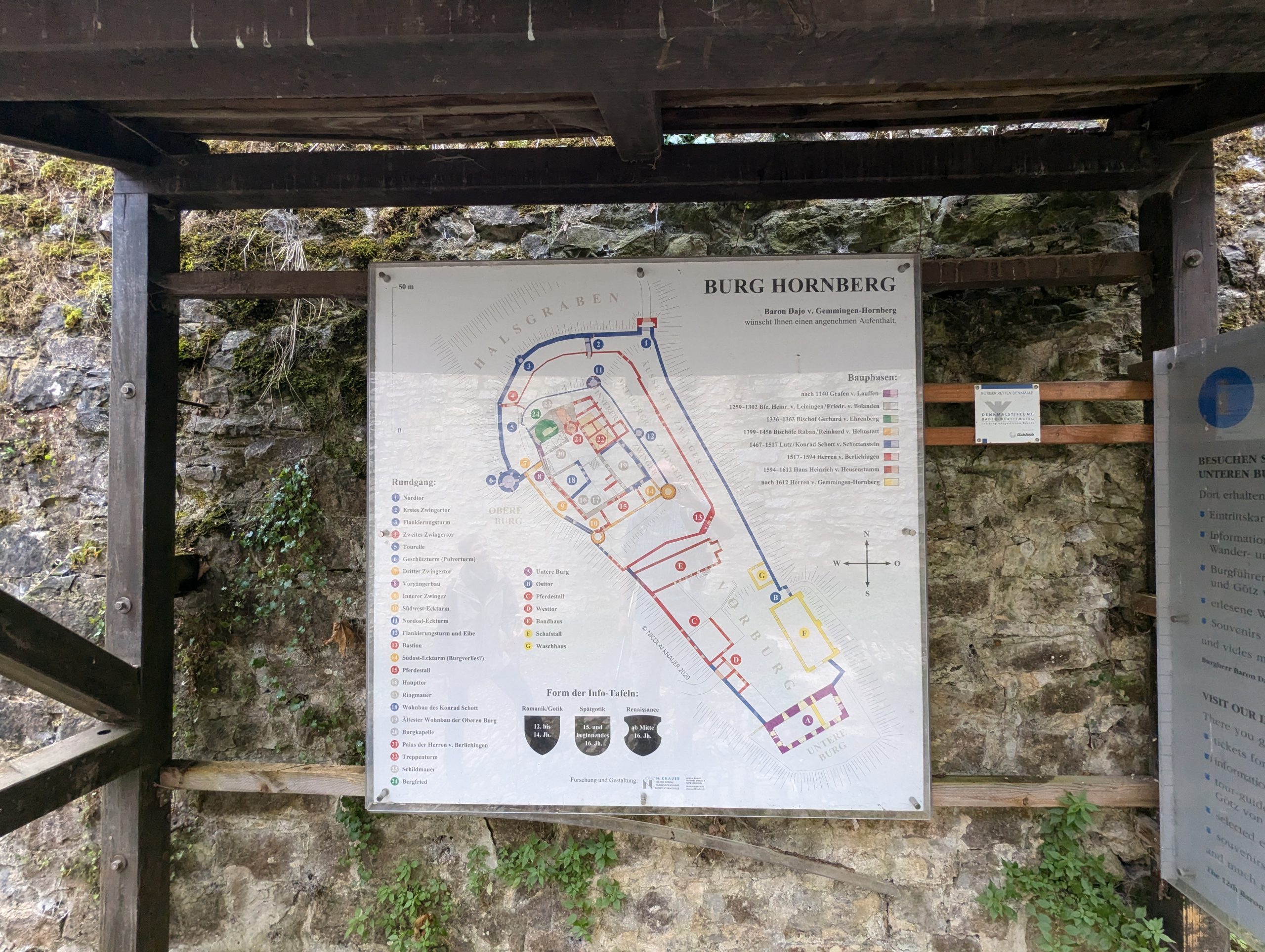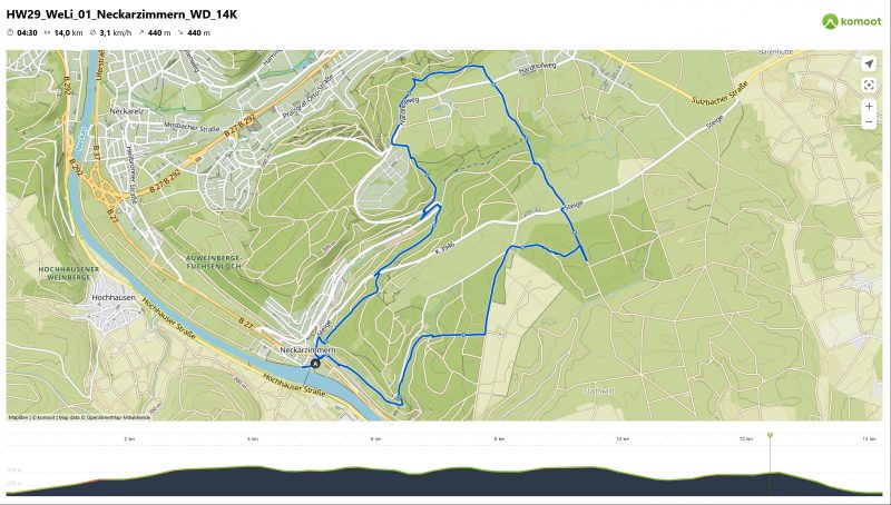 Die südlichste Wanderung dieser Schleife beginnt an einem Parkplatz an der Schleuse in Neckarzimmern. Mit dem Neckarsteig HW60 geht es zuerst hinauf zur Burg Homberg (www.burg-hornberg.de). Dort treffen wir auf unseren Limesweg. Er führt uns durch den Wald bis zu einen riesigen Solarfeld. Kurz danach wieder im Wald verlassen wir den Limesweg und wandern mit HW31 (rote Raute) in Richtung Mosbach. Oberhalb von Mosbach treffen wir auch wieder auf dem Neckarsteig, der uns zurück nach Neckarzimmern bring.