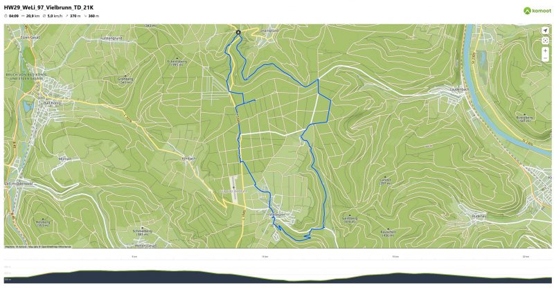 Der Rückweg war dann mit 11 Kilometer auch kurz aber die Wellen machten auch aus dieser Etappe eine Herausforderung. Die Liste der umgangenen Berge soll aber nicht vorenthalten werden. Hundsrückkopf (478 m), Schneckenhöhe (509 m) und Höckenhöhe I und II (558 und 568 m)