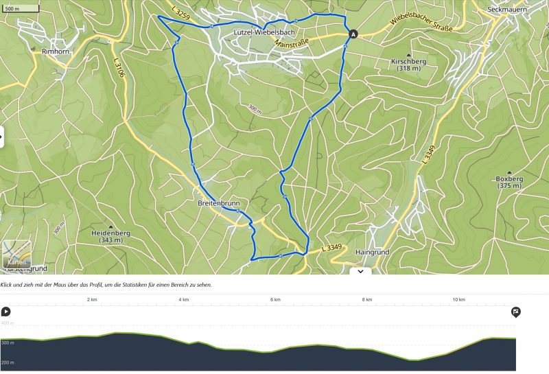 Für den Weg hoch zum nächsten Übernachtungsziel an der A3 Ausfahrt Rohrbrunn wird dann einer ruhigen ST2317 der Vorzug gegeben.