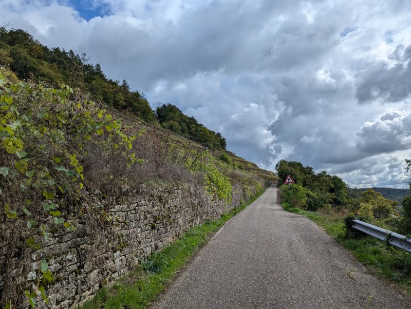 Statt der geplanten 15 Kilometer wurden es mit einem Bogen zurück zur Strecke an einem Weinberg vorbei 16,7 km. Mit 4,2 km/h war es dann auch die langsamste und wärmste Etappe.