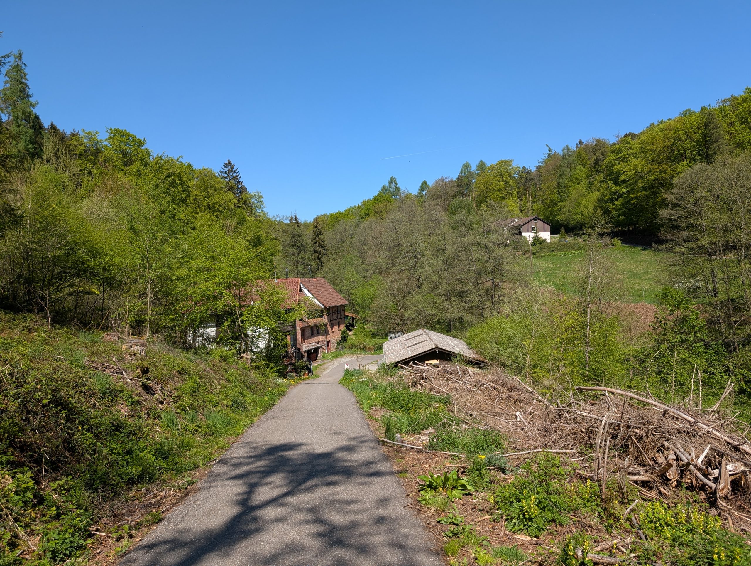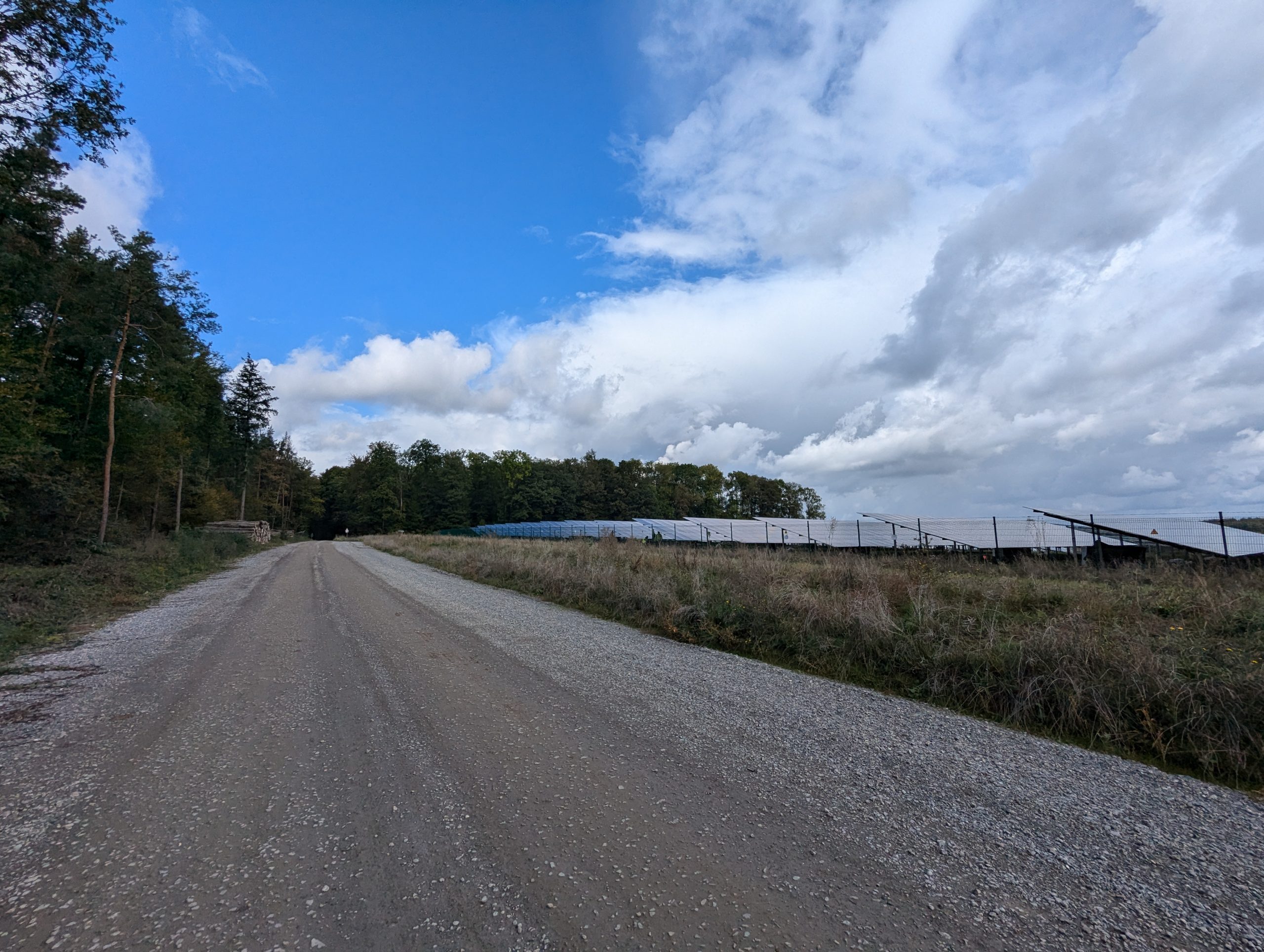 Auf Asphalt fährt es sich doch deutlich leichter bergauf. Das merkt man dann im Vergleich mit dem Stück Schotterpiste, die durch den Wald hoch zum Autobahnausfahrt führt.